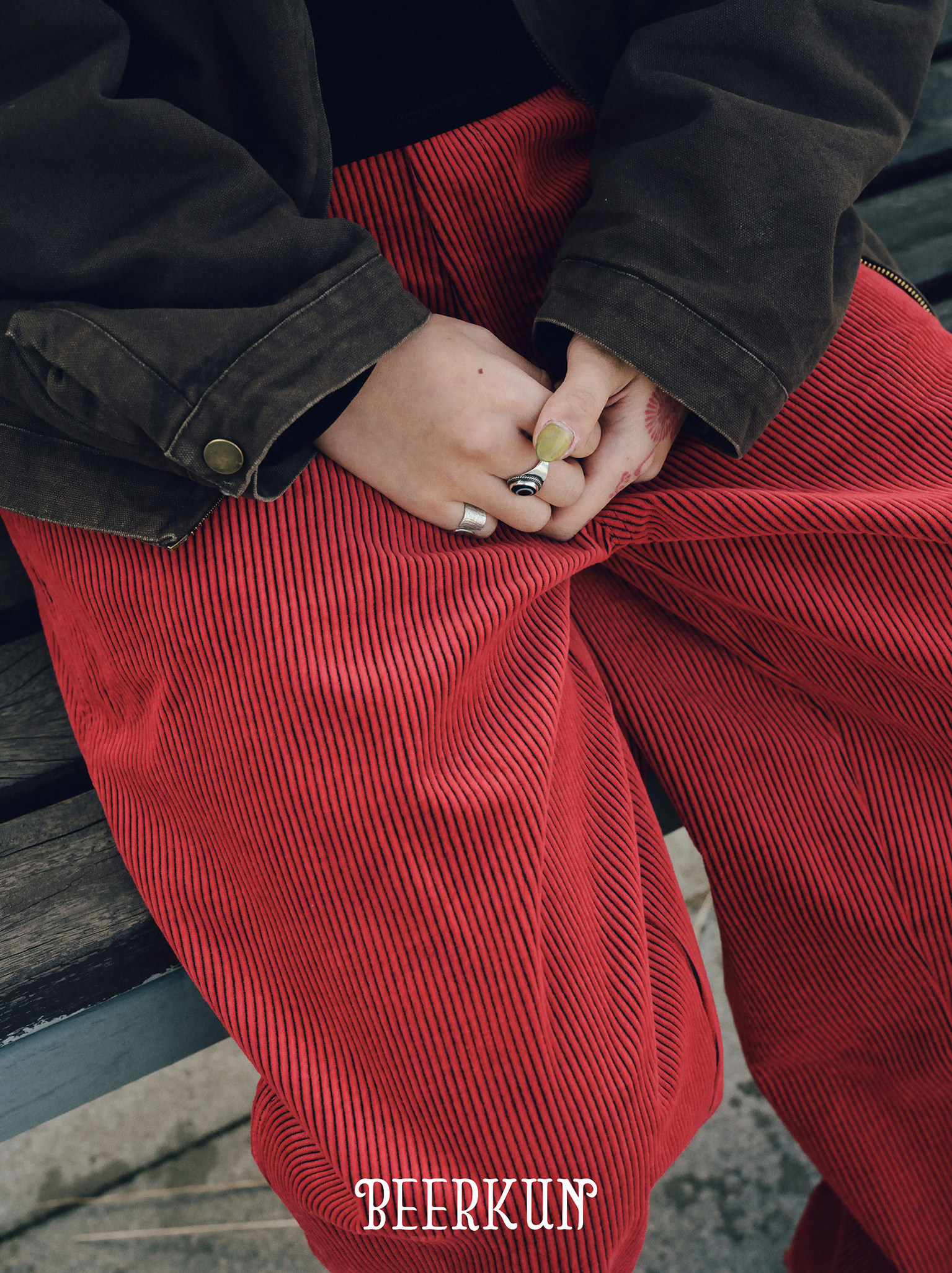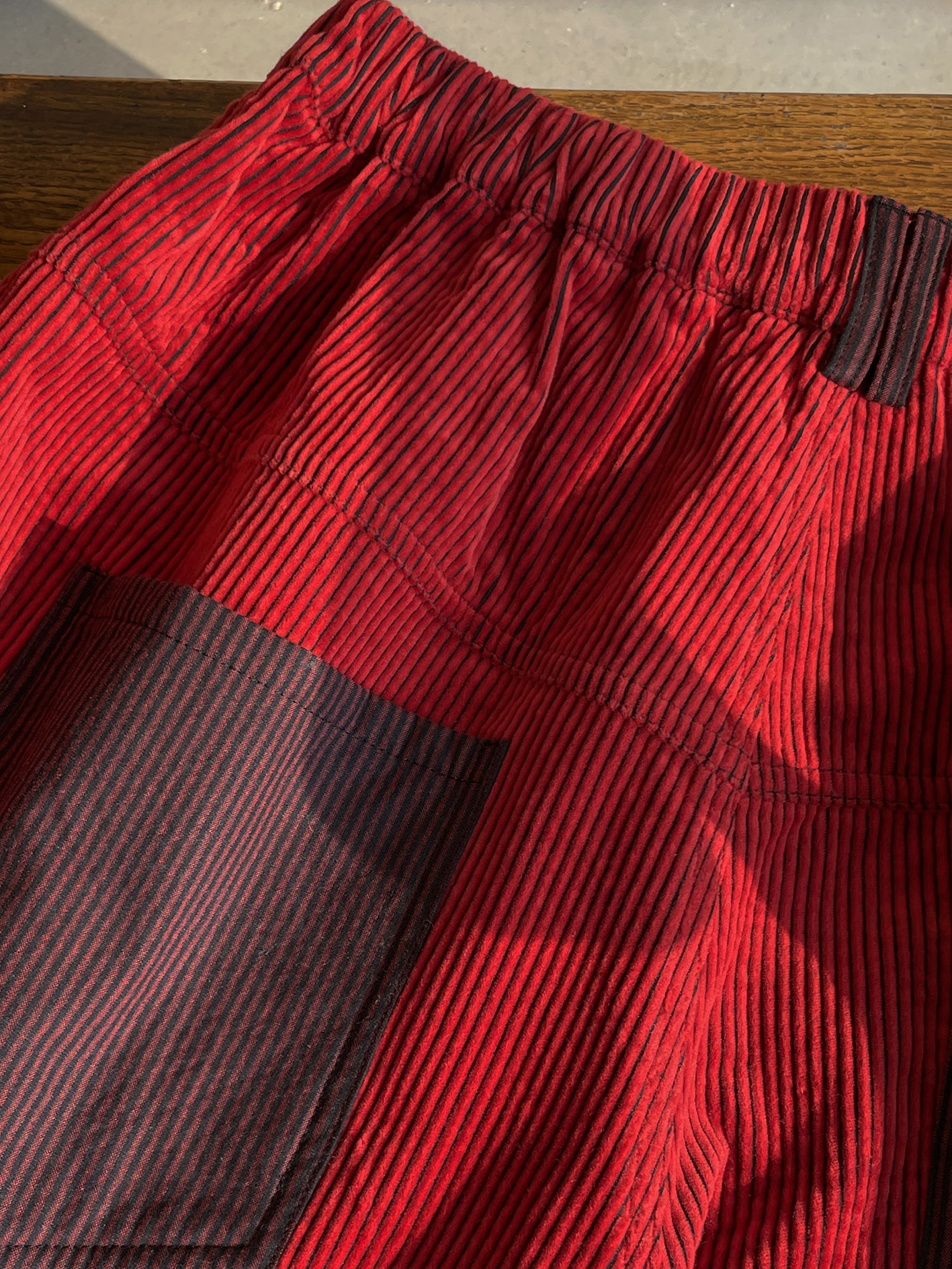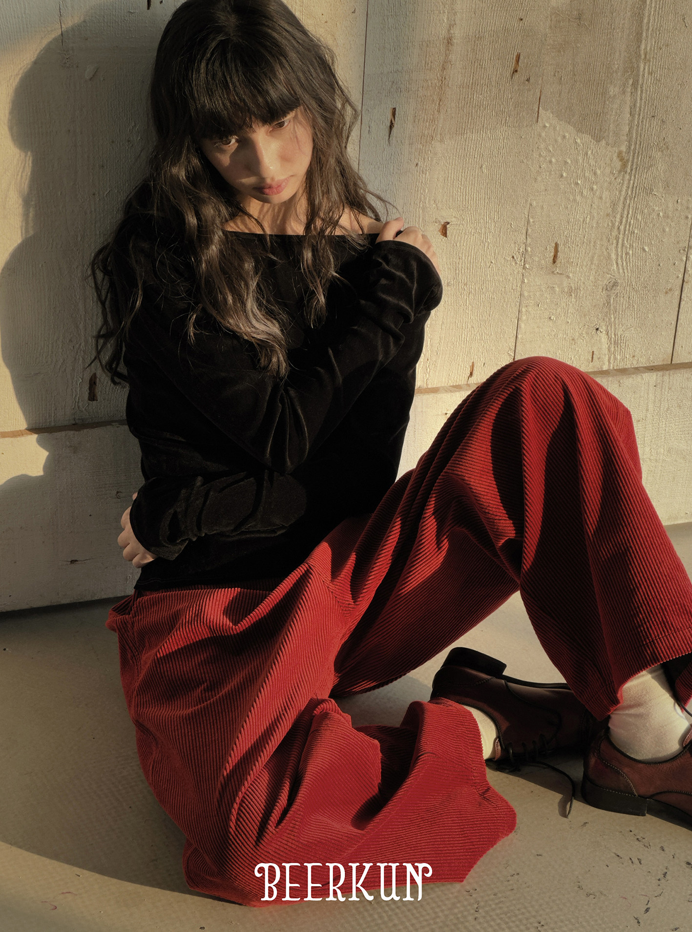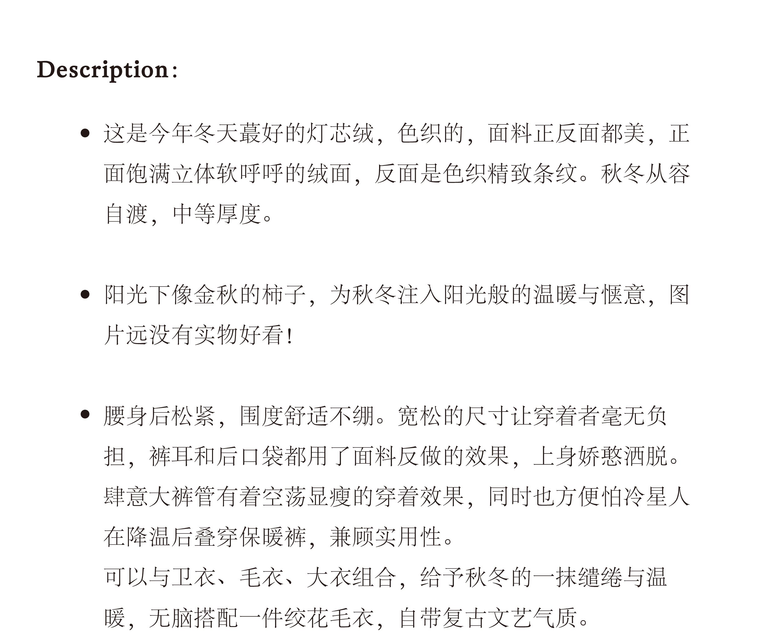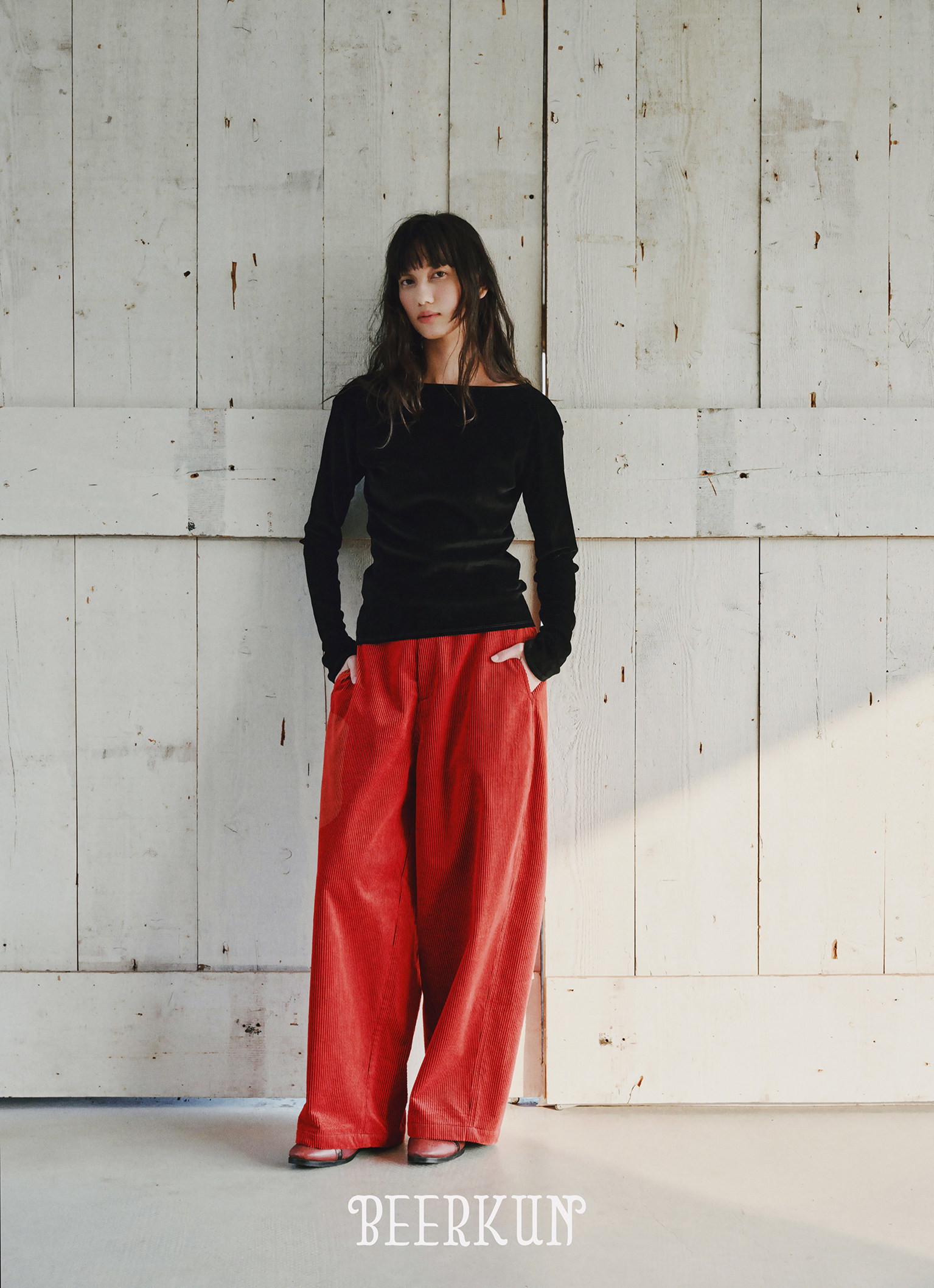 [特价]立裁廓形休闲裤 91%厚丝棉粗纹灯芯绒裤 柿子红