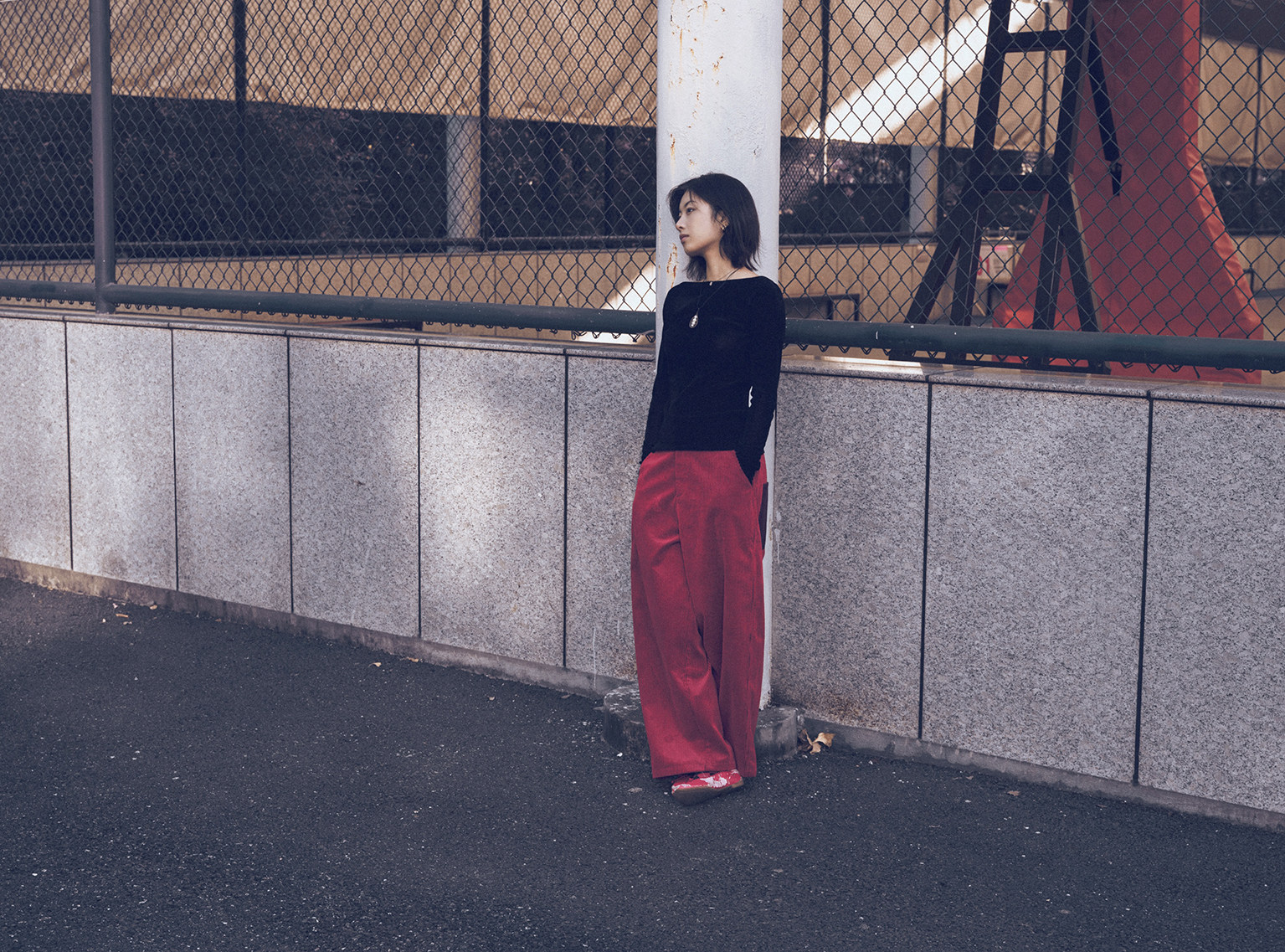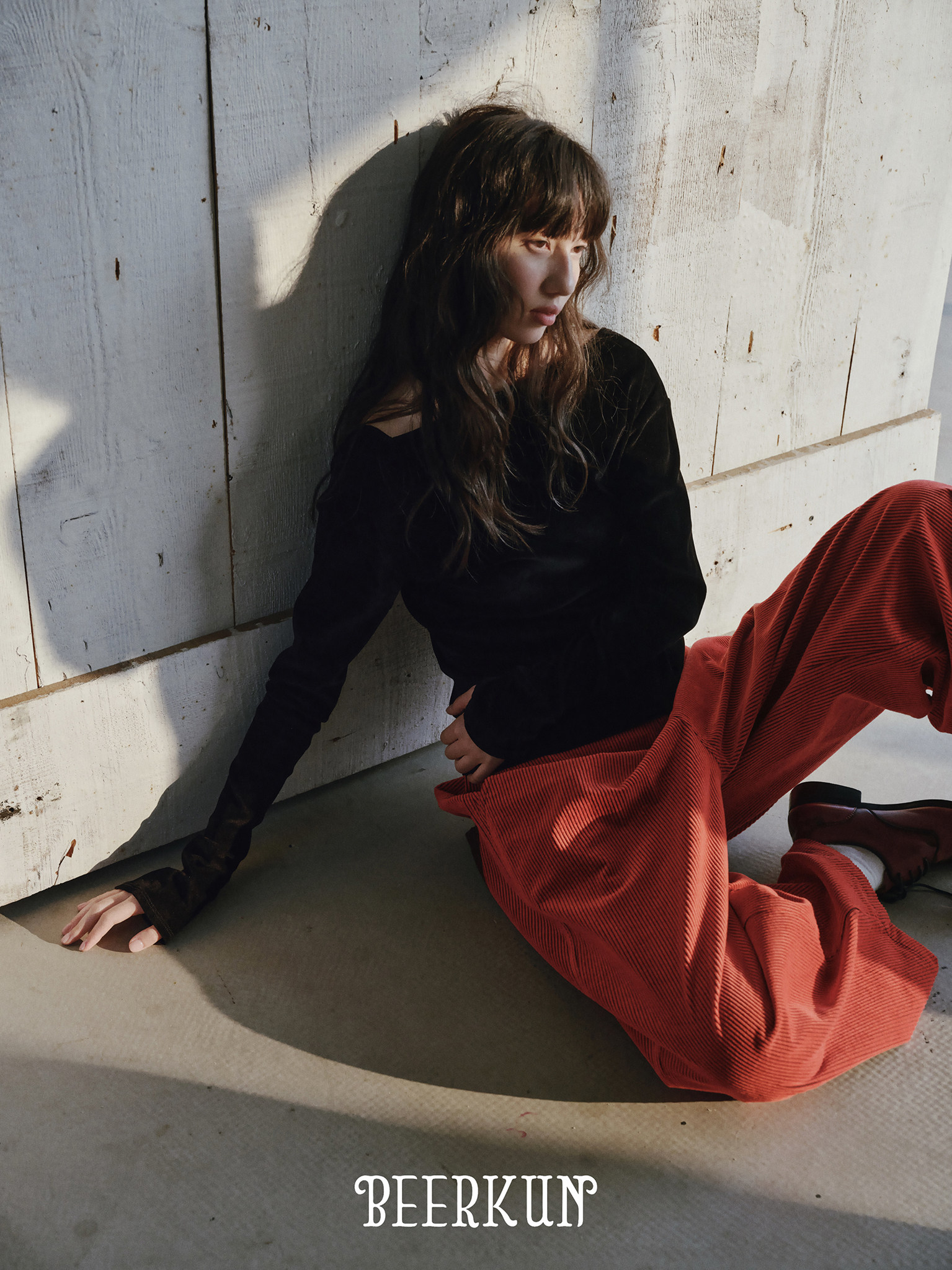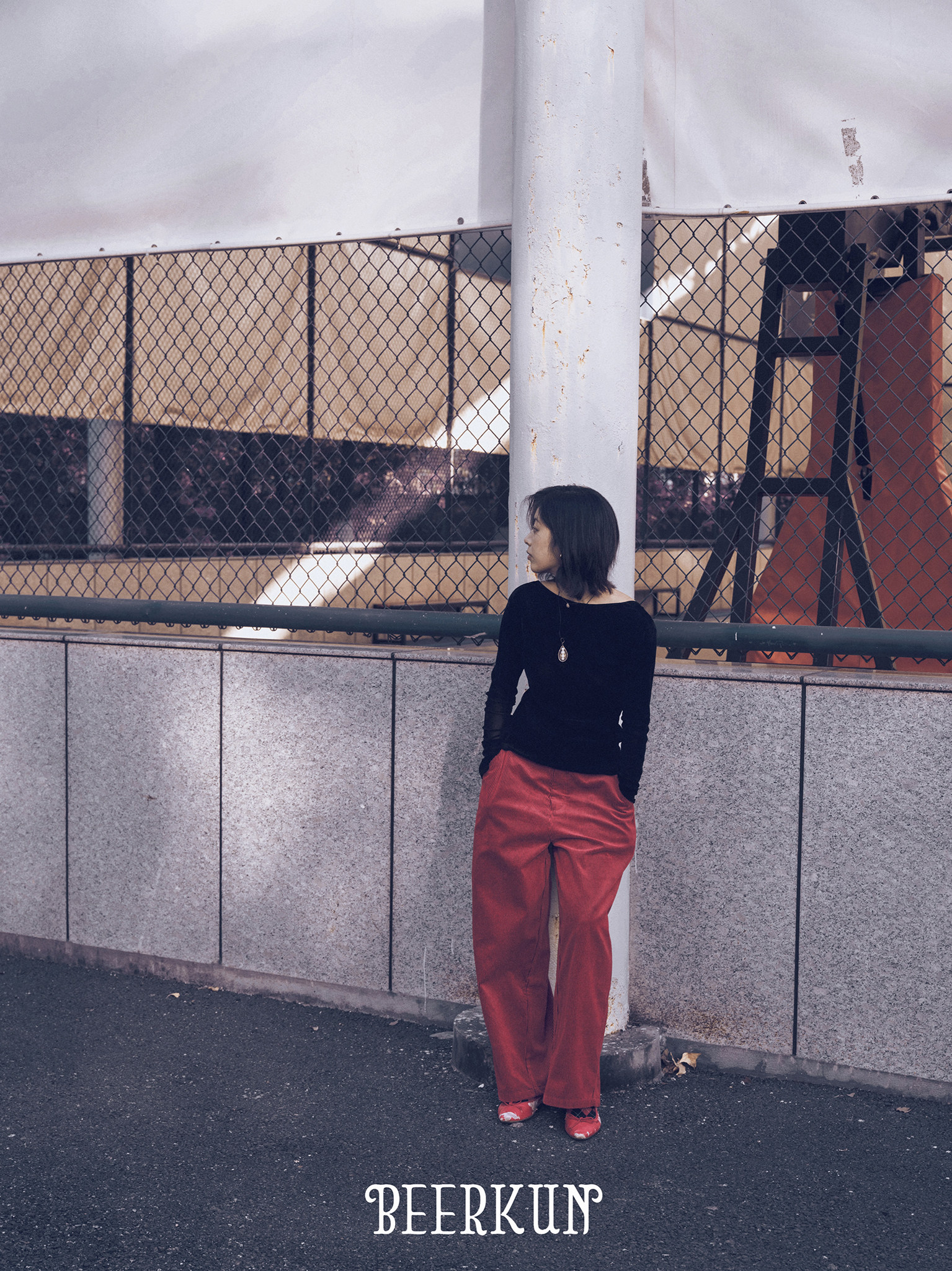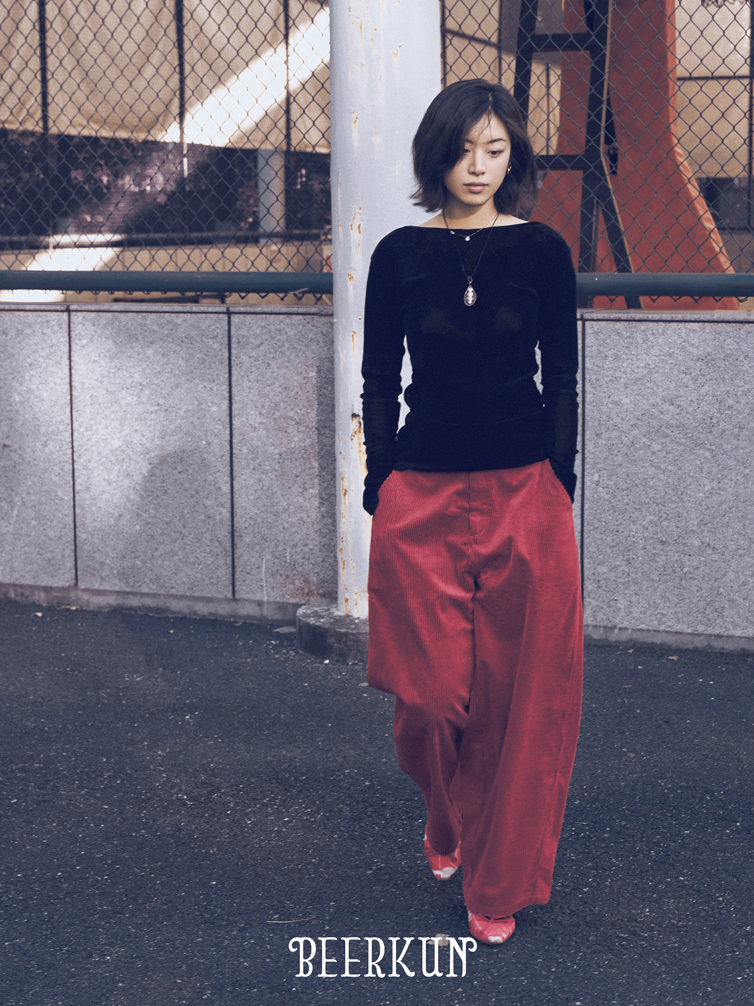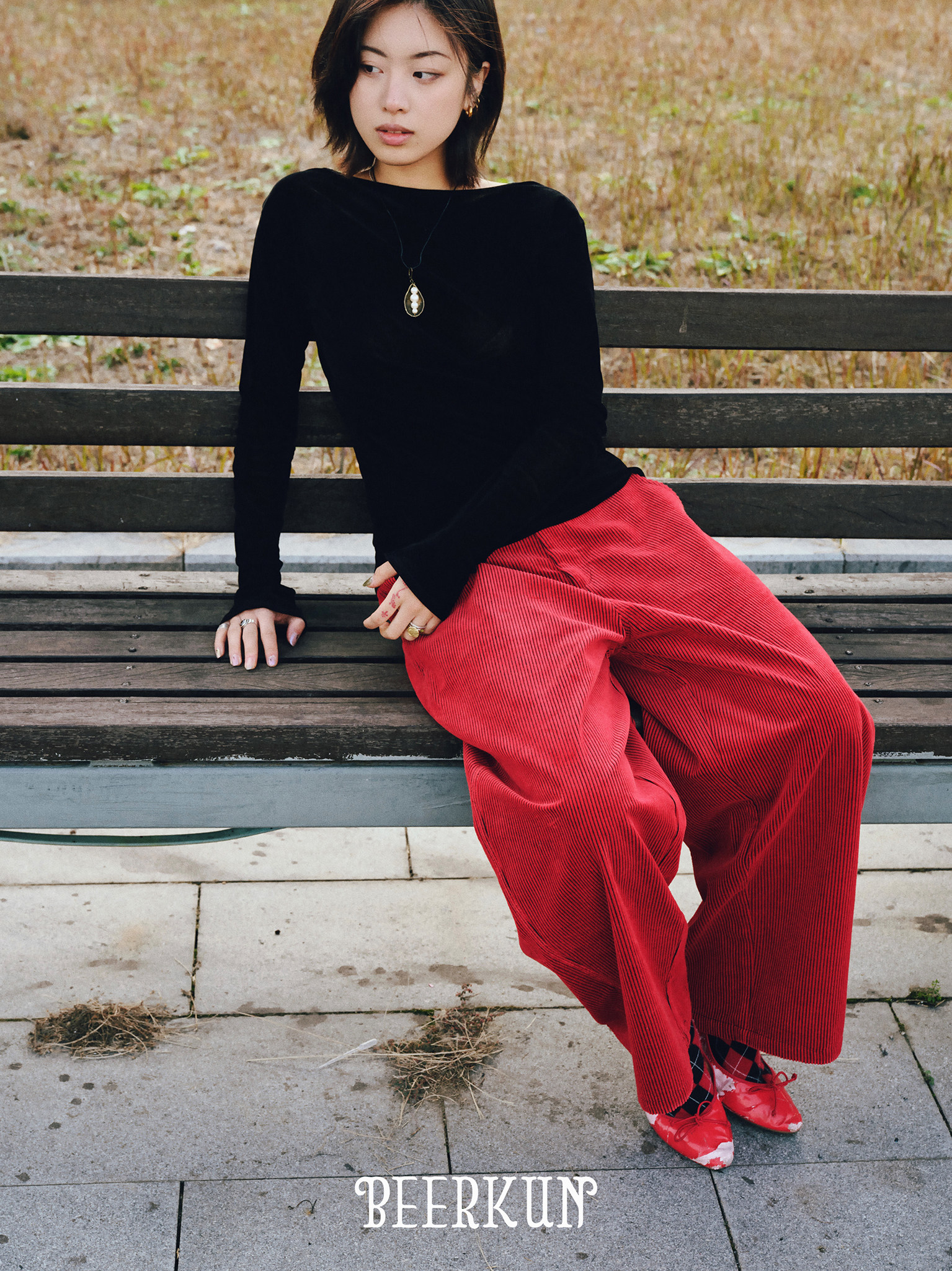 [特价]立裁廓形休闲裤 91%厚丝棉粗纹灯芯绒裤 柿子红