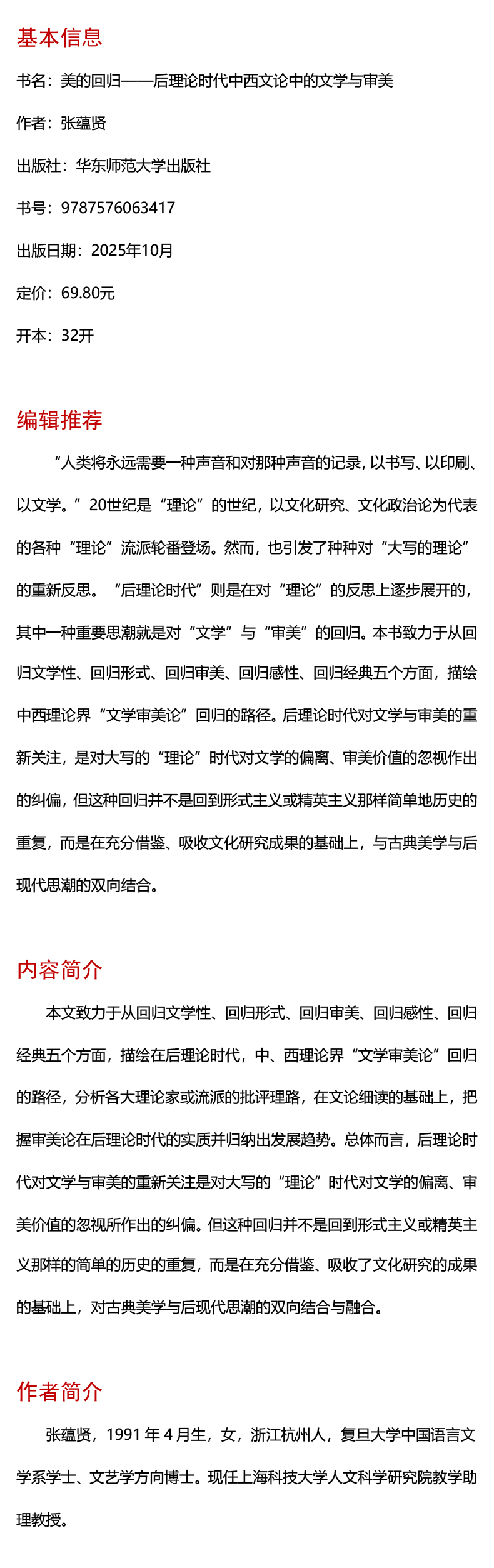 美的回归 后理论时代中西文论中的文学与审美 张蕴贤