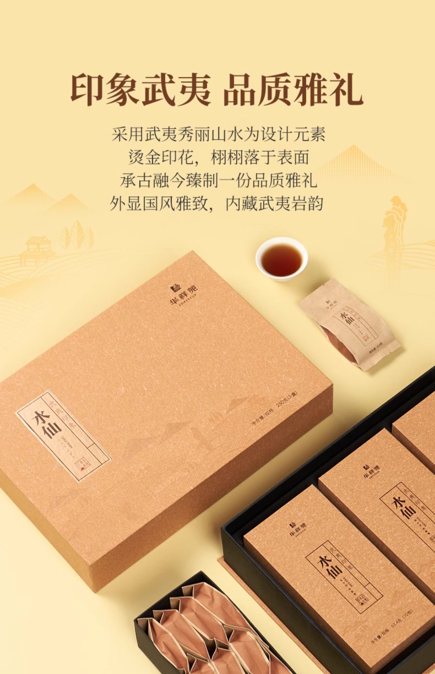 华祥苑茶叶 武夷印象水仙茶乌龙茶岩茶250g礼盒装 高档伴手礼
