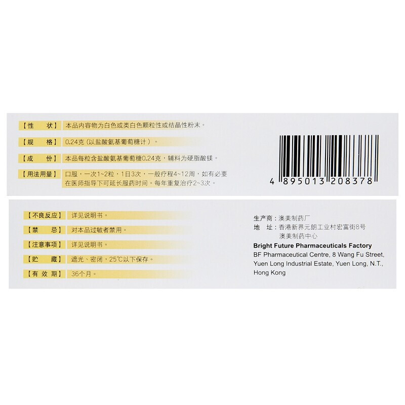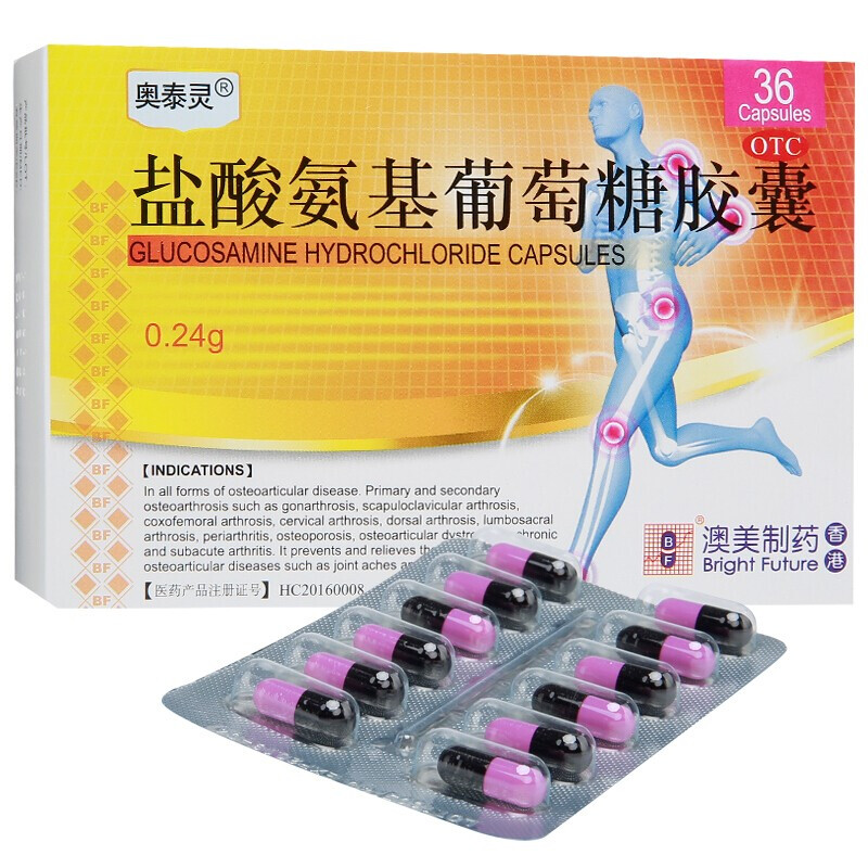 奥泰灵 澳美盐酸氨基葡萄糖胶囊36粒/盒 骨关节炎疼痛 缓解骨关节