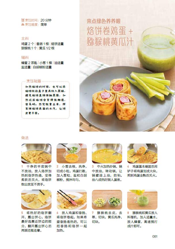 烙饼卷鸡蛋+猕猴桃黄瓜汁
