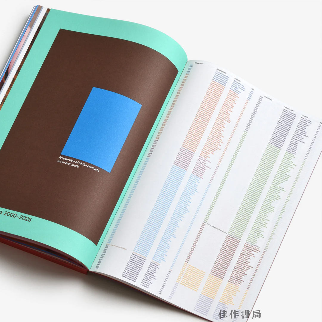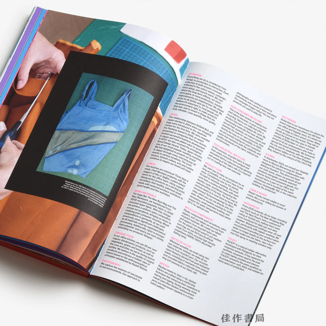Susan Bijl 是一个来自鹿特丹的品牌,以色彩缤纷、经典耐看且功能实用的再生防撕裂尼龙设计而闻名。本书讲述了该品牌的故事,并聚焦于日常使用其产品的用户。全书沿用了品牌访谈博客的风格——在博客中,Susan Bijl 与人们交流他们的工作、生活以及与品牌包袋之间的联结——书中收录了大量趣闻轶事,以及来自设计师梅特·海、音乐人金·戈登、演员洛埃斯·卢卡和艺术家贝特扬·波特等人的精彩见解。作为一本25周年回顾之作,书中还收录了对品牌同名创始人的访谈,并完整呈现了历年来每一季的系列产品与色彩组合等丰富内容。