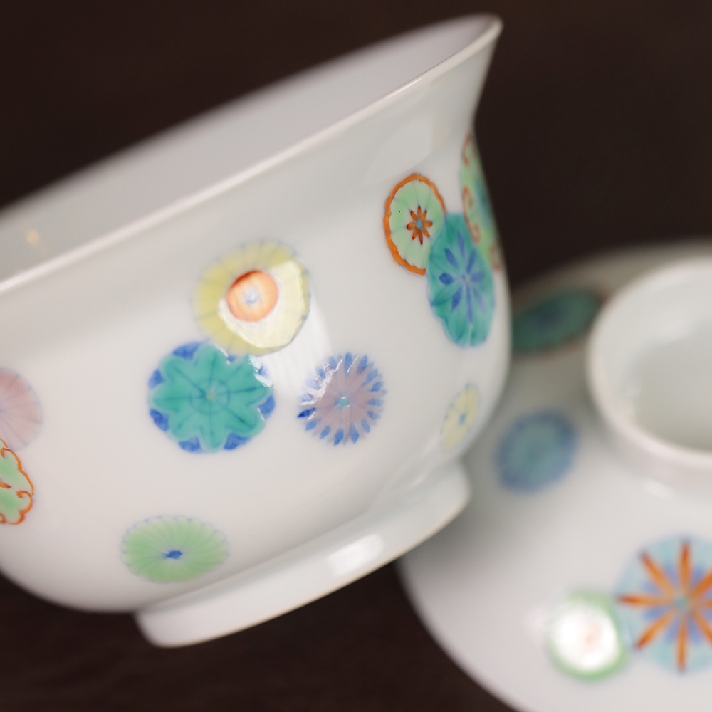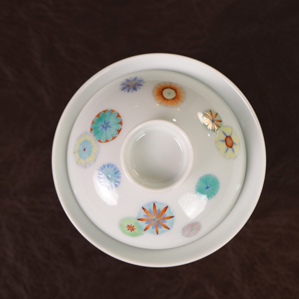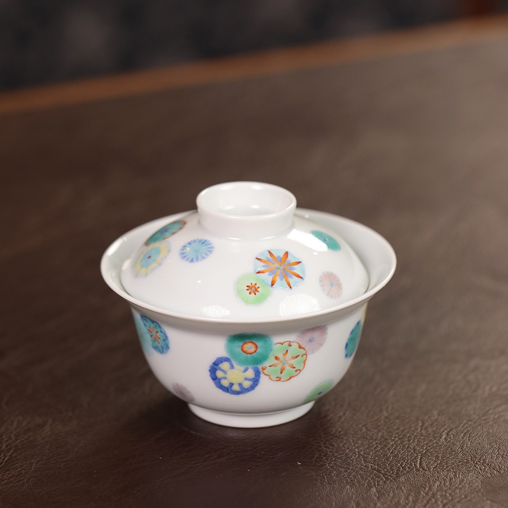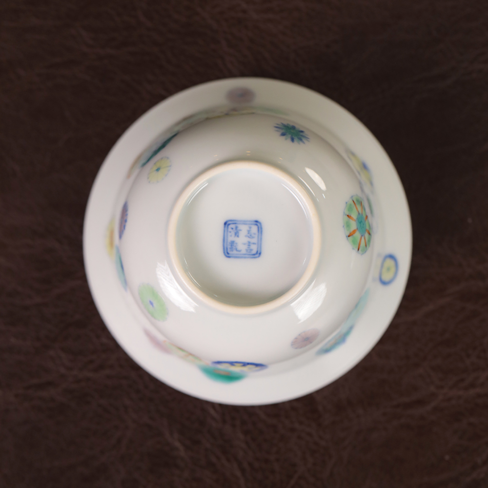 【忘言】斗彩皮球花折沿茶碗 盖碗 曰何文人器