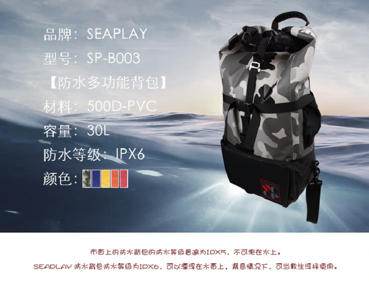 【装备脚蹼包】SEAPLAY 脚蹼双肩背包 水肺自由潜水装备包 自由潜防水包
