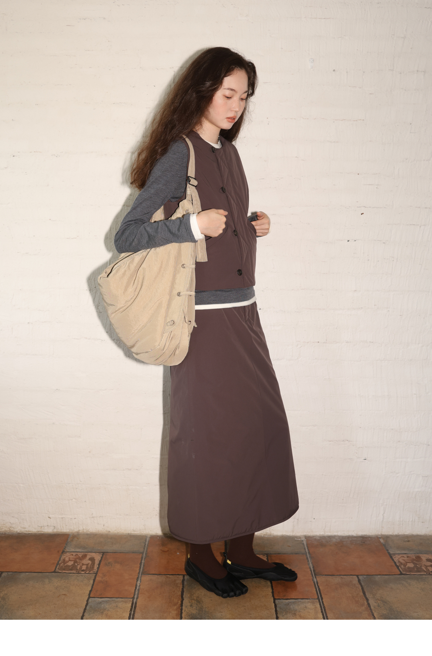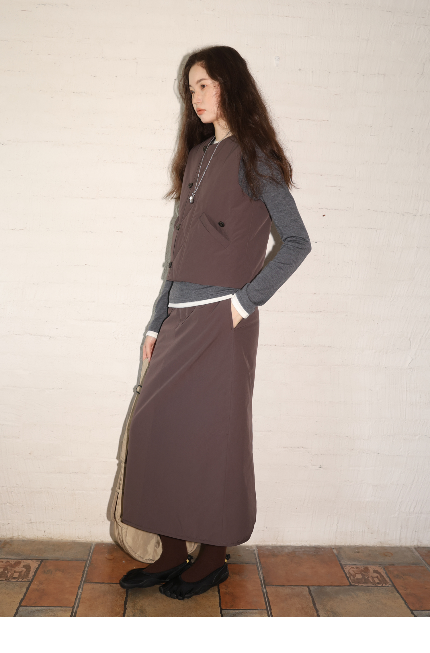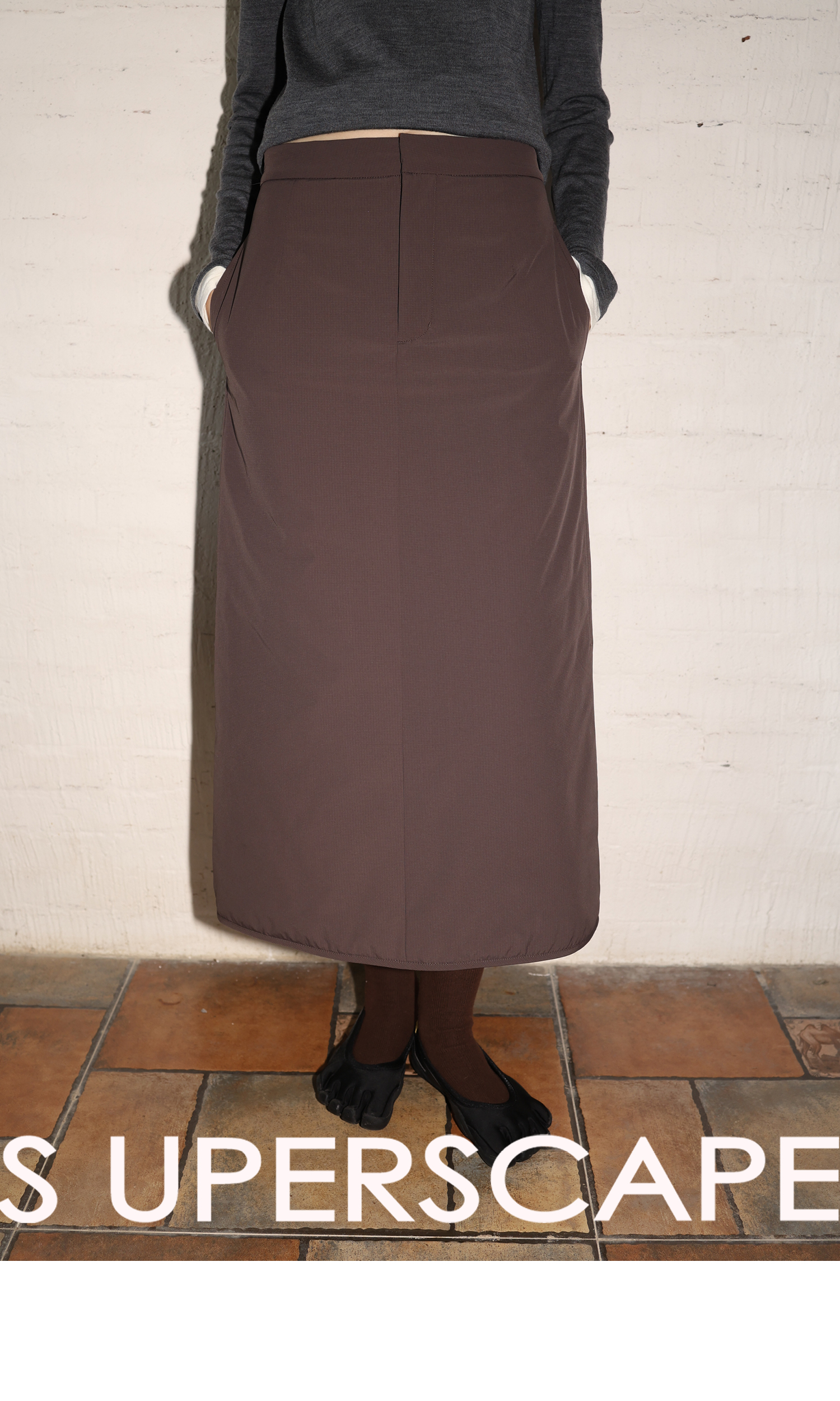 素舶 发热功能性棉内胆锁温保暖绗棉后开衩A字半身裙