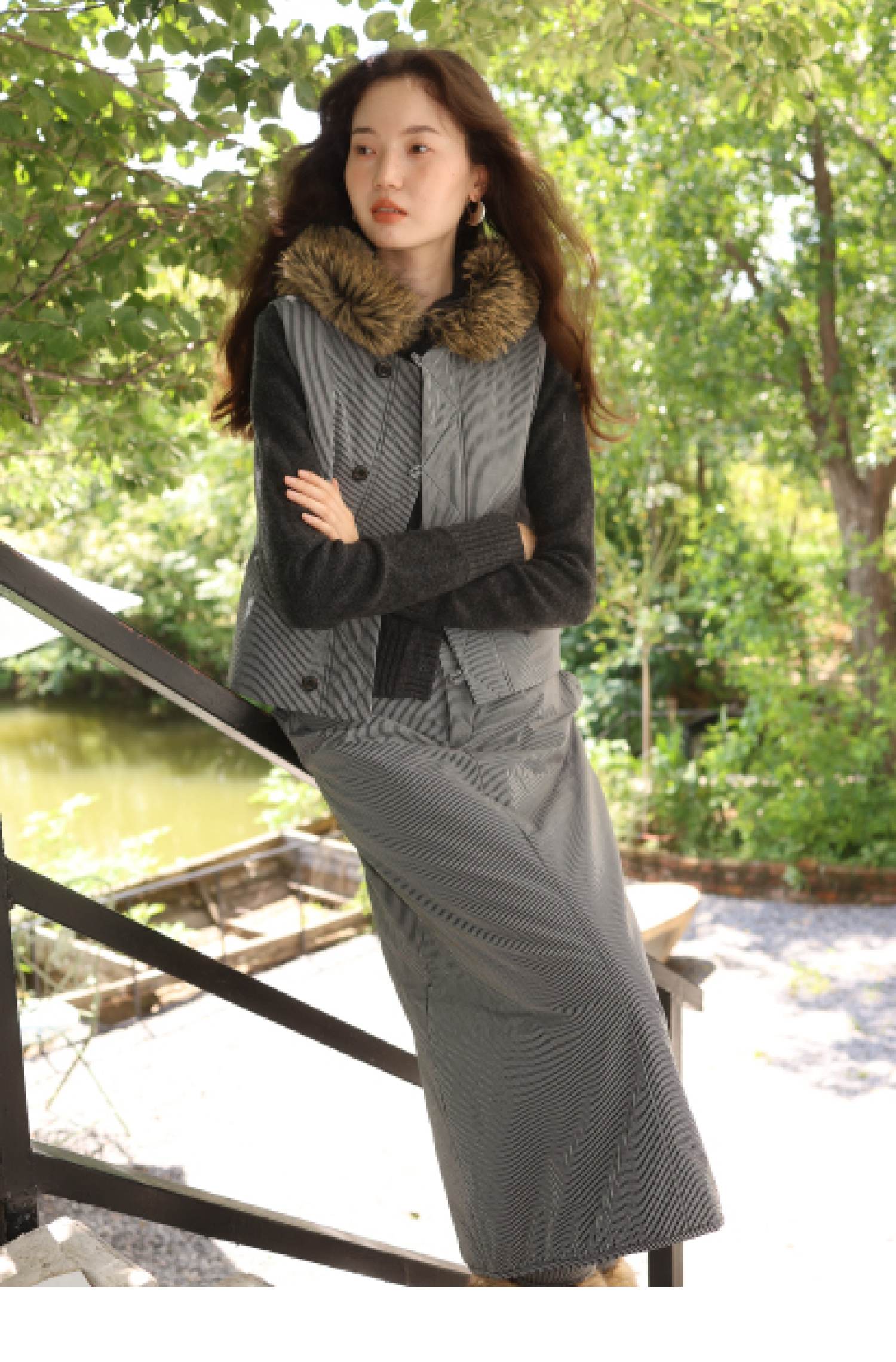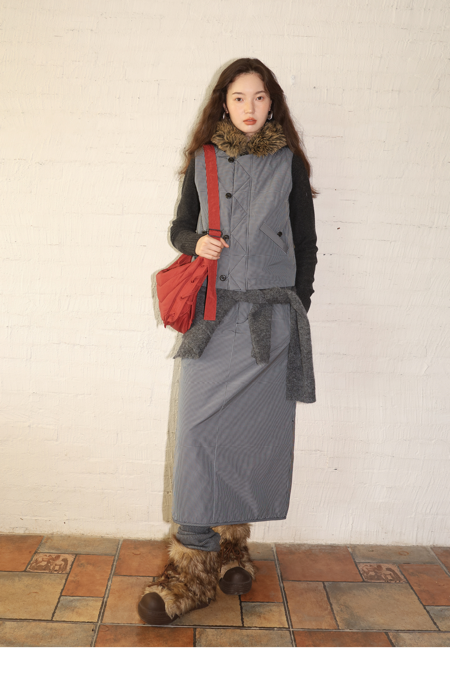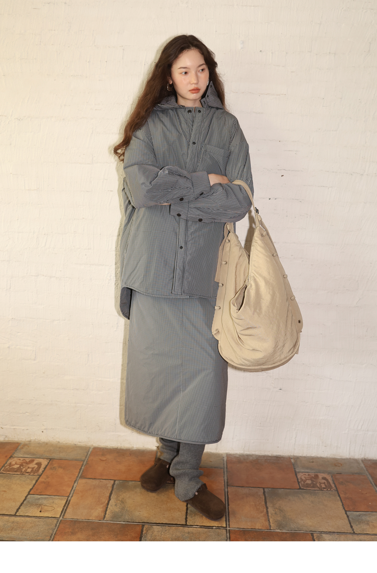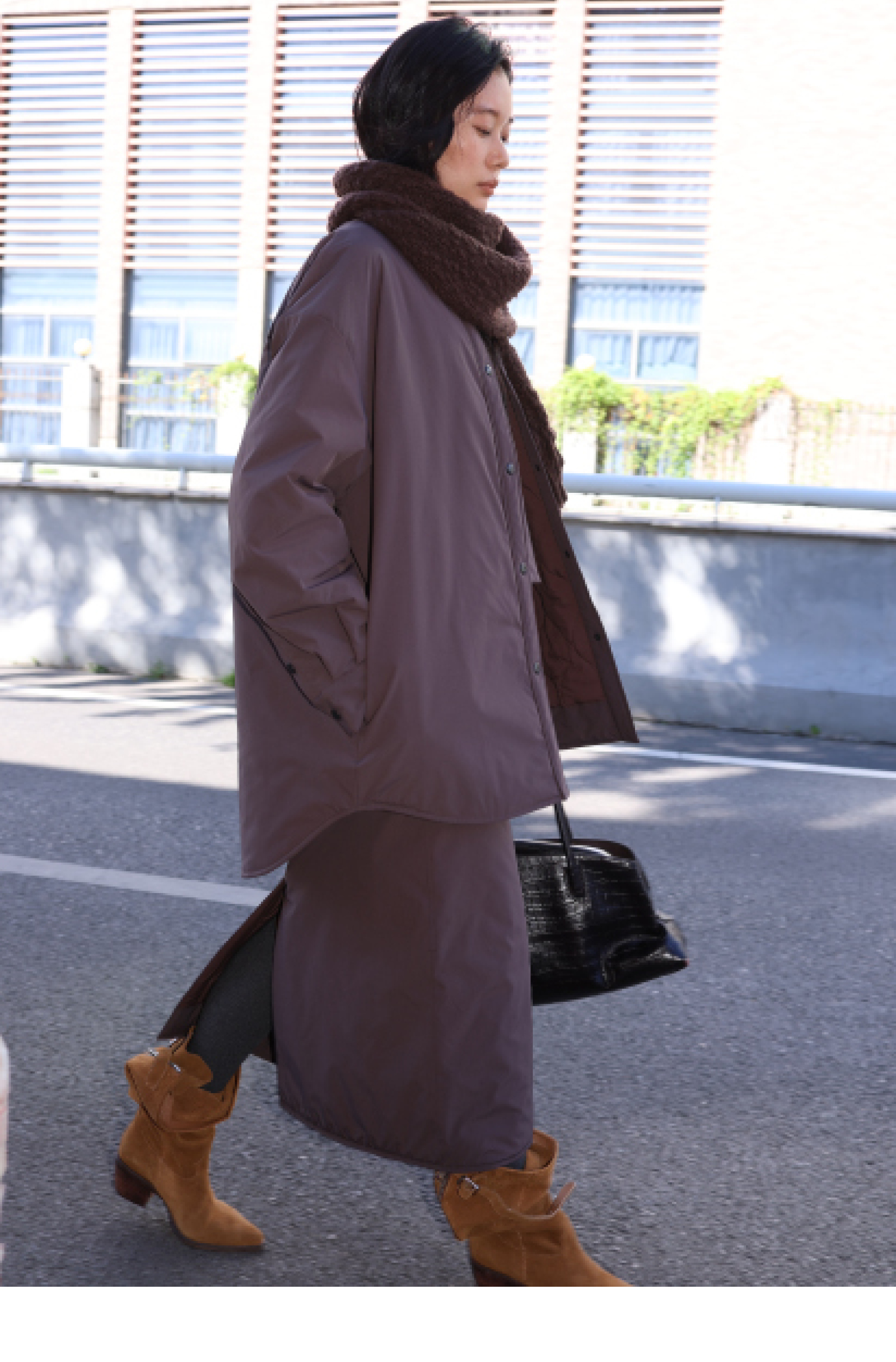 素舶 发热功能性棉内胆锁温保暖绗棉后开衩A字半身裙