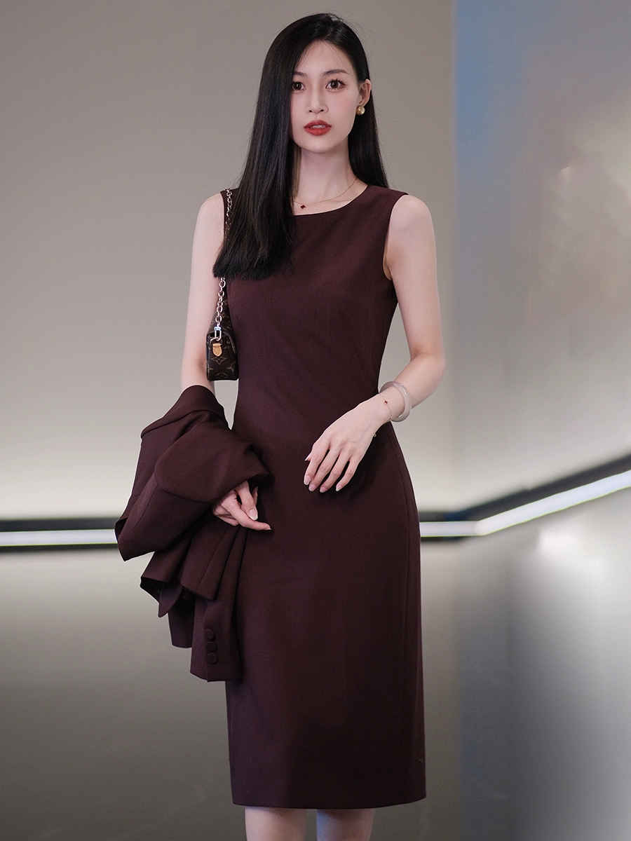 2024秋冬新品安哥拉红西装连衣裙套装女职业装高端时尚西服两件套