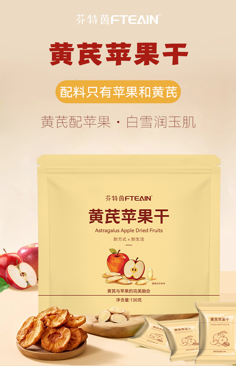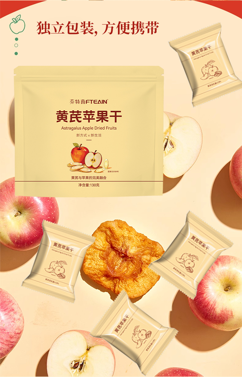 优选|黄芪苹果干 黄芪添加量20% 三蒸三烘烟台红富士苹果 香甜软糯 独立包装 130克*2袋