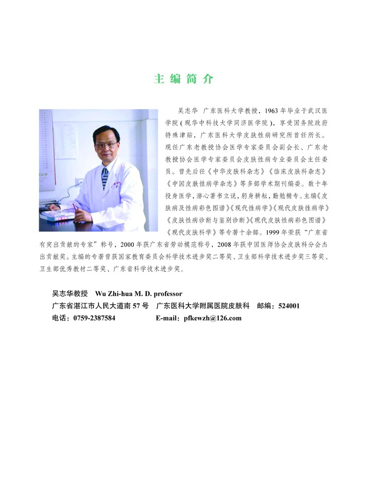 广东医科大学教授,1963 年毕业于武汉医学院( 现华中科技大学同济医学院),享受国务院政府特殊津贴,广东医科大学皮肤性病研究所首任所长。现任广东老教授协会医学专家委员会副会长、广东老教授协会医学专家委员会皮肤性病专业委员会主任委员。曾先后任《中华皮肤科杂志》《临床皮肤科杂志》《中国皮肤性病学杂志》等多部学术期刊编委。数十年投身医学,潜心著书立说,躬身耕耘,勤勉精专。主编《皮肤病及性病彩色图谱》《现代性病学》《现代皮肤性病学》《皮肤性病诊断与鉴别诊断》《现代皮肤性病彩色图谱》《现代皮肤科学》等专著十余部。1999 年荣获“广东省有突出贡献的专家”称号,2000 年获广东省劳动模范称号,2008 年获中国医师协会皮肤科分会杰出贡献奖。主编的专著曾获国家教育委员会科学技术进步奖二等奖、卫生部科学技术进步奖三等奖、卫生部优秀教材二等奖、广东省科学技术进步奖。