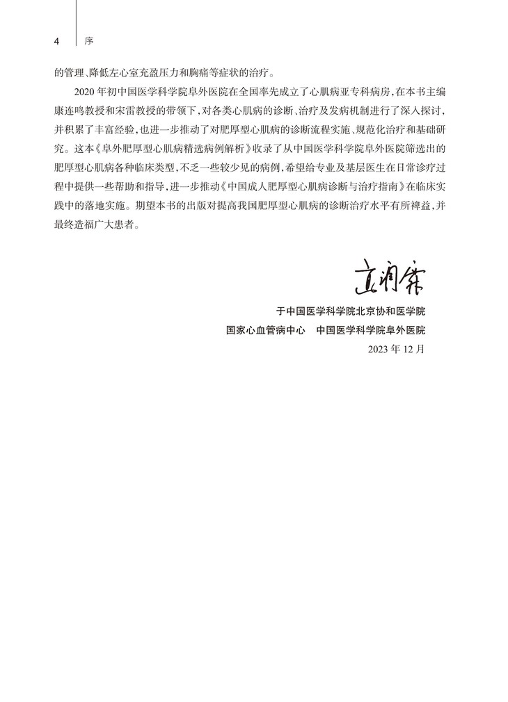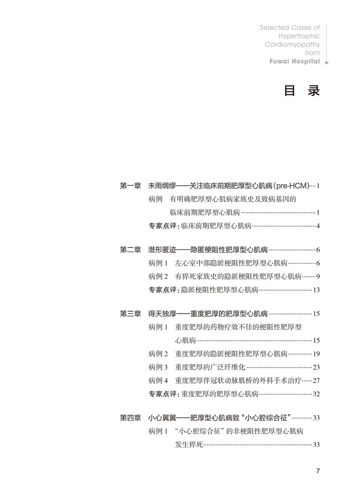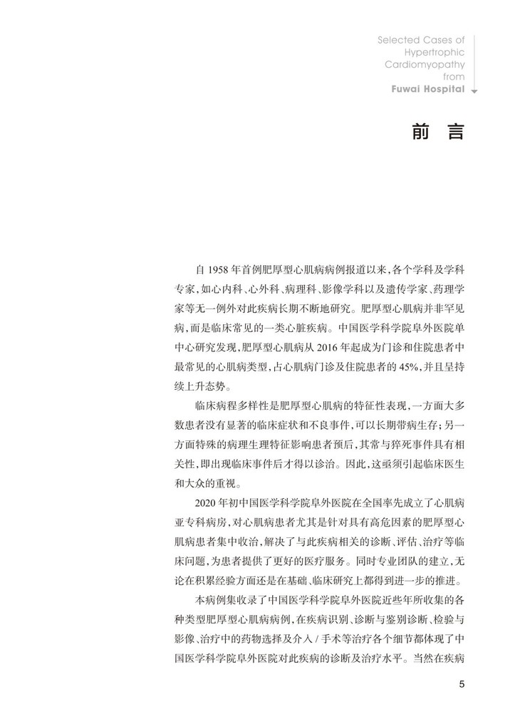 本书收录了从中国医学科学院阜外医院筛选出的肥厚型心肌病各种临床类型,不乏一些较少见的病例,在疾病识别、诊断与鉴别诊断、检验与影像、治疗中的药物选择及介入/手术等治疗各个细节都体现了中国医学科学院阜外医院对此疾病的诊断及治疗水平,希望给专业及基层医生在日常诊疗过程中提供一些帮助和指导,进一步推动《中国成人肥厚型心肌病诊断与治疗指南》在临床实践中的落地实施。