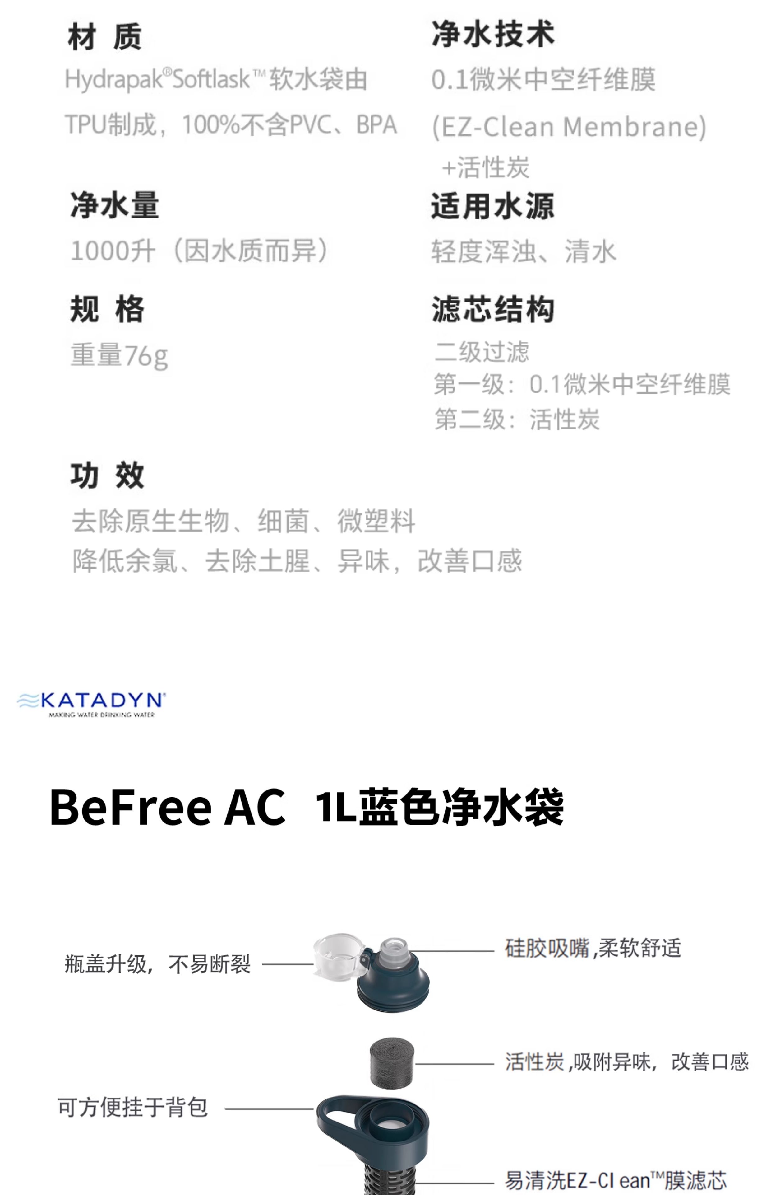 康迪 轻骑兵 轻至58克 便携 净水器(Katadyn Befree)