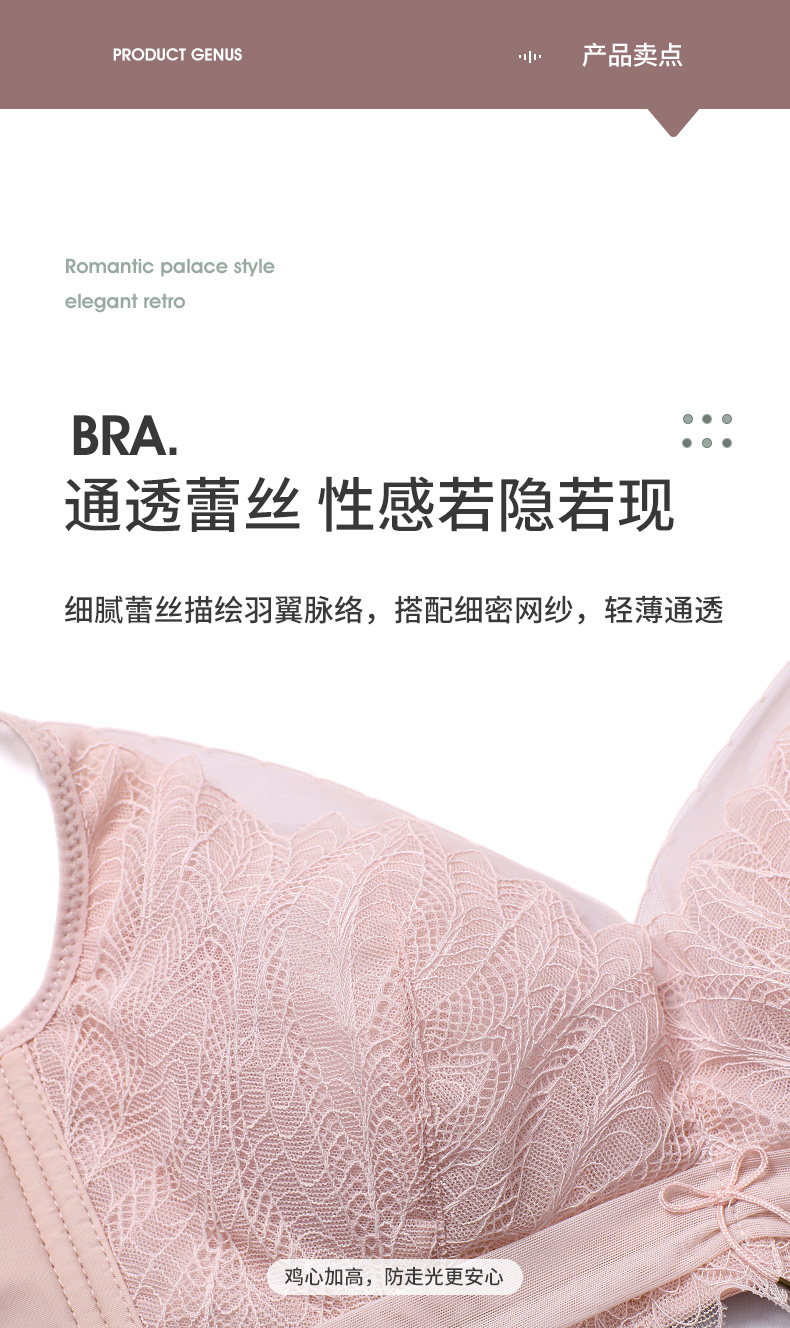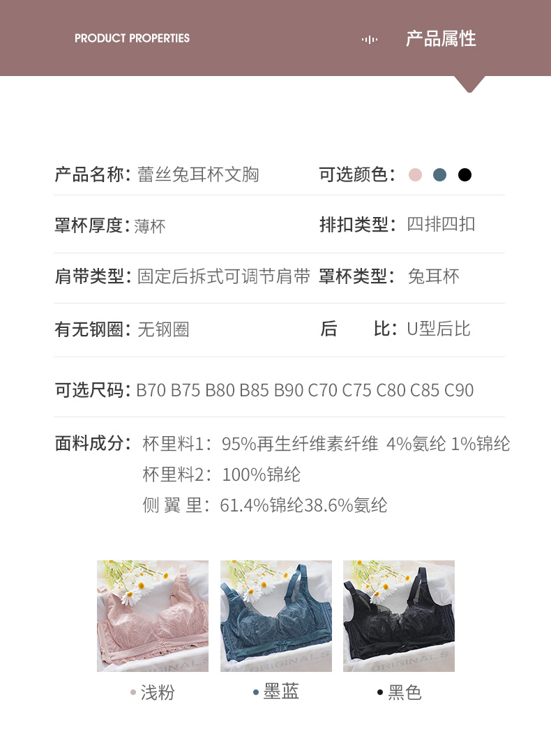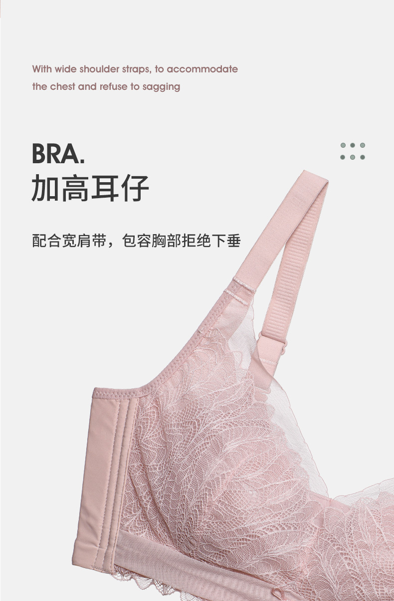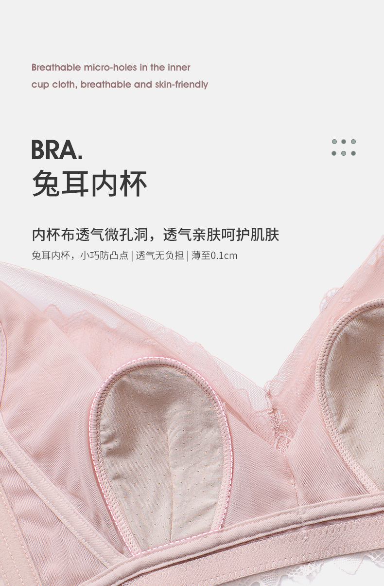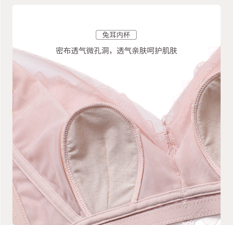 雅黛丽内衣女薄杯性感蕾丝侧收聚拢无钢圈兔耳杯女士胸罩