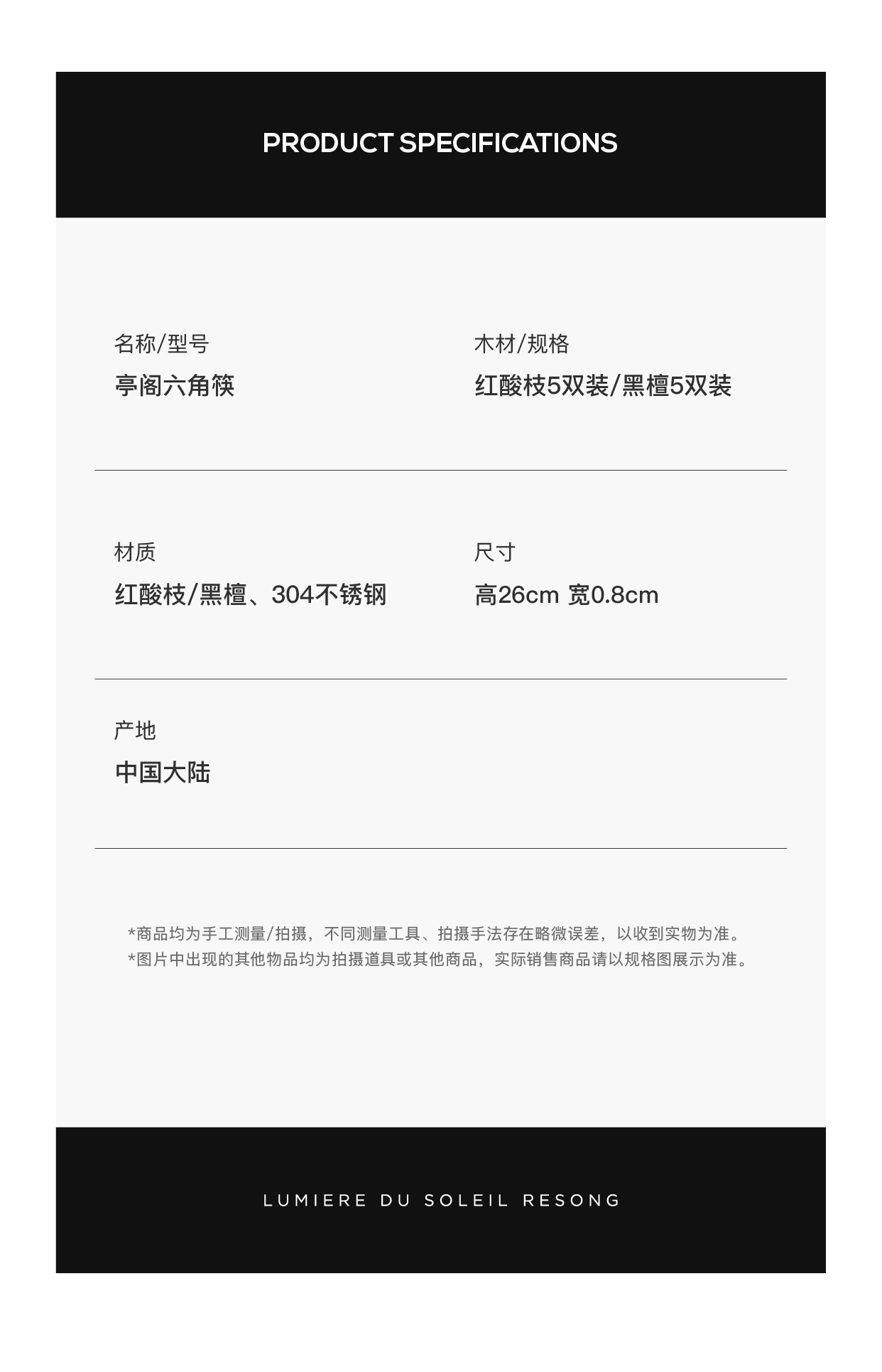 亭阁六角筷5双装 RESONG日诵家居 筷子