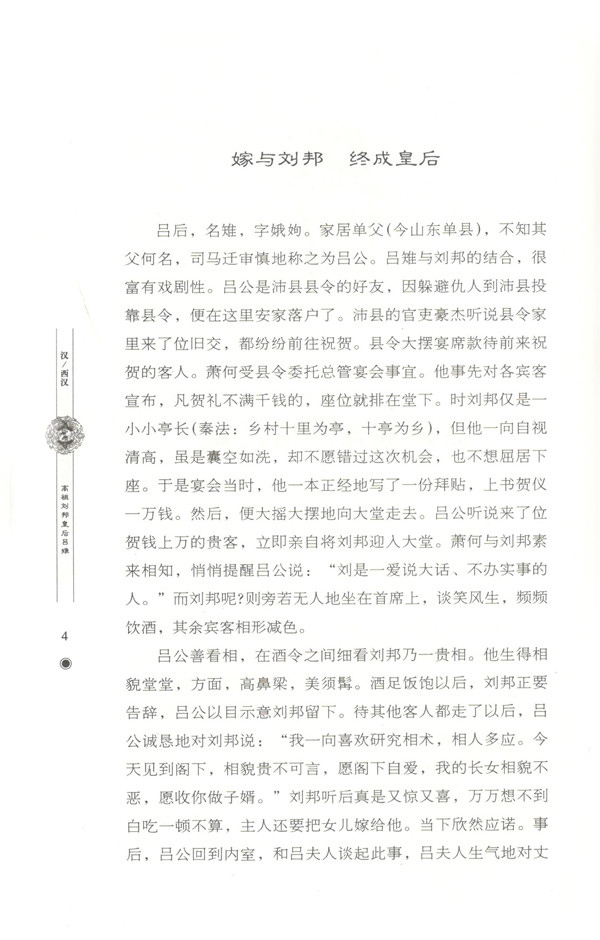 在中国封建社会的历史长河中,陪伴在历代皇帝身边的后妃,作为中国封建时代妇女中地位最高贵的人,曾经显赫一时。本书汇集了历代皇后的传记,上起始皇帝赢政之母,下至末代皇后婉容;同时也尽量把在历史上有影响的嫔妃乃至皇太后及为和亲而献身的公主的传记囊括其中。举凡后妃的相夫教子、母仪天下、花容月貌、仪态举止、嗜好秉性、争宠倾轧、宫闱弄权、垂帘听政,都有所涉猎。构成了一幅中国封建社会丰富多采的后宫生活的历史画卷。同时选录图片千余幅,包括后妃肖像、后宫器用、居处行止、服装头饰、民情风俗、名物胜迹、书画著作等。本书可谓全面翔实,图文并茂。通读、查检均可,珍藏、馈赠咸宜。