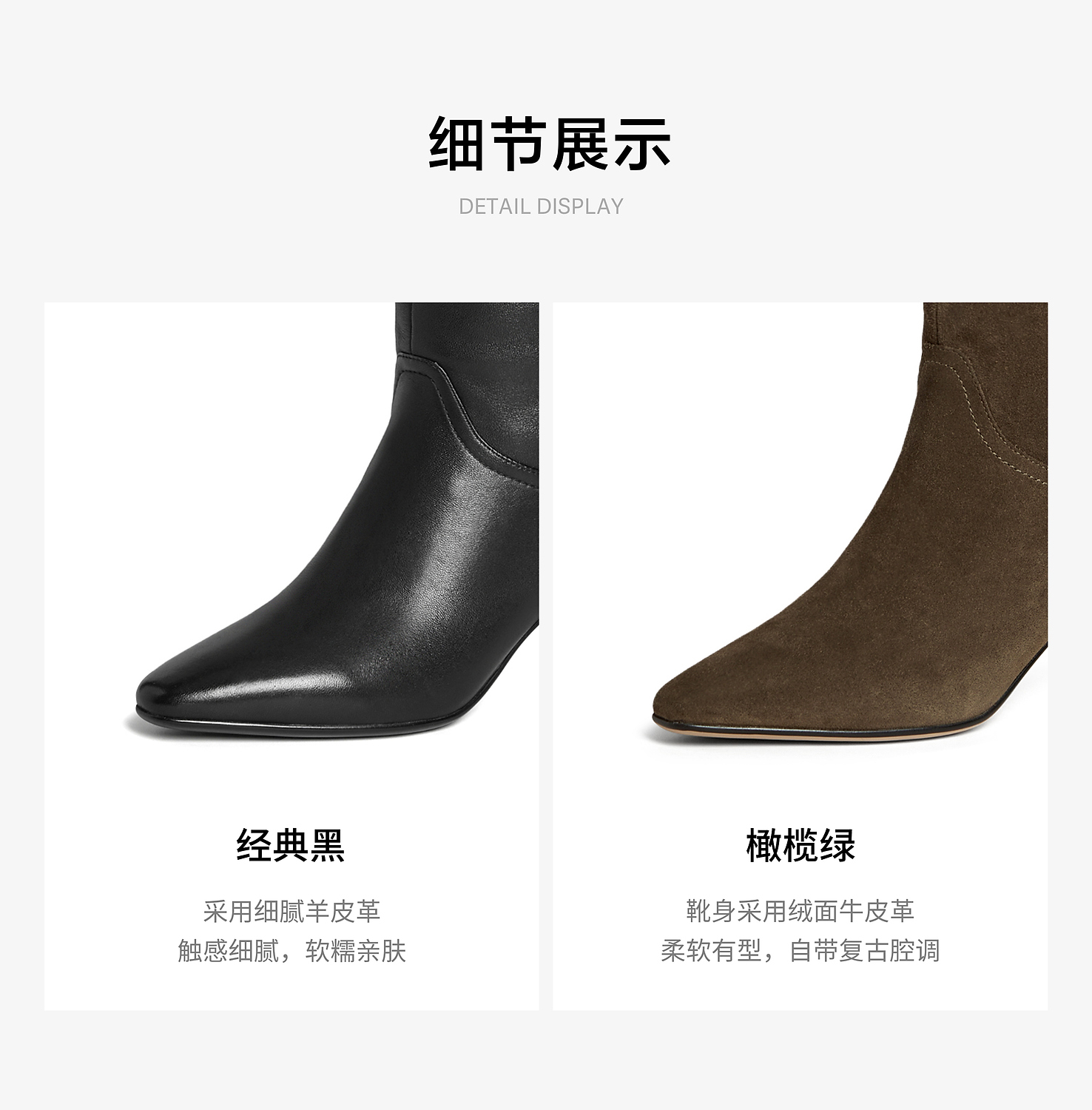 BF楼真美诗董洁同款回头率2025新冬款羊皮高跟堆堆靴时装瘦瘦靴长靴女吊牌价2998折后价2298
