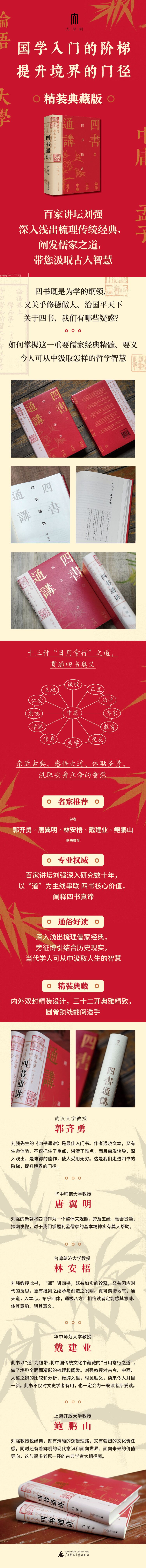 “四书”入门的阶梯,提升境界的门径。精装典藏版!百家讲坛刘强深入浅出梳理国学经典,阐发儒家之道,带您汲取古人智慧。