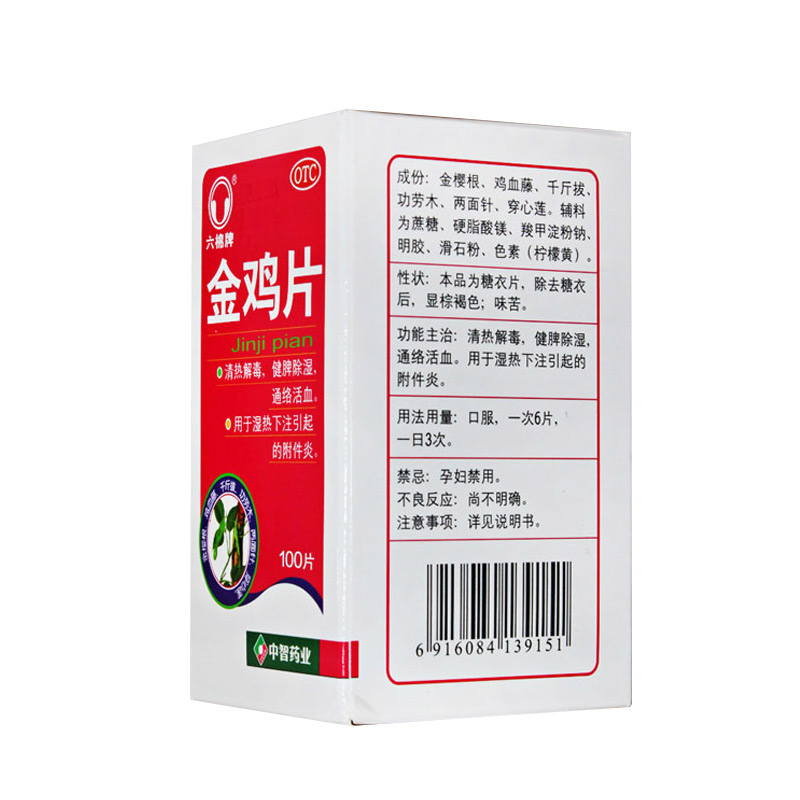 金鸡片 0.247g*100片 湿热下注引起的附件炎 健脾除湿 通络活血