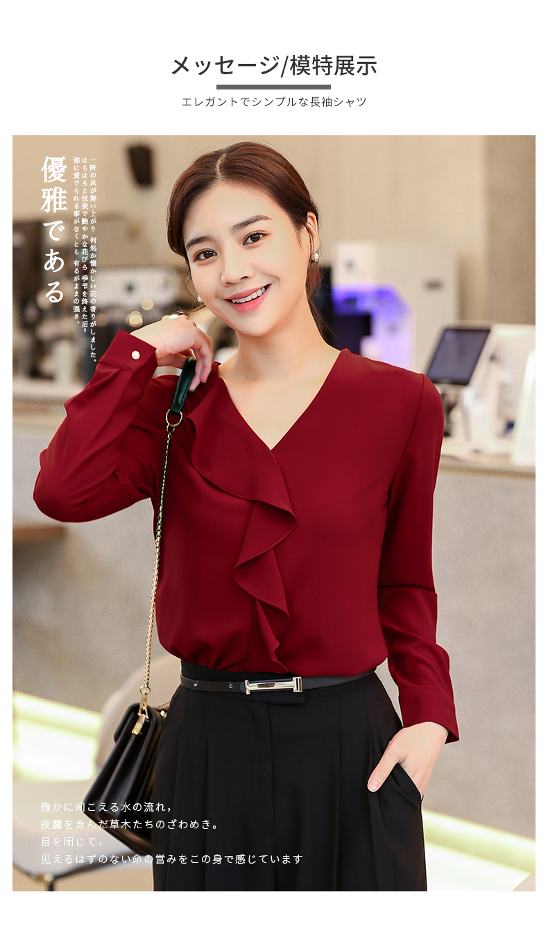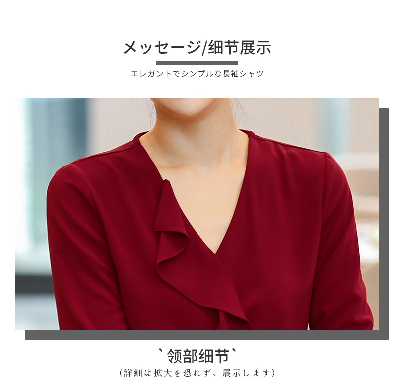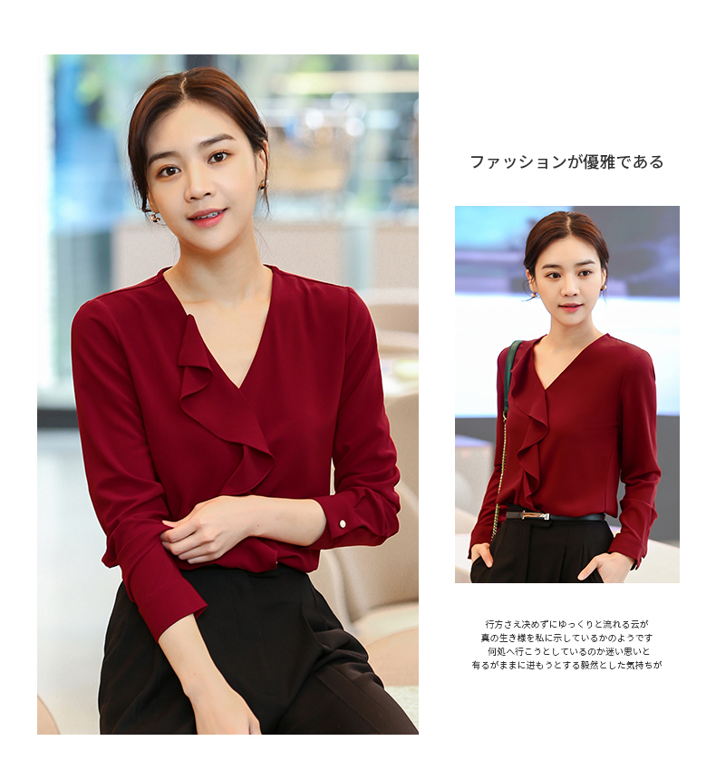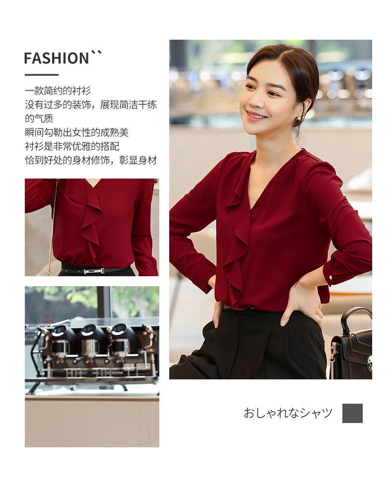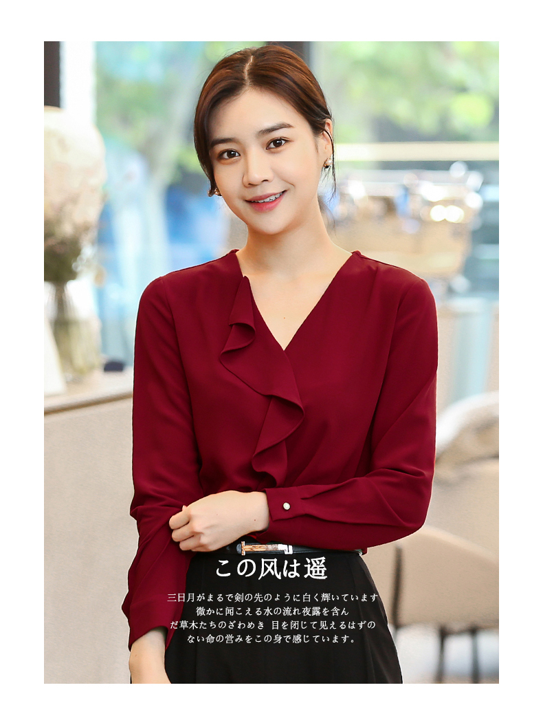 高端雪纺衬衫长袖女V领上衣设计感小众衬衣
