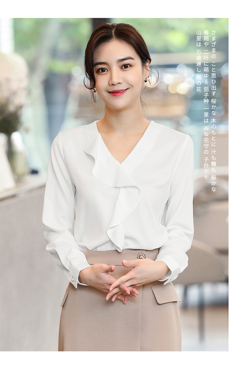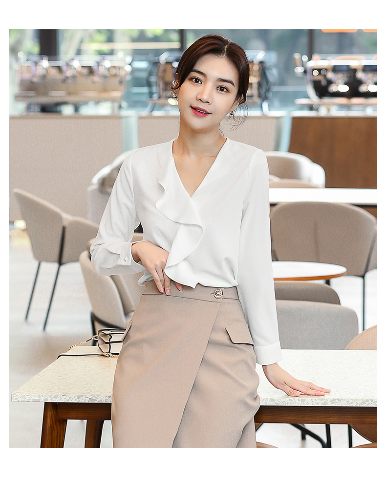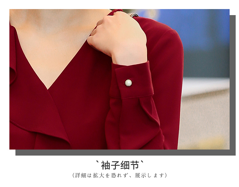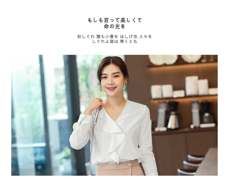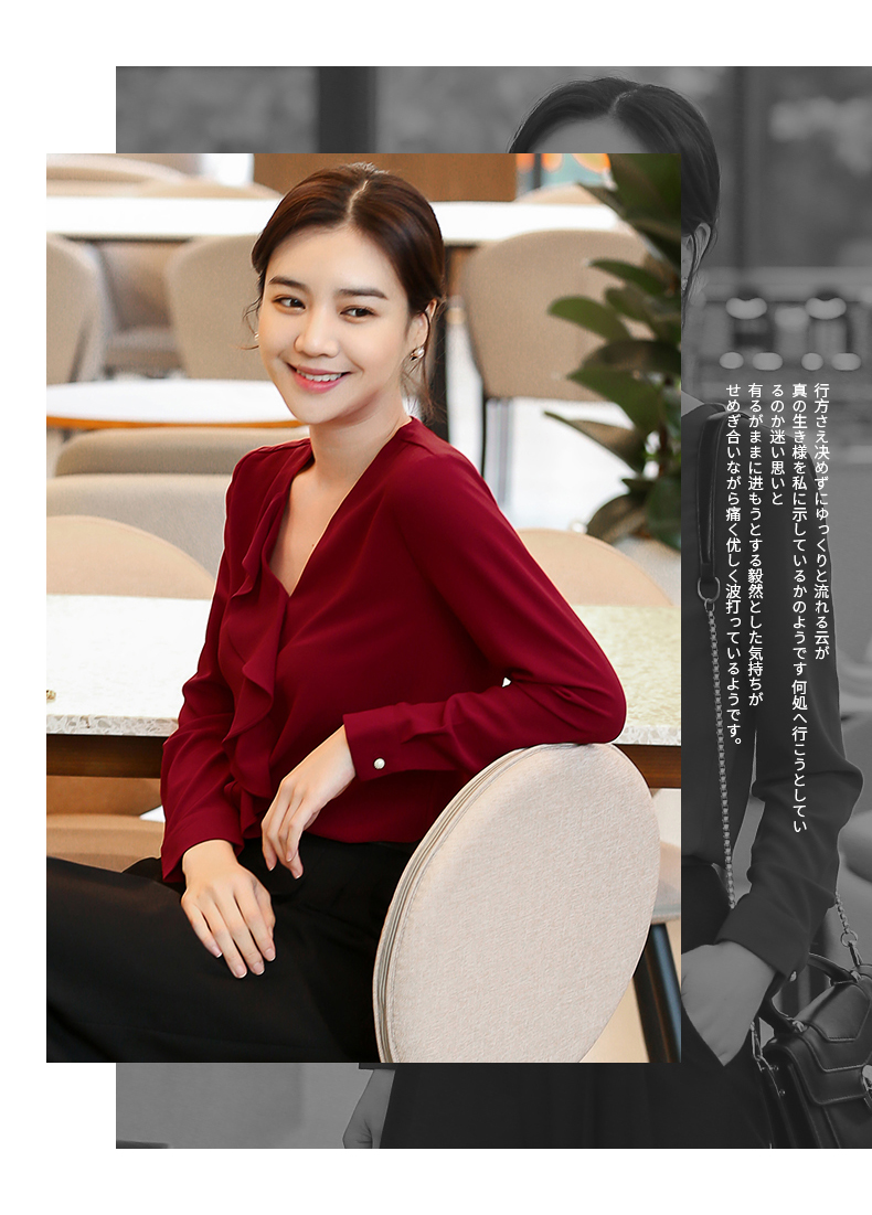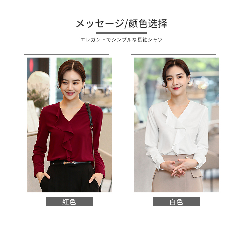 高端雪纺衬衫长袖女V领上衣设计感小众衬衣