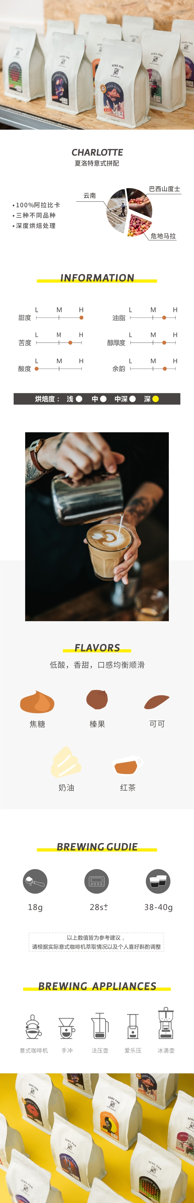 夏洛特意式拼配 低酸香甜 阿拉比卡深烘拼配咖啡豆