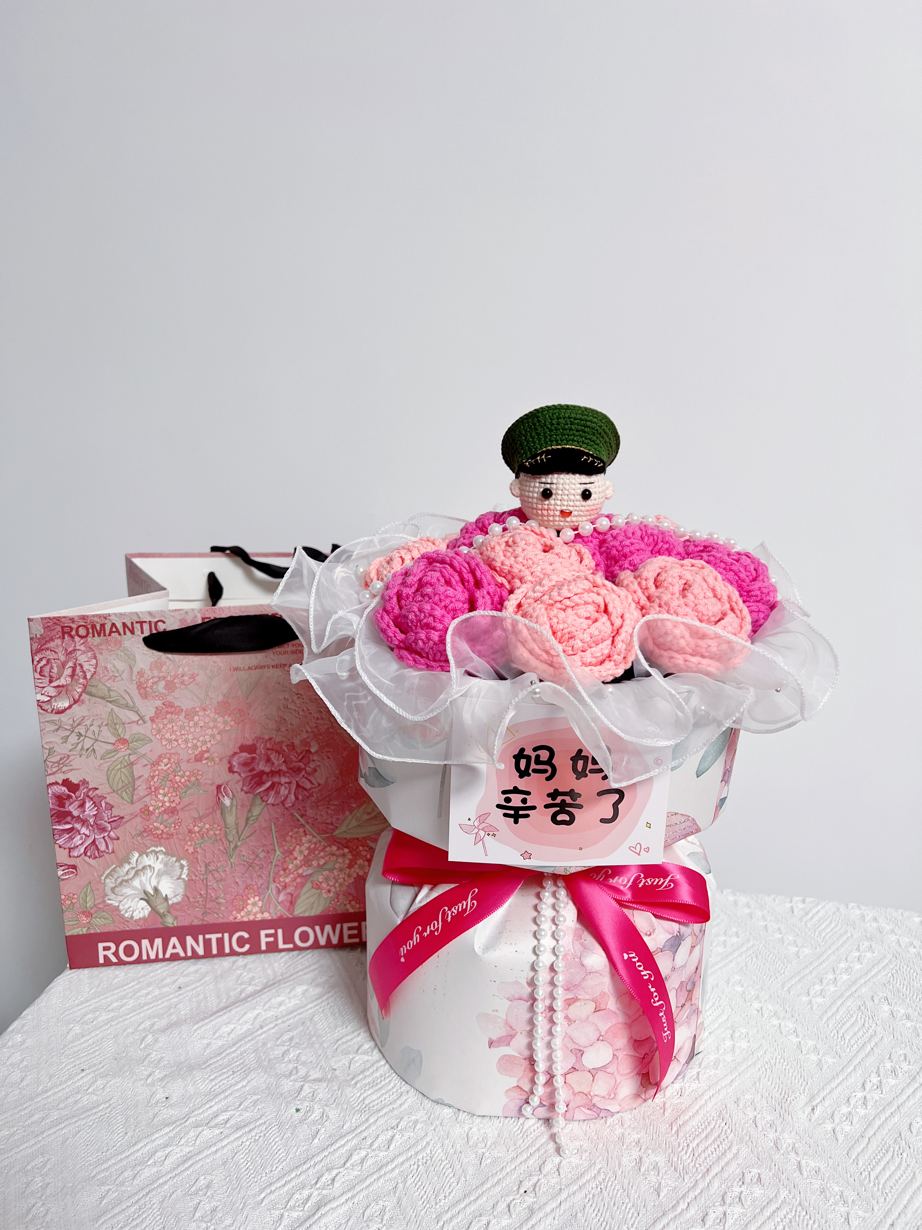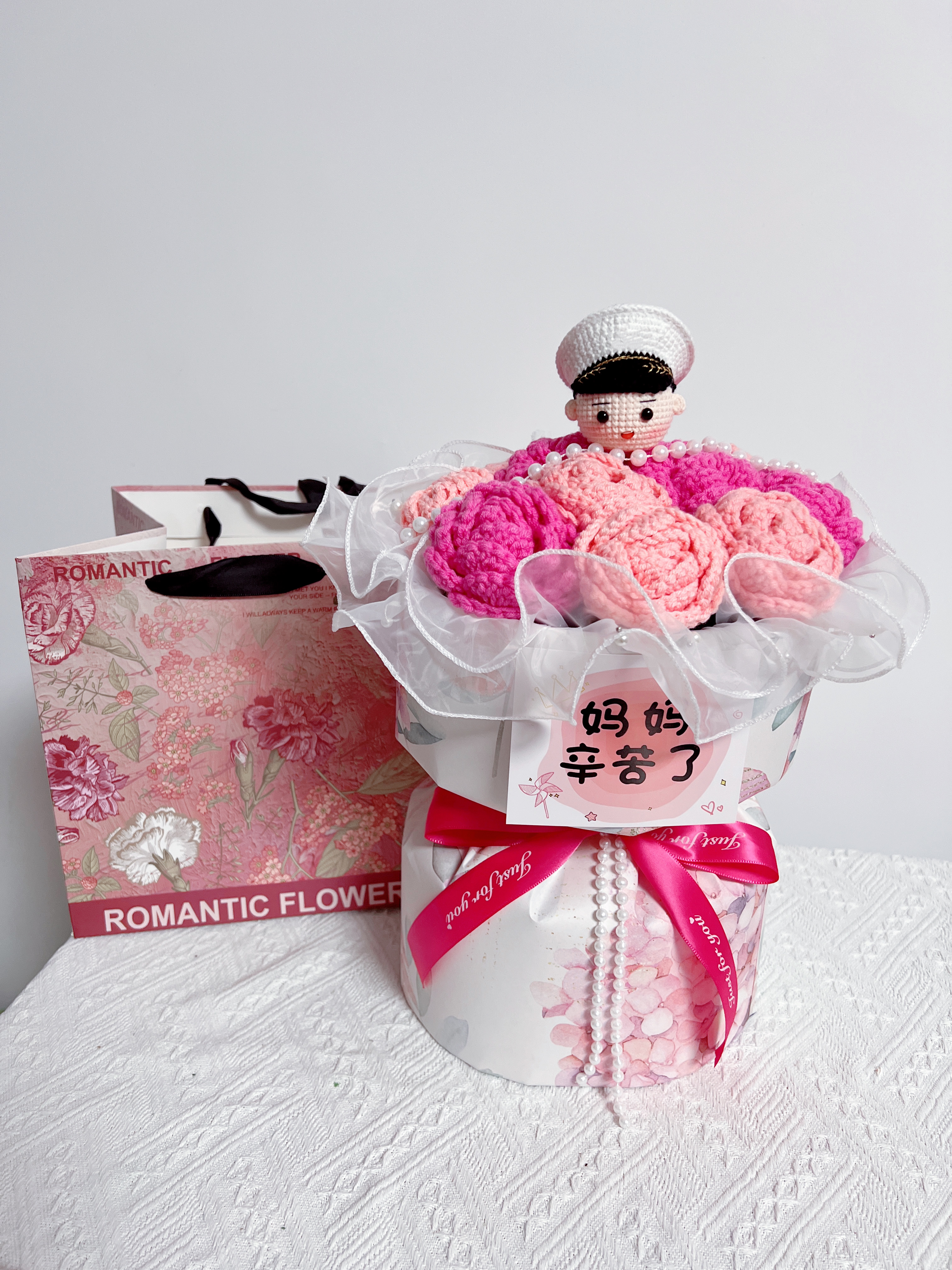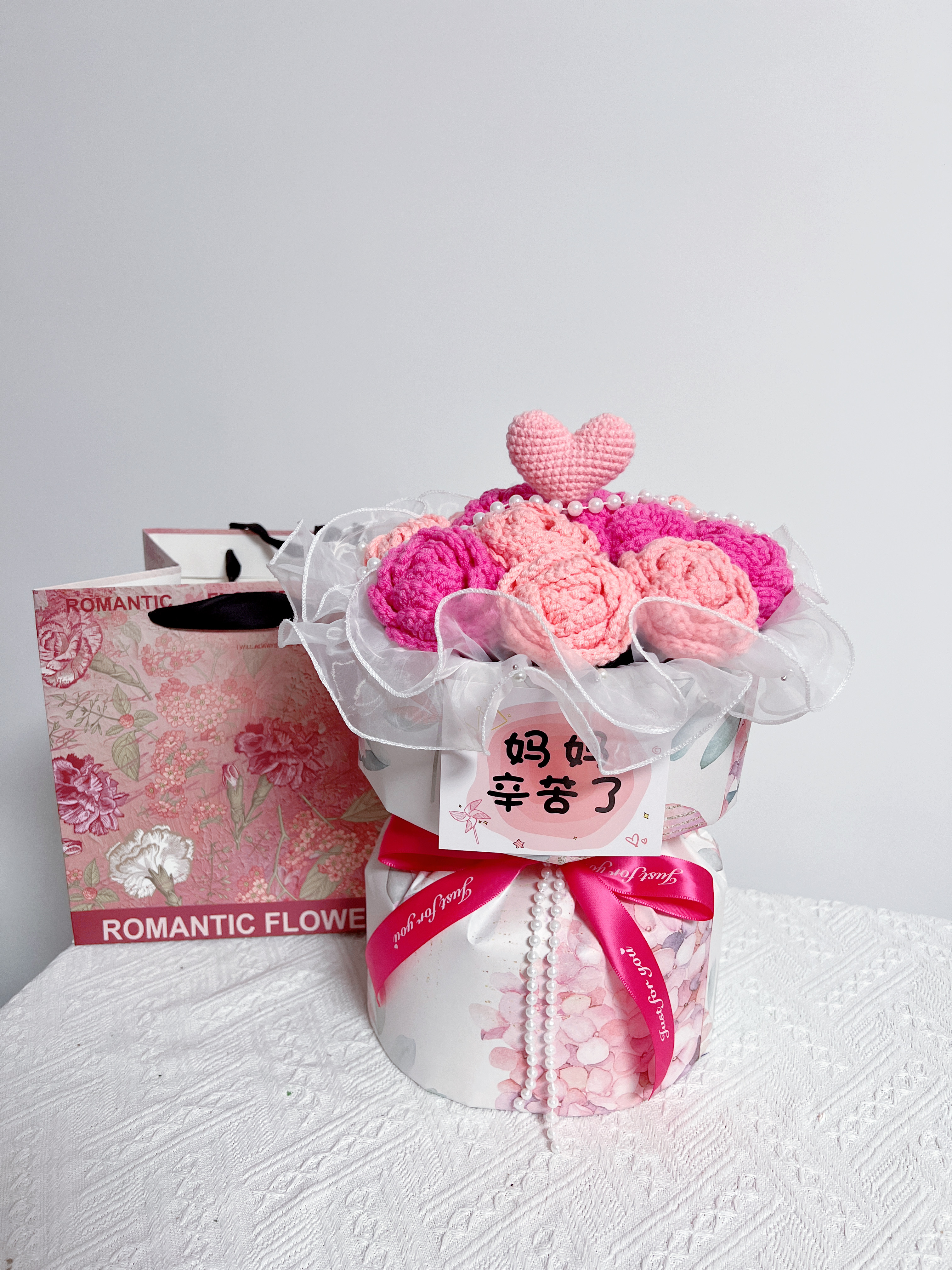 【专属DIY纯手工钩织11朵小玫瑰花束】纯手工钩织母亲节送礼小香风花束(手工产品不支持退换)LQQ