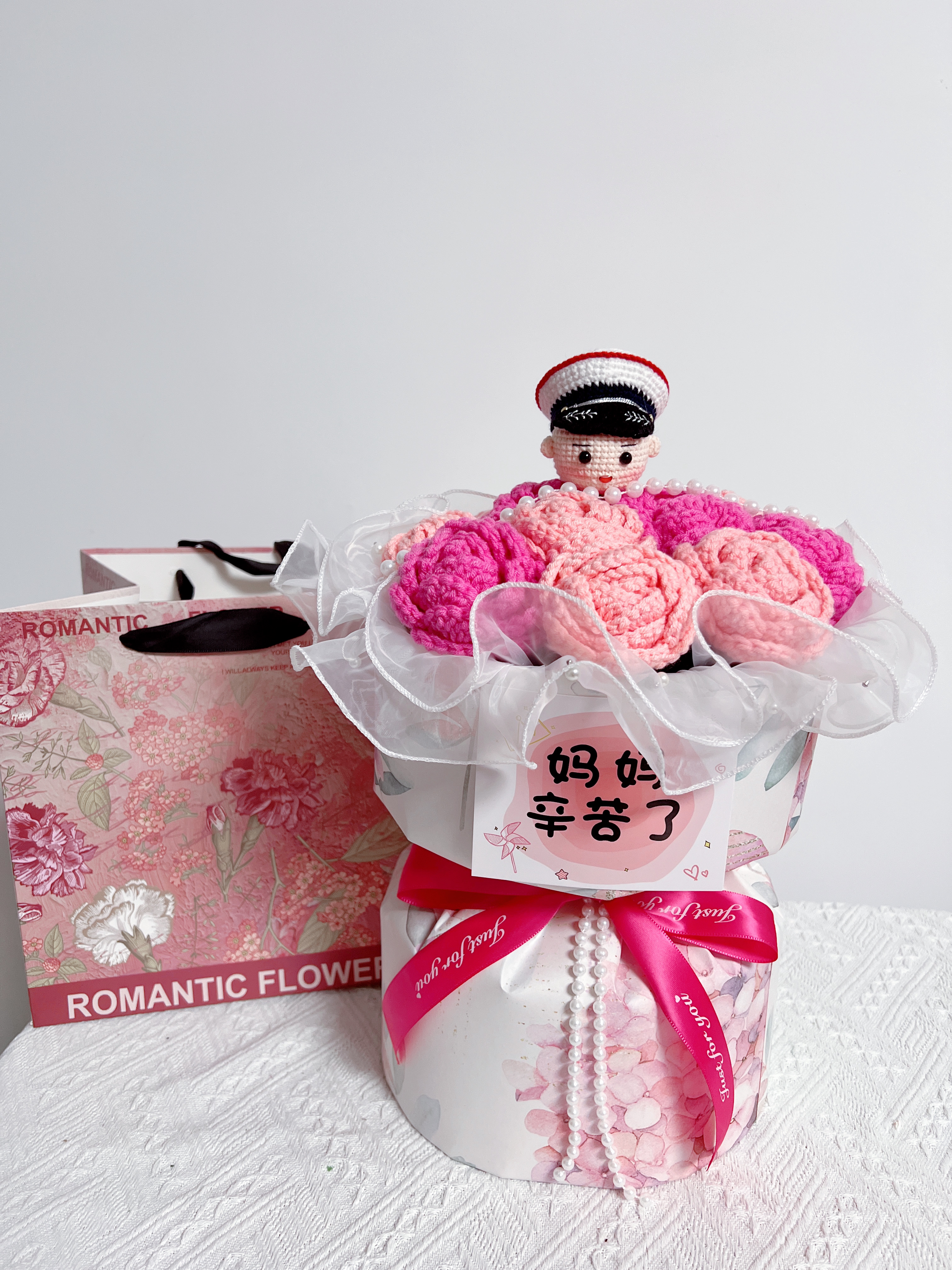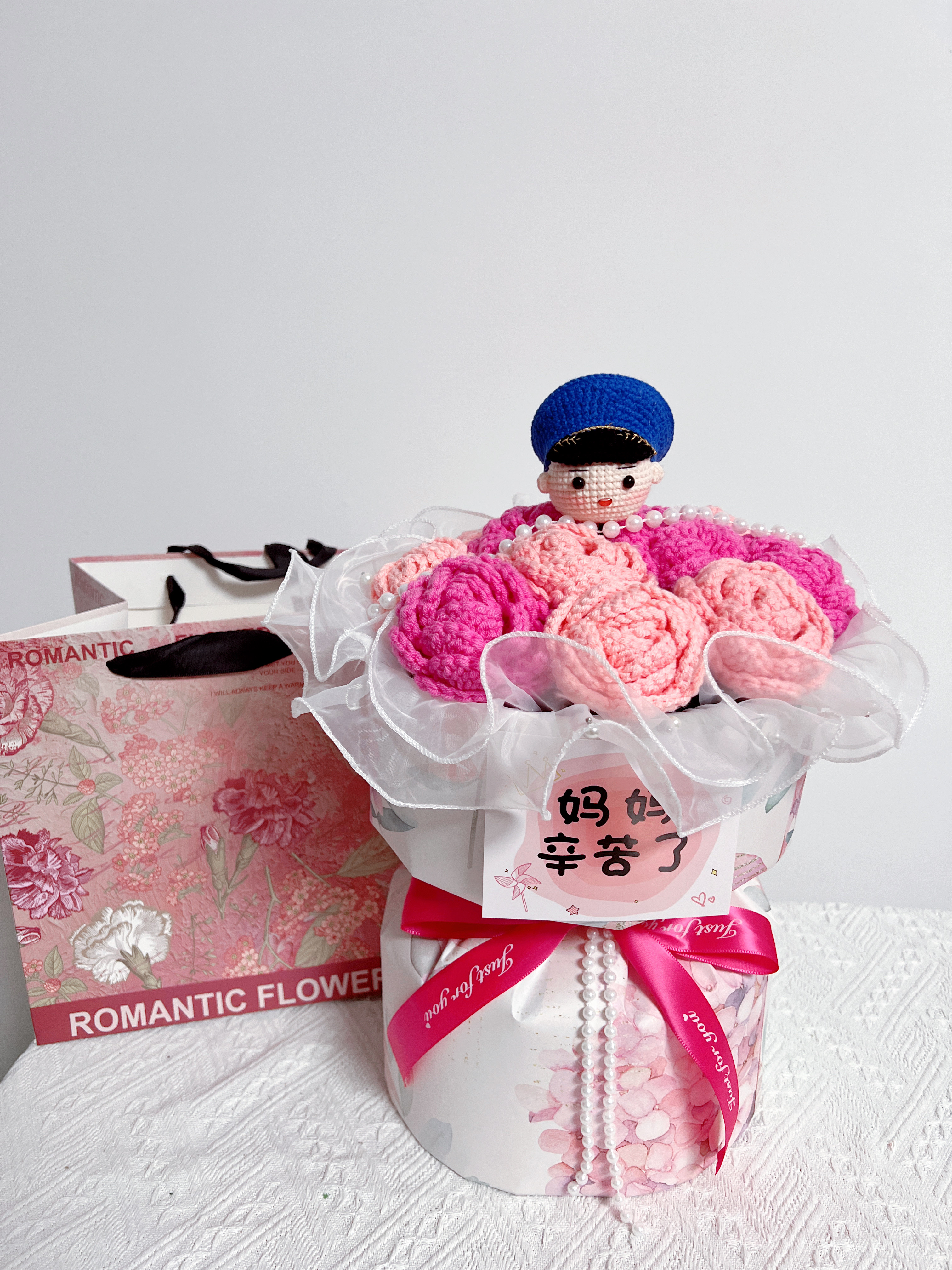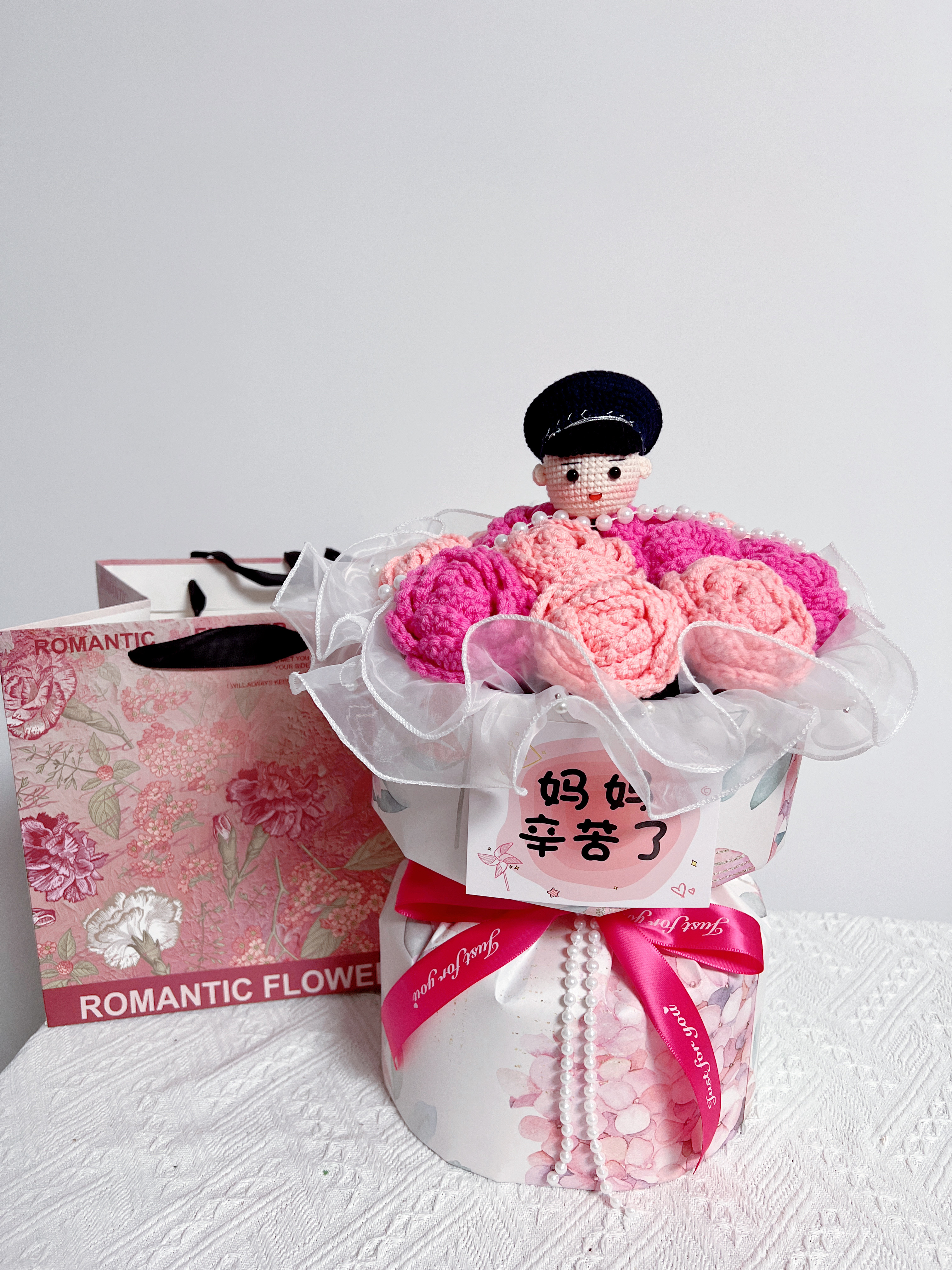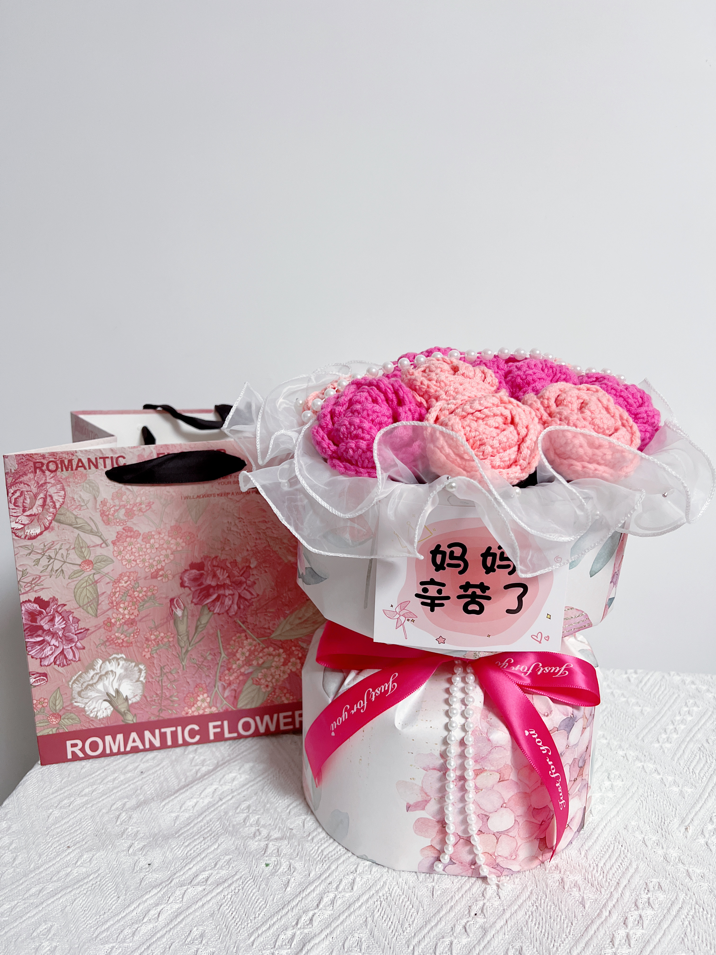 【专属DIY纯手工钩织11朵小玫瑰花束】纯手工钩织母亲节送礼小香风花束(手工产品不支持退换)LQQ