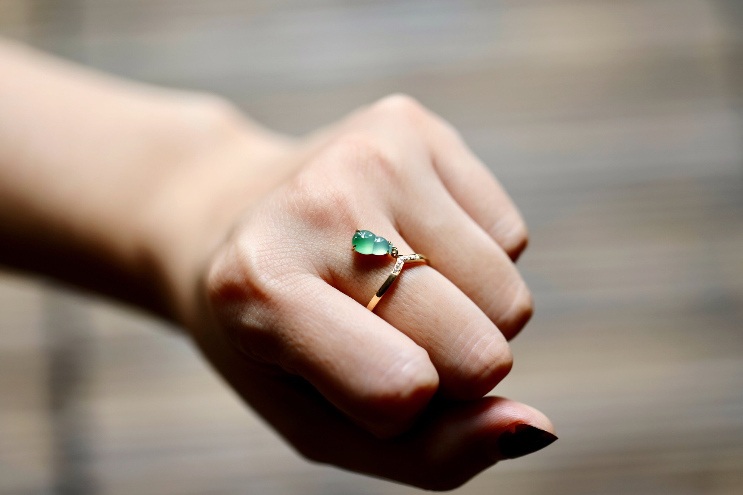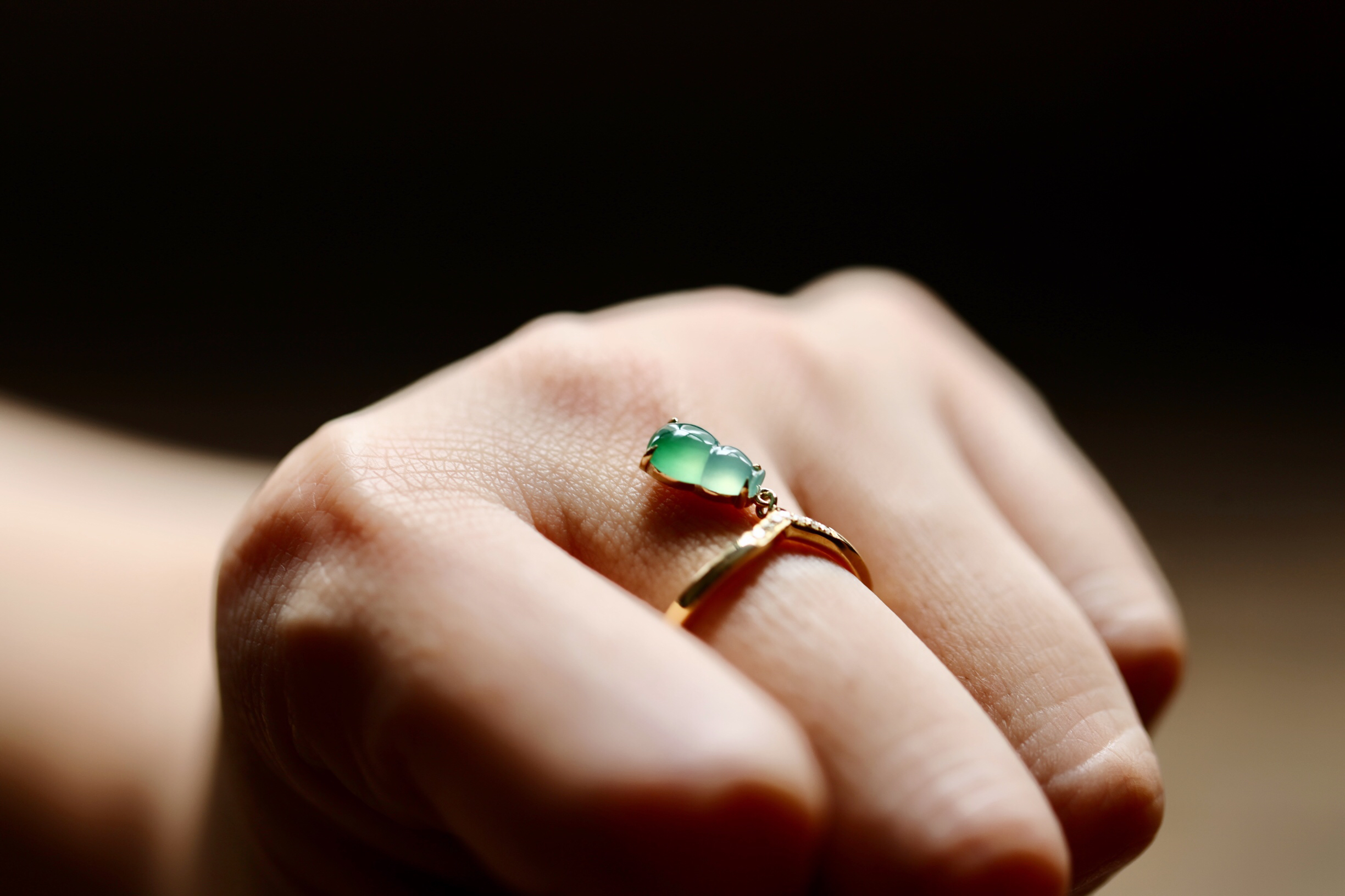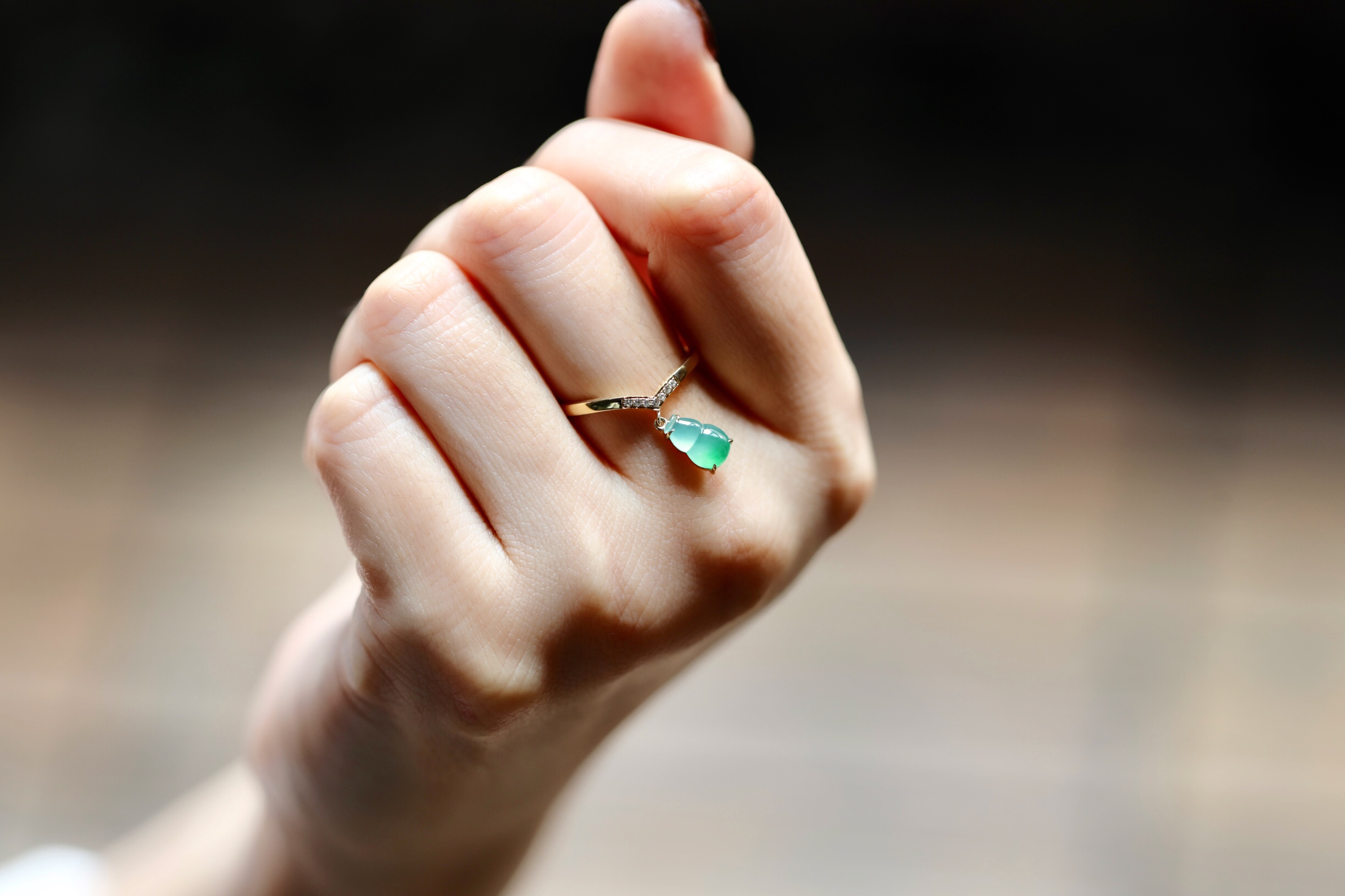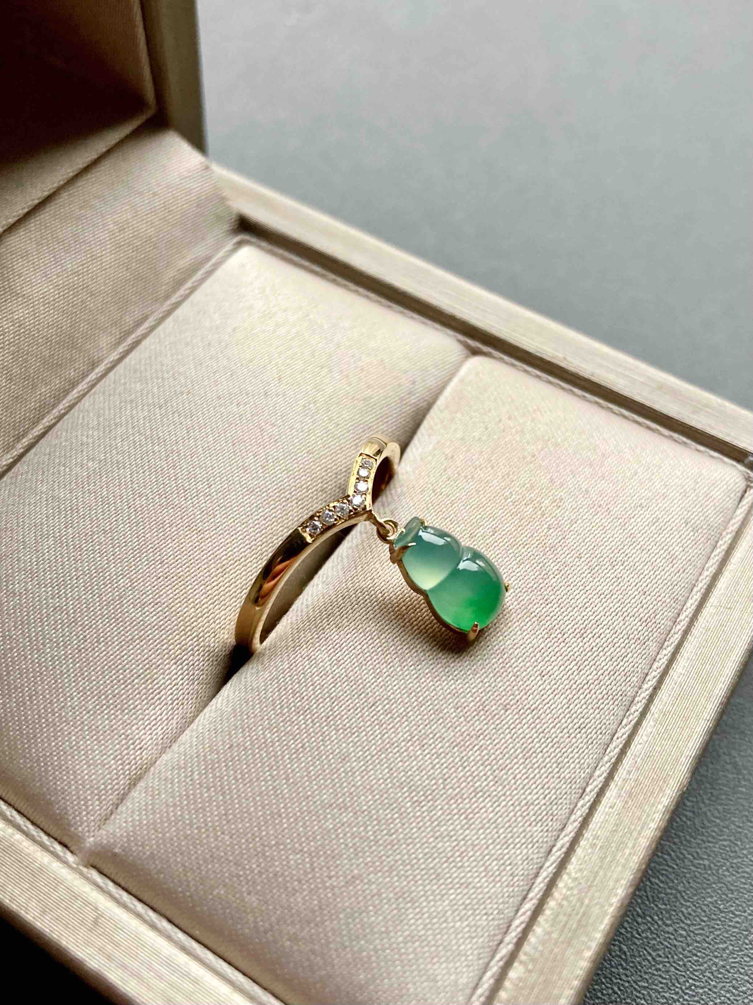 禄来家的爆款,就一件,上哪去找这么灵的高冰种阳绿翡翠葫芦戒指,种水晶莹剔透,荧光四射,阳绿艳丽,18k黄金钻石镶嵌,风水戒指,葫芦是可以活动的,上手摇曳多姿,只要小四价位,卖完了可别再问我有没有