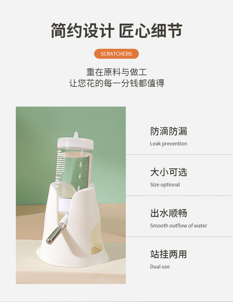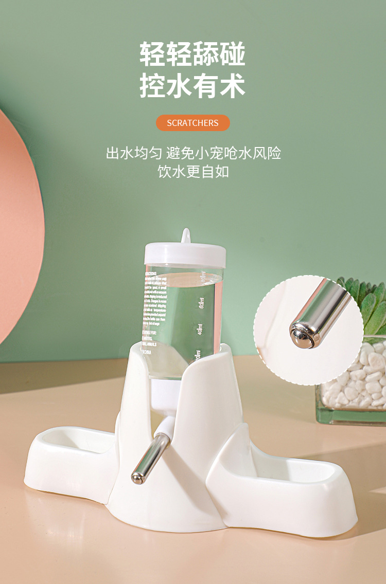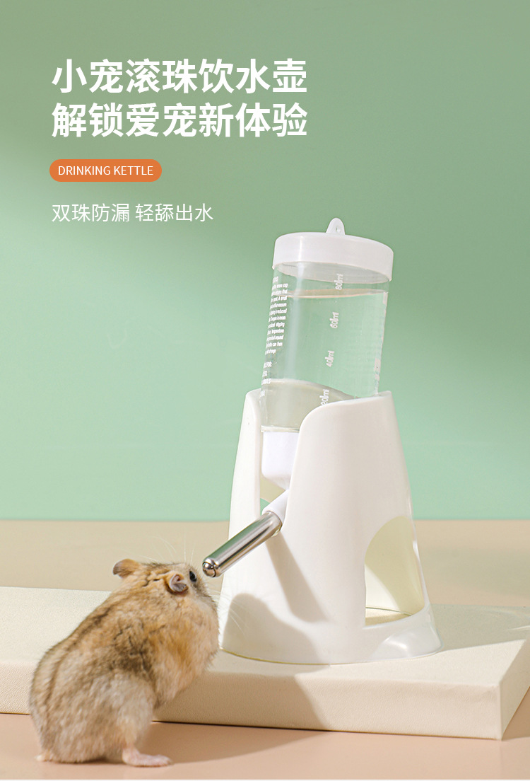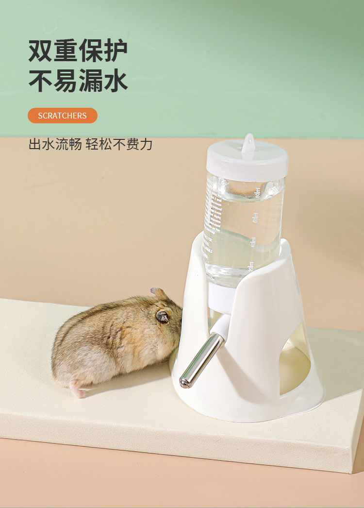 严选【水壶底座带水樽白色80ml】仓鼠饮水器自动饮水机滚珠防漏喂水立式水瓶1个