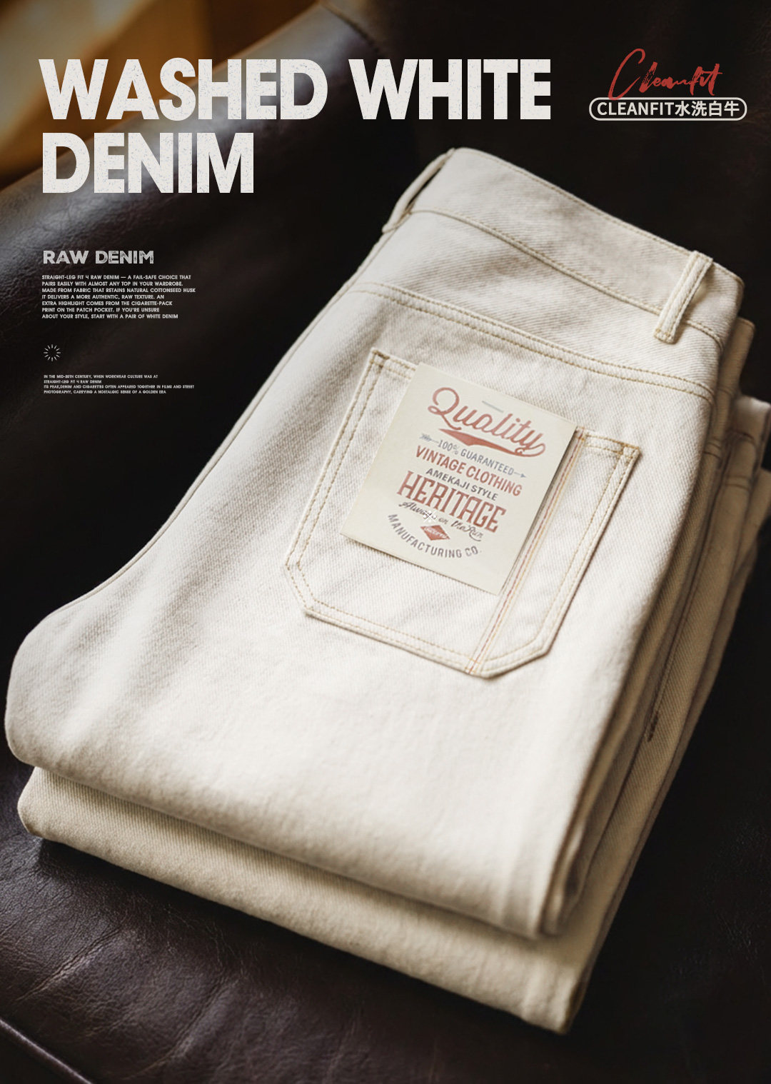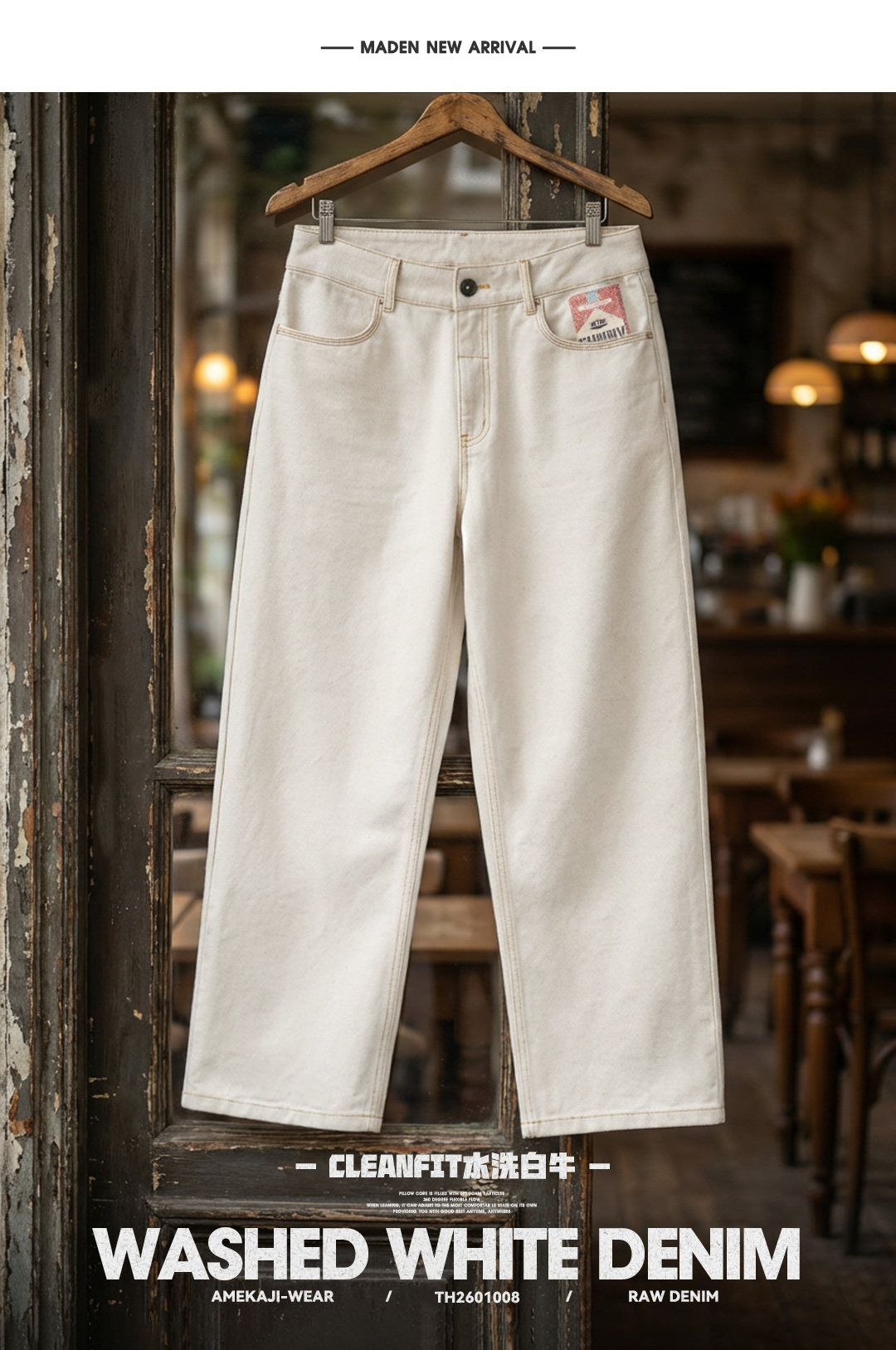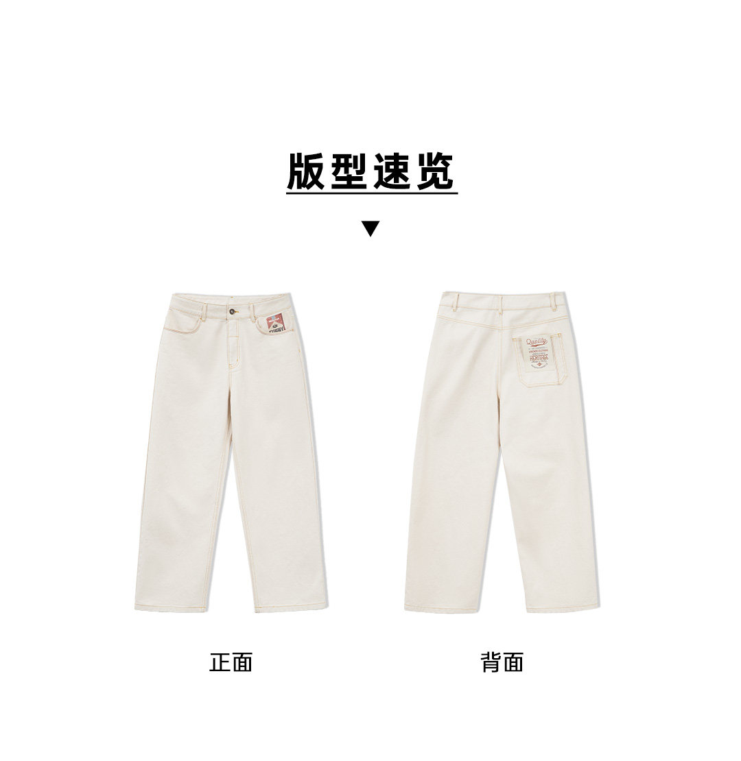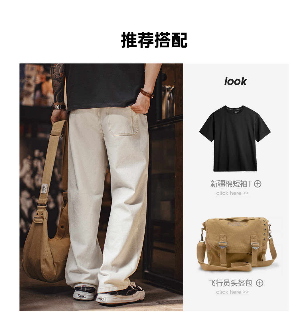 马登工装美式复古白色牛仔裤直筒cleanfit阔腿垂感宽松休闲裤男春