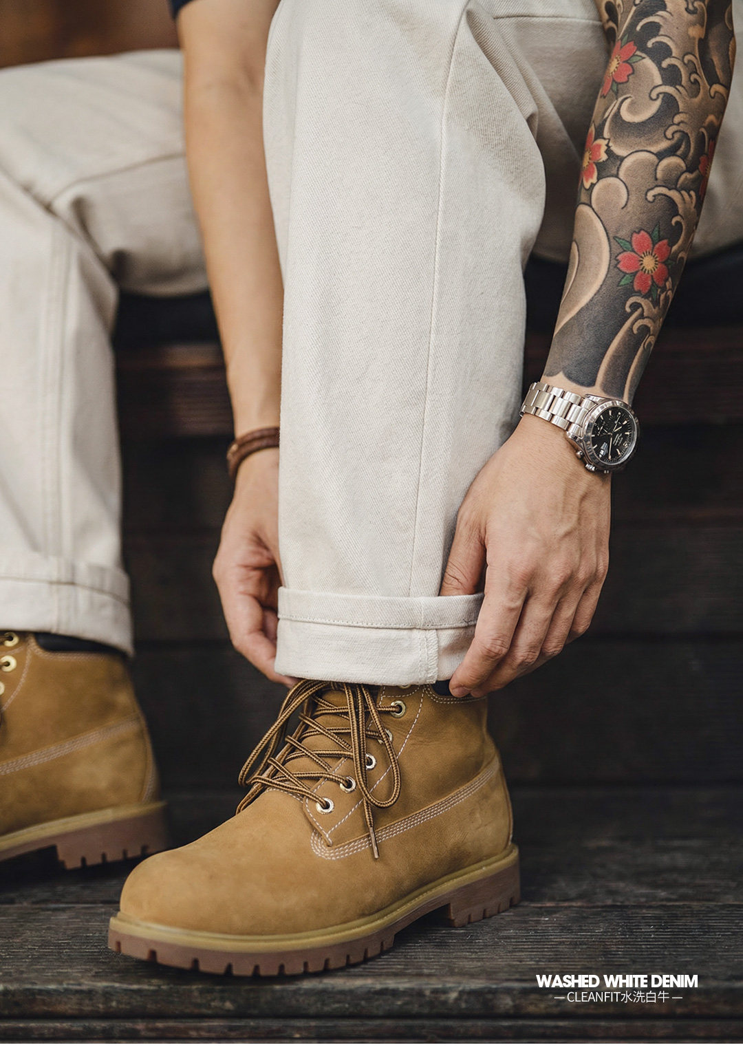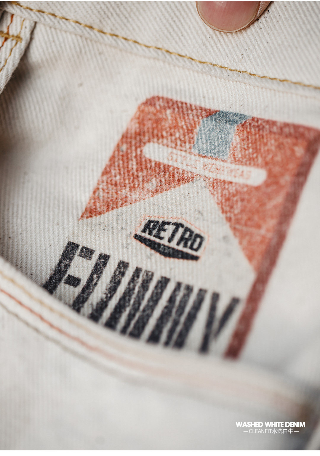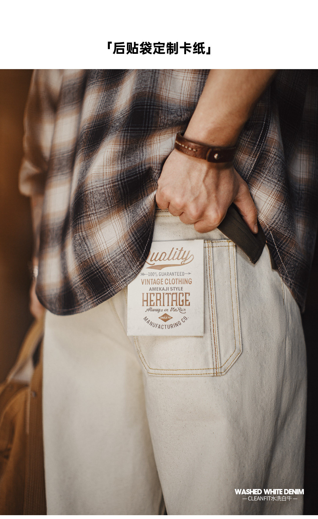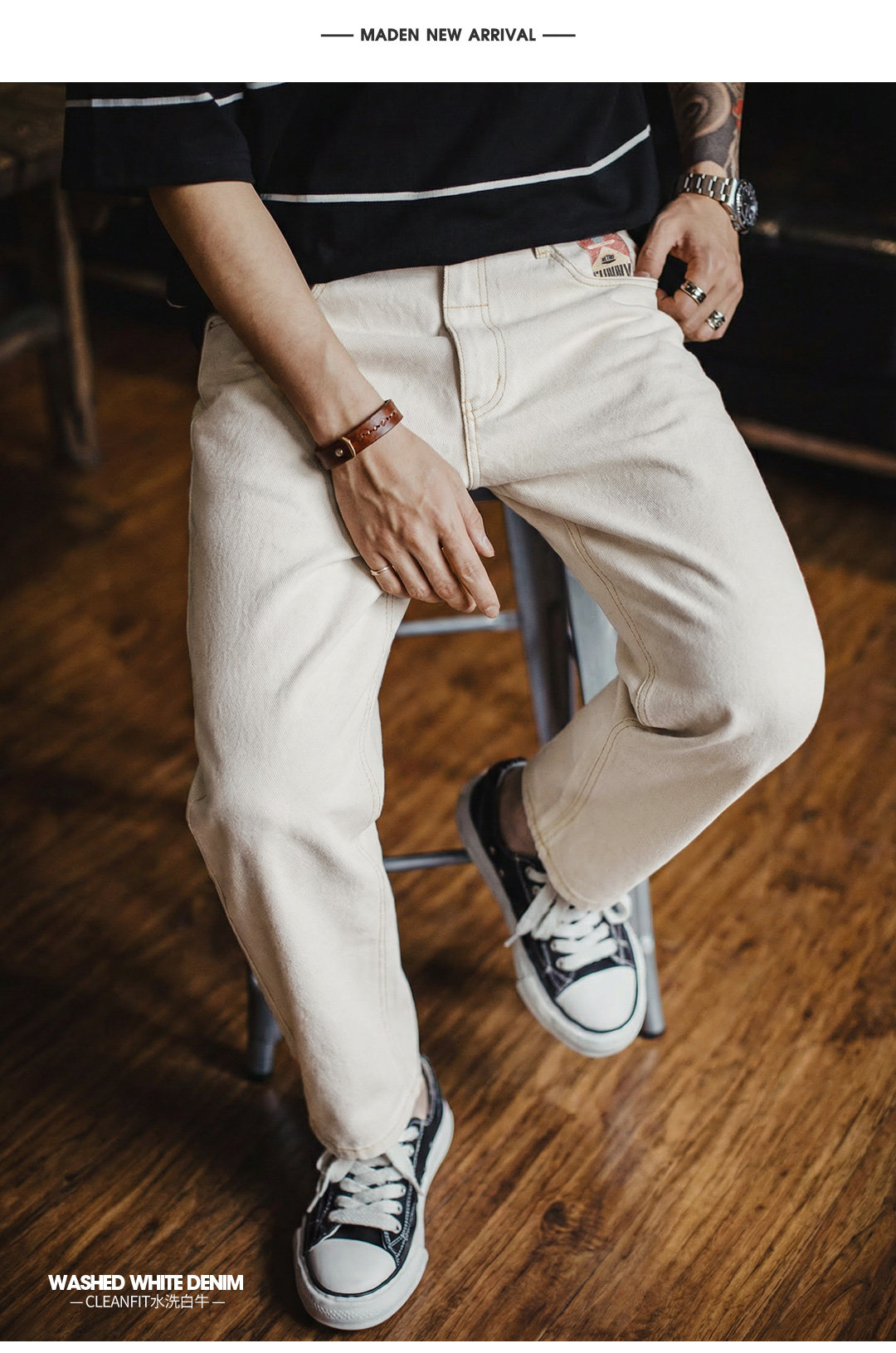 马登工装美式复古白色牛仔裤直筒cleanfit阔腿垂感宽松休闲裤男春