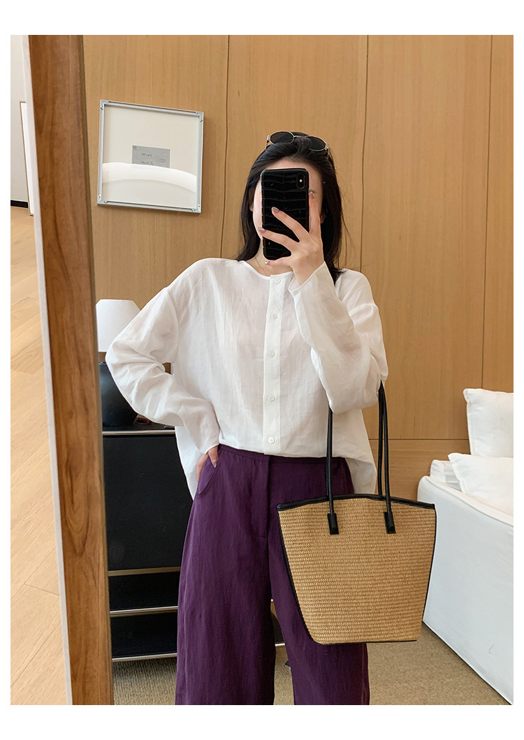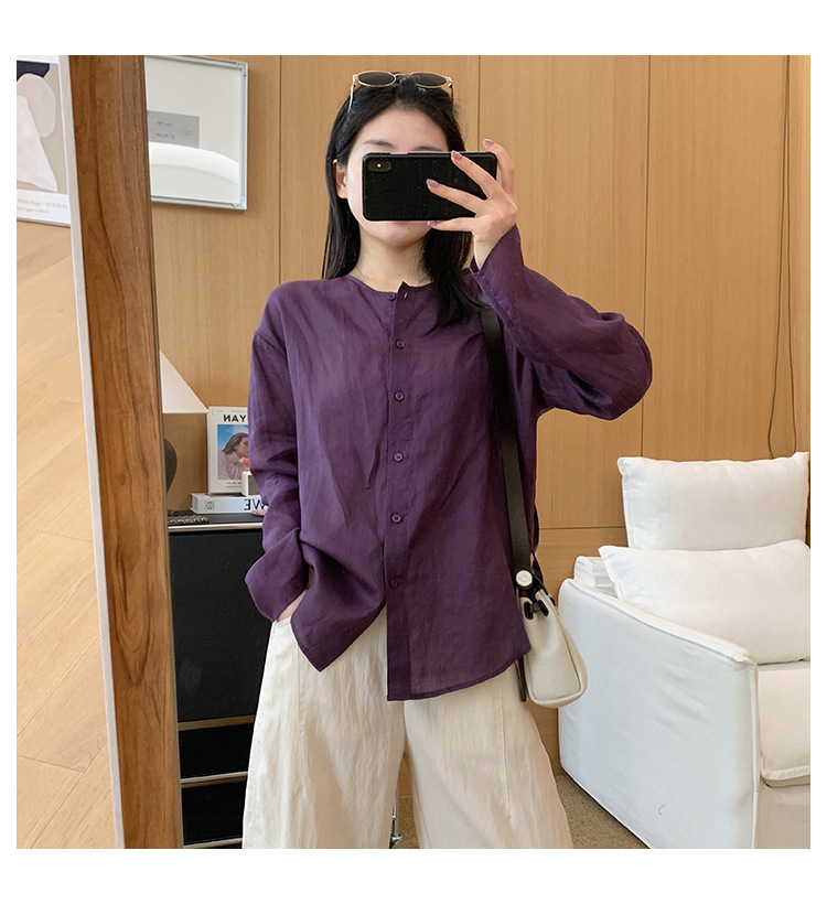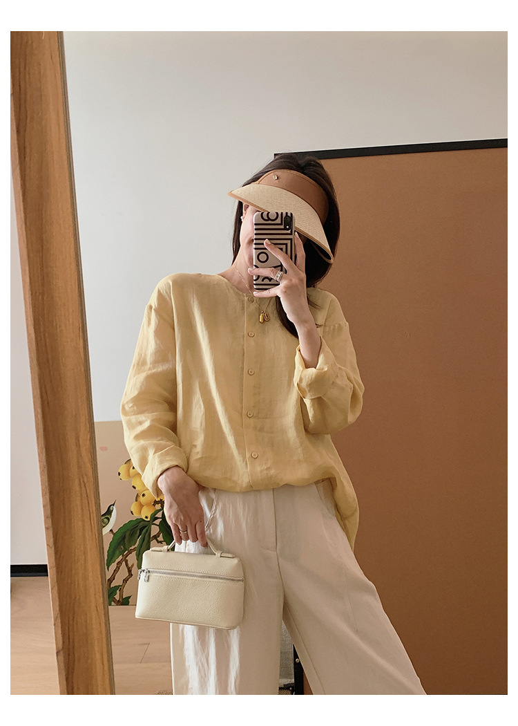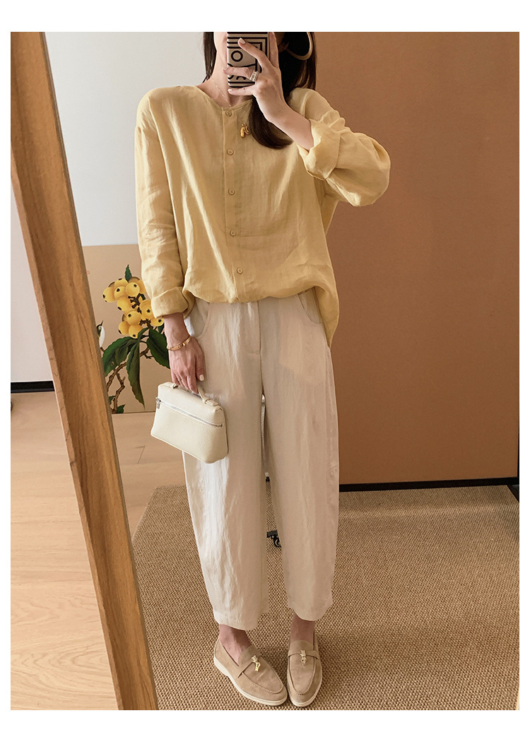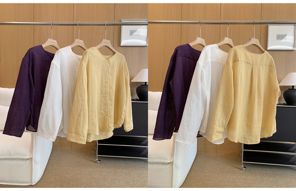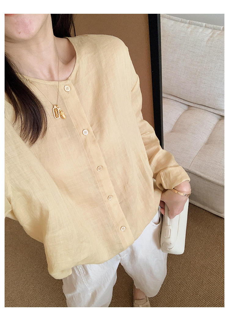 夏日轻氧感天䔳chun苎麻贝壳扣圆领衬衫!#