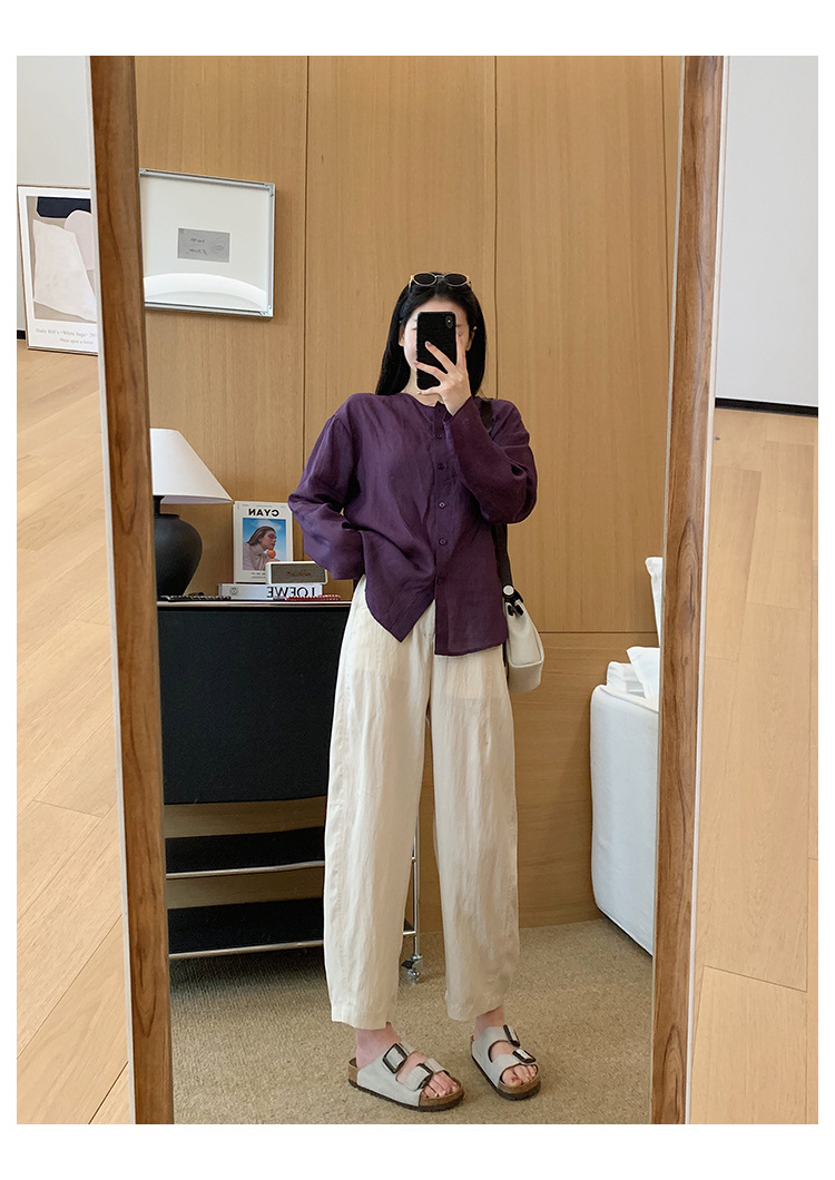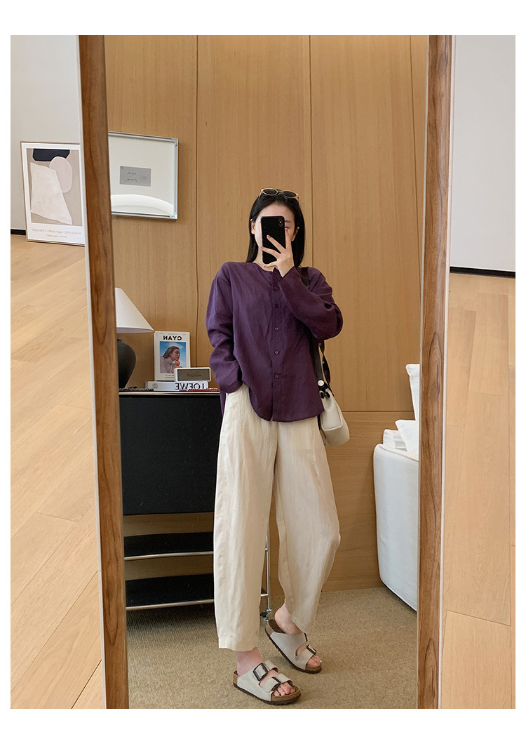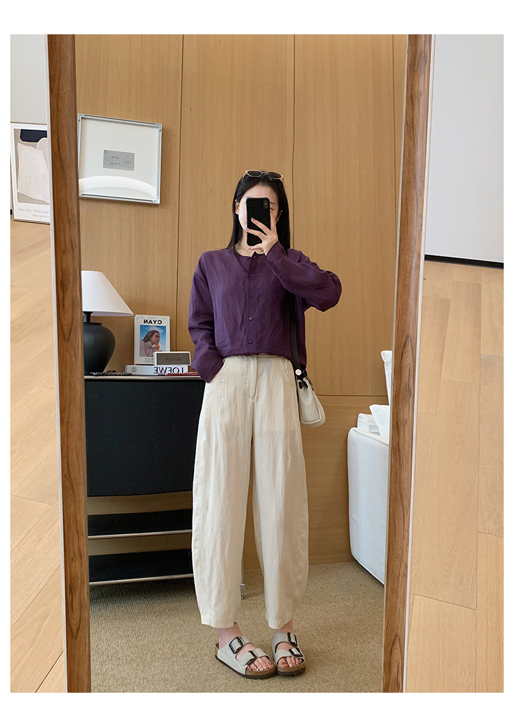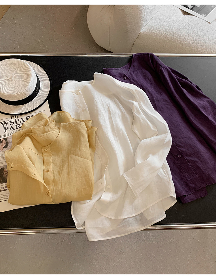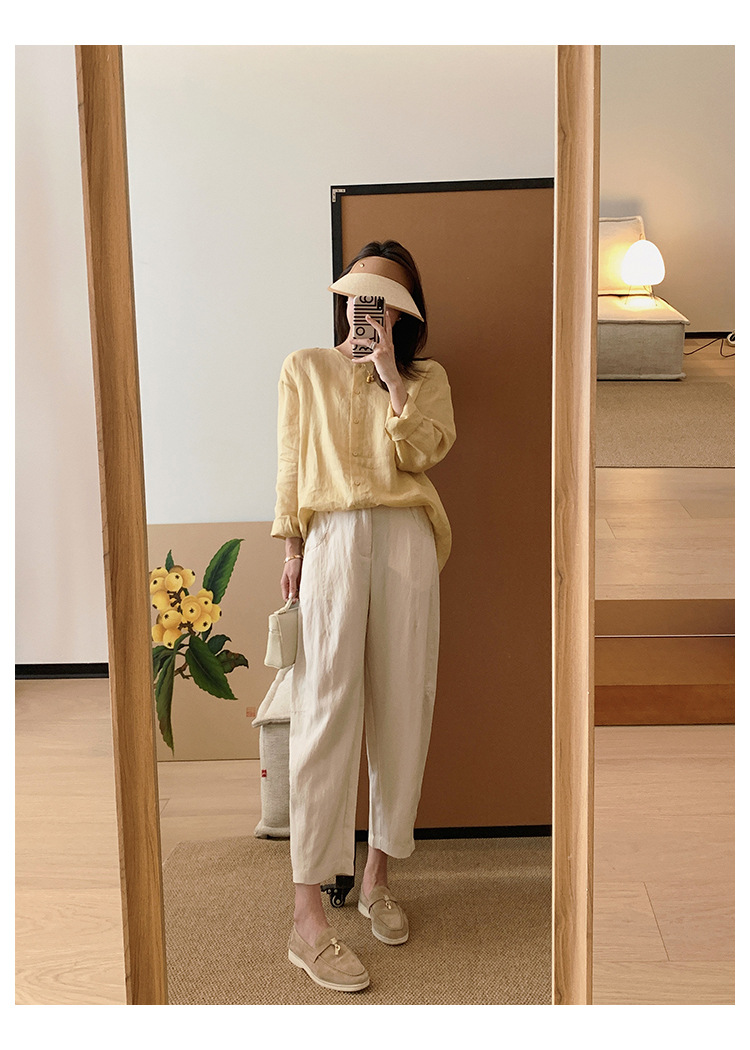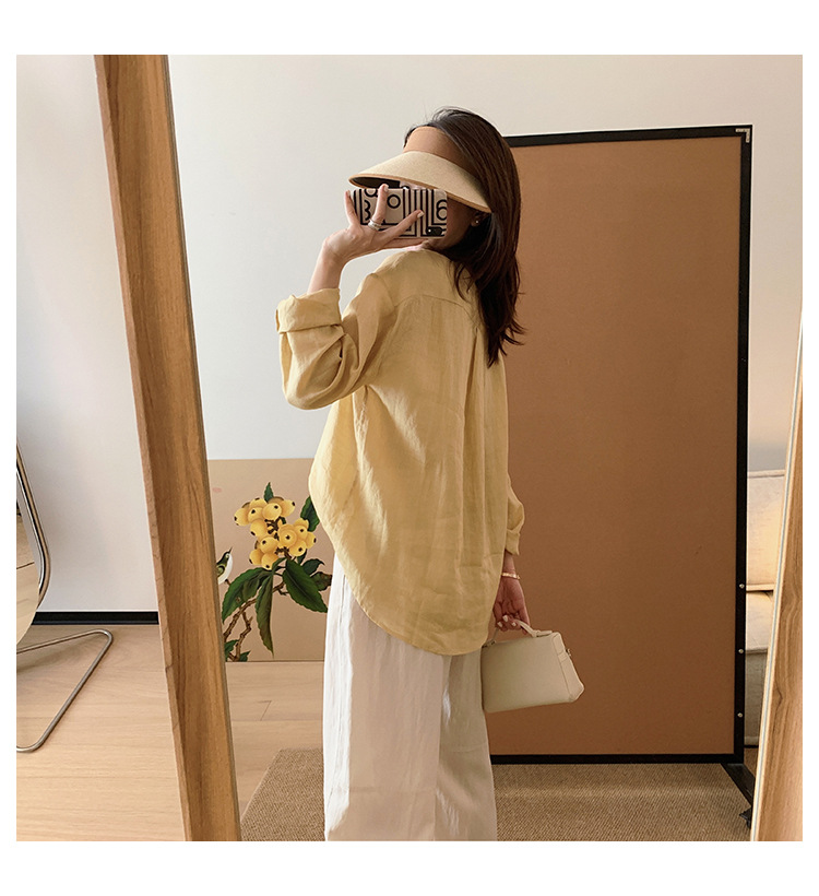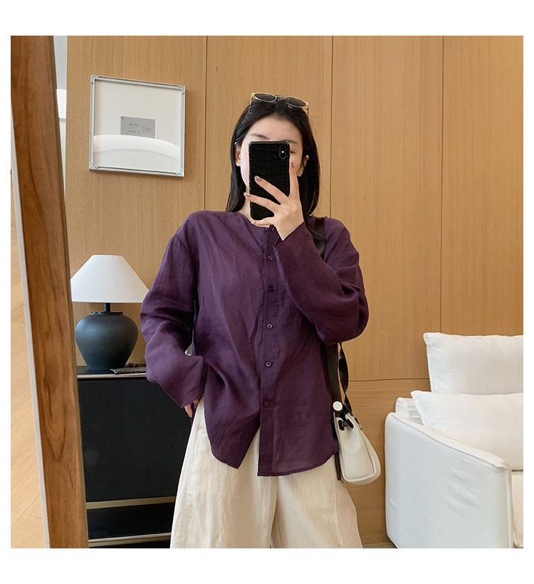 夏日轻氧感天䔳chun苎麻贝壳扣圆领衬衫!#