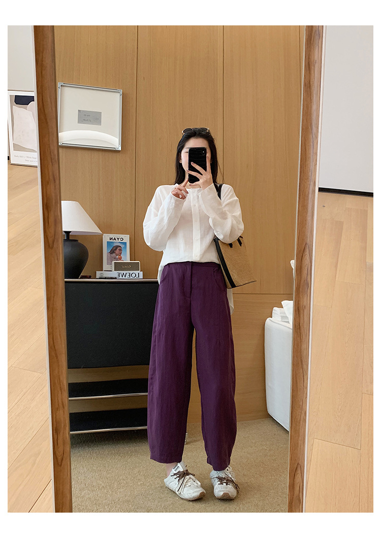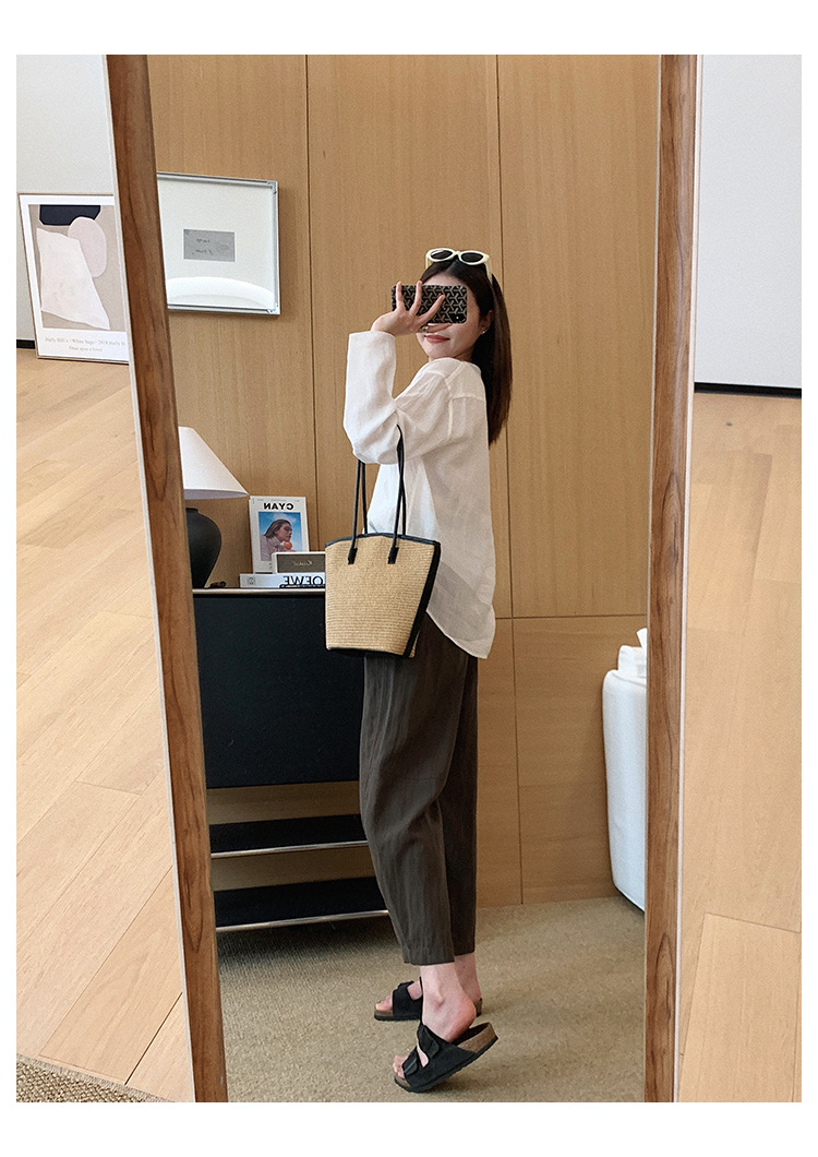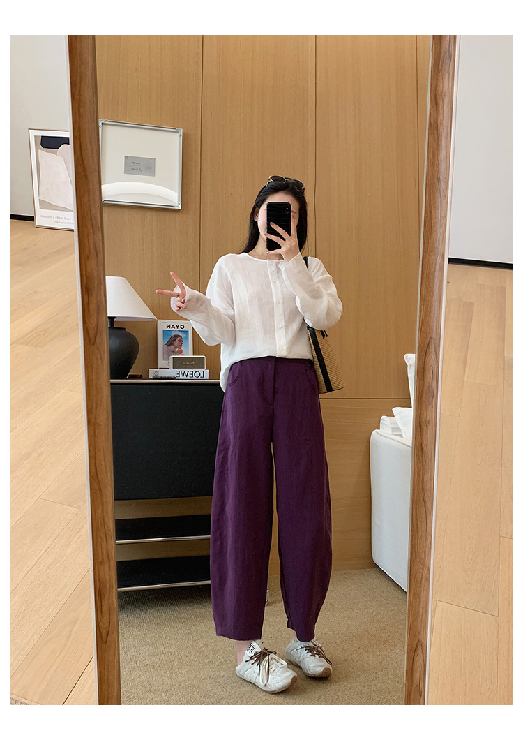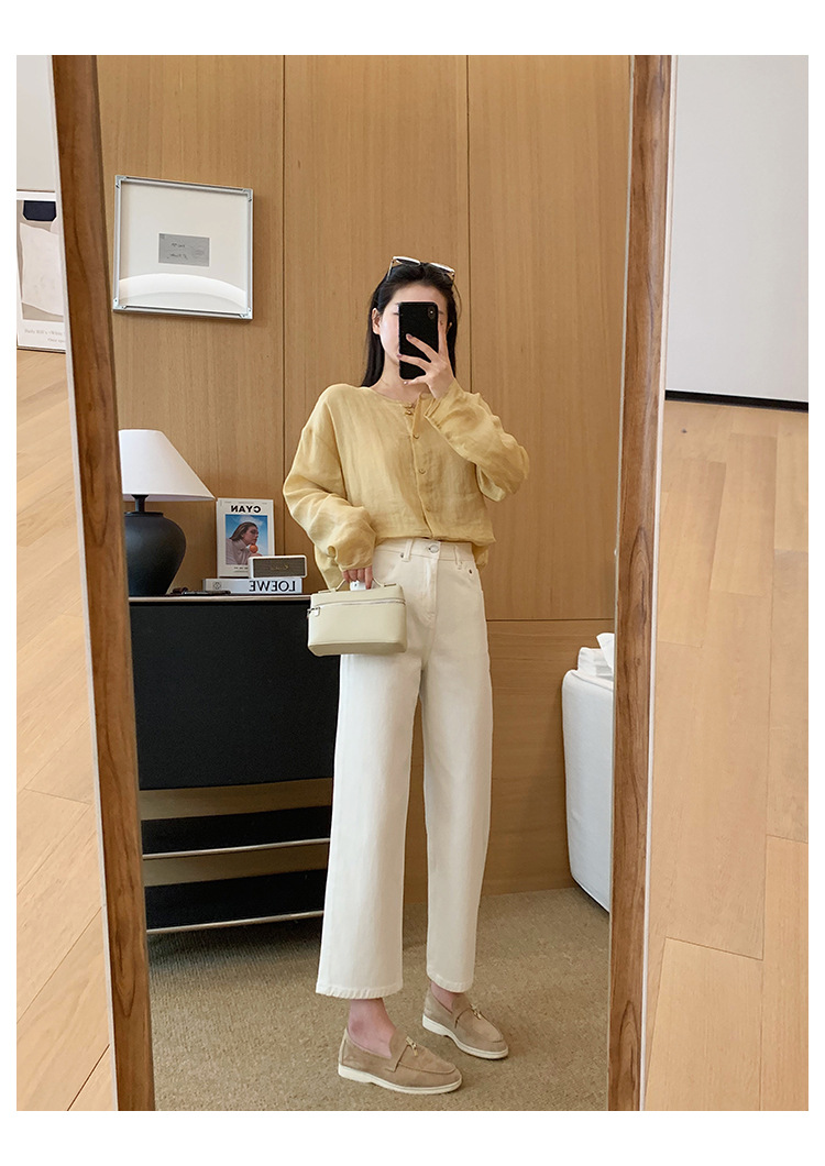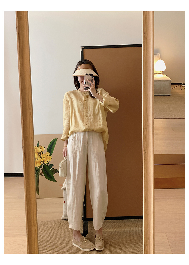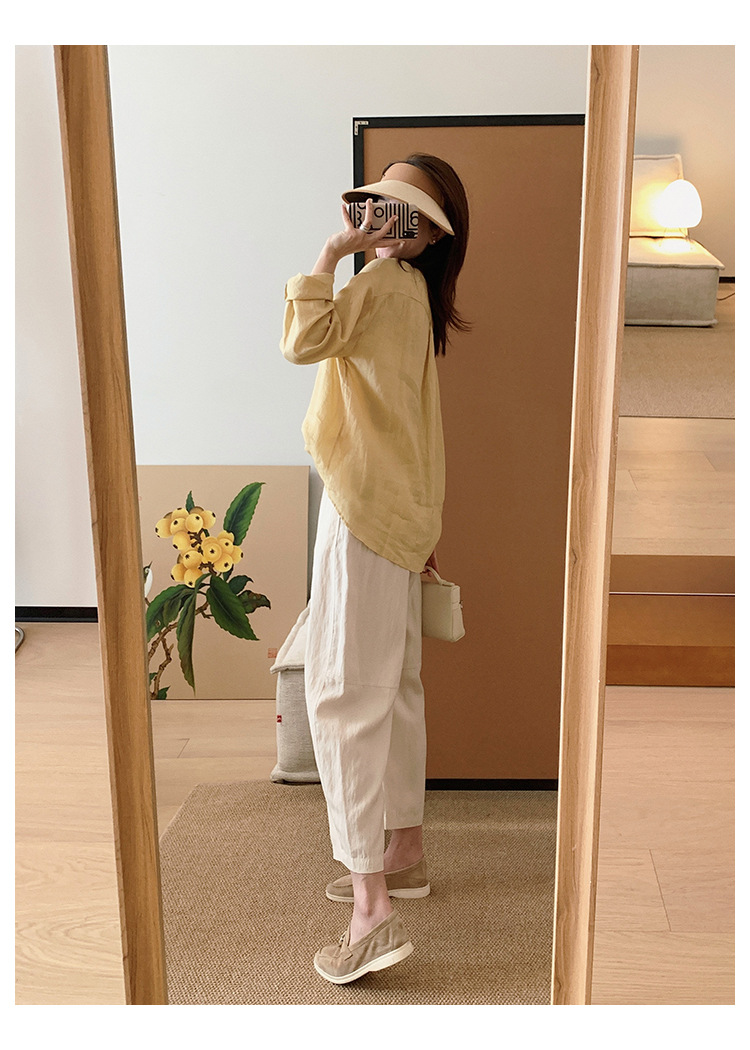 夏日轻氧感天䔳chun苎麻贝壳扣圆领衬衫!#
