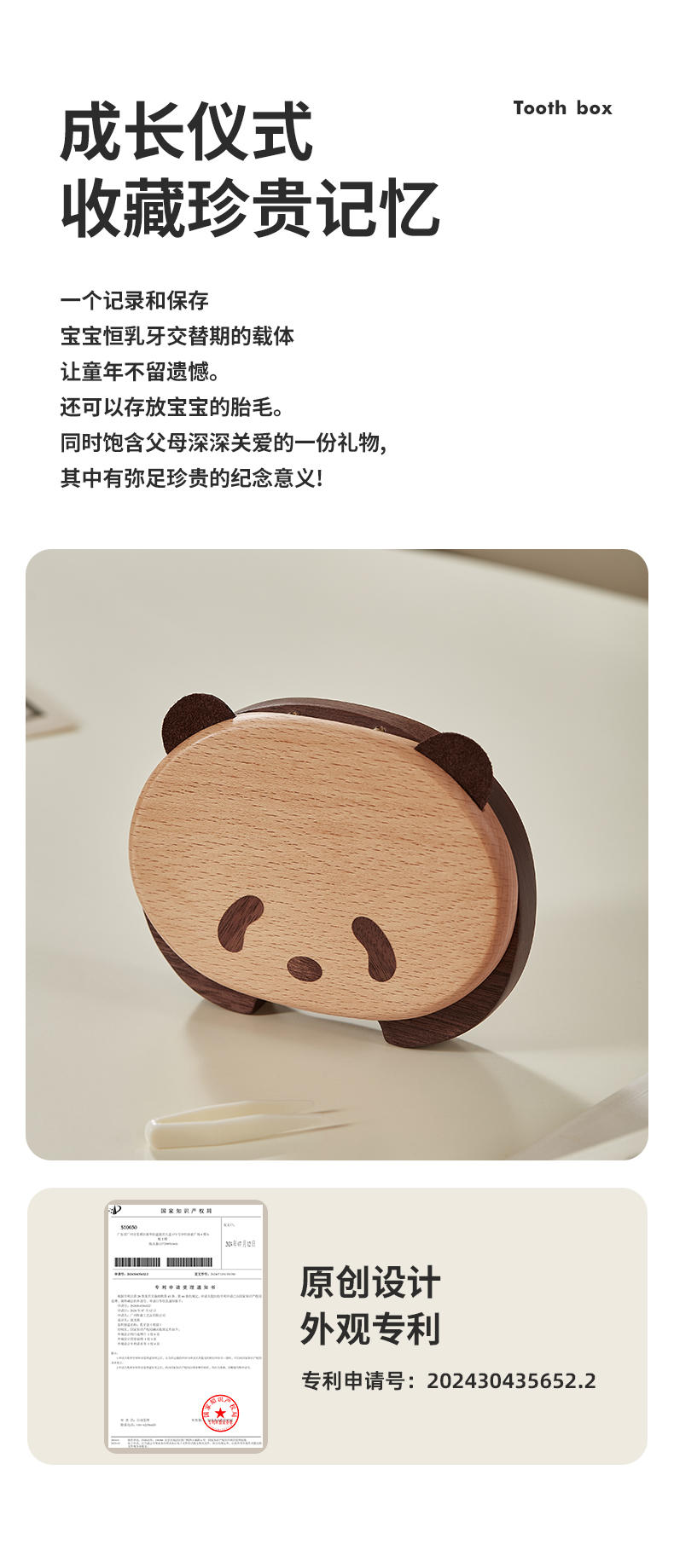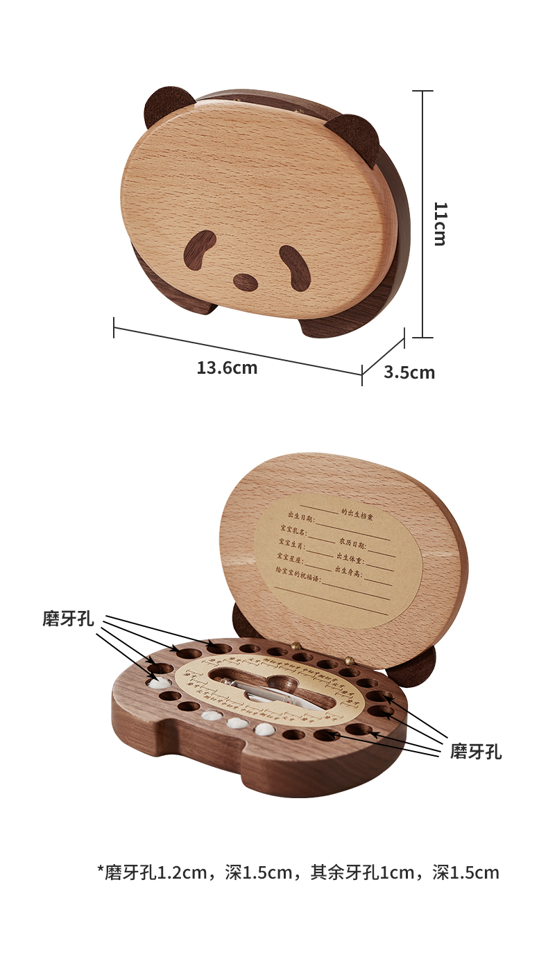 初心| 熊猫乳牙盒-胡桃木+榉木