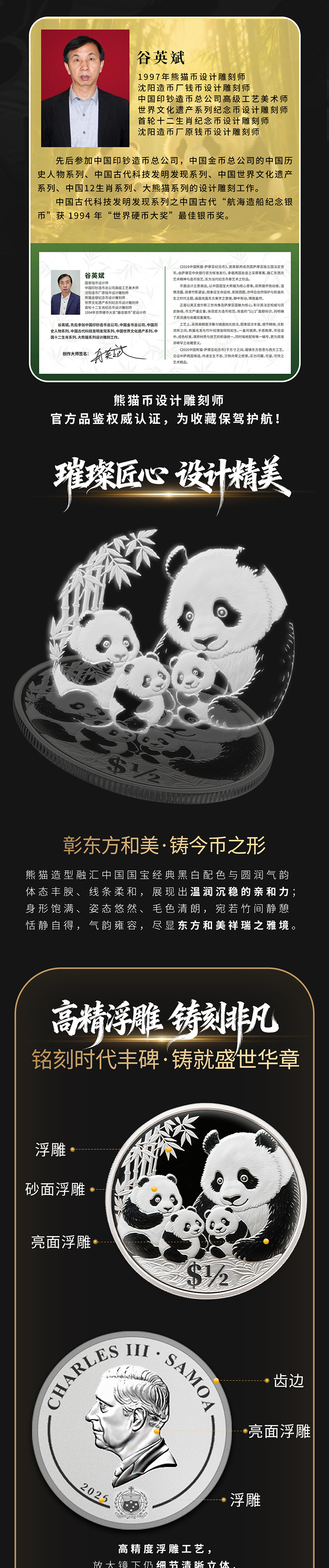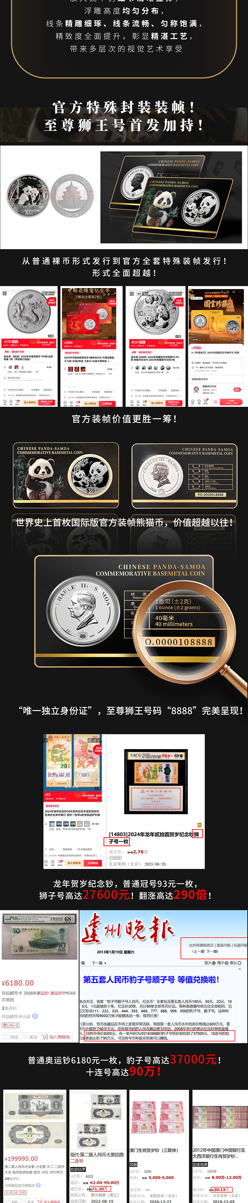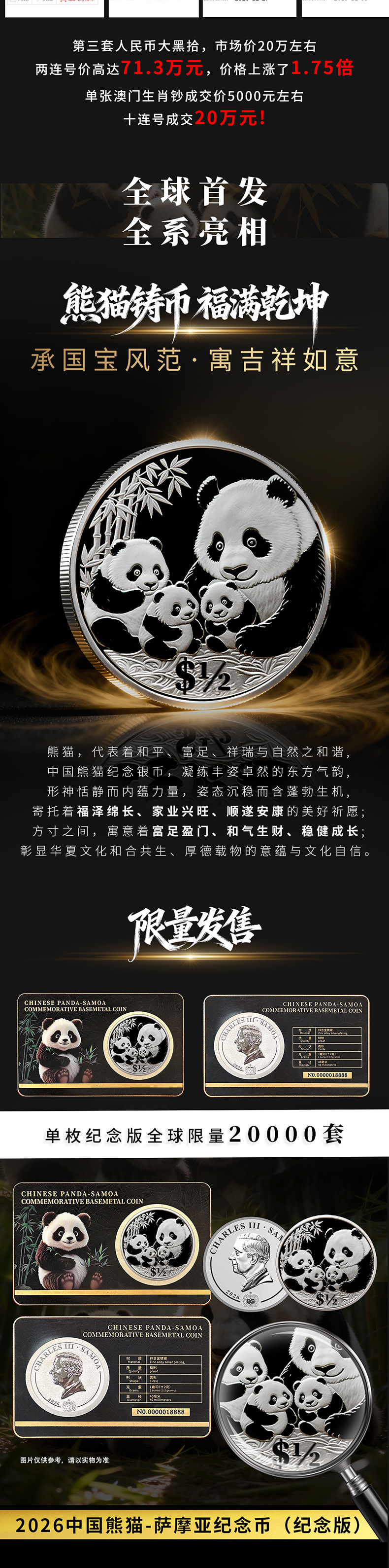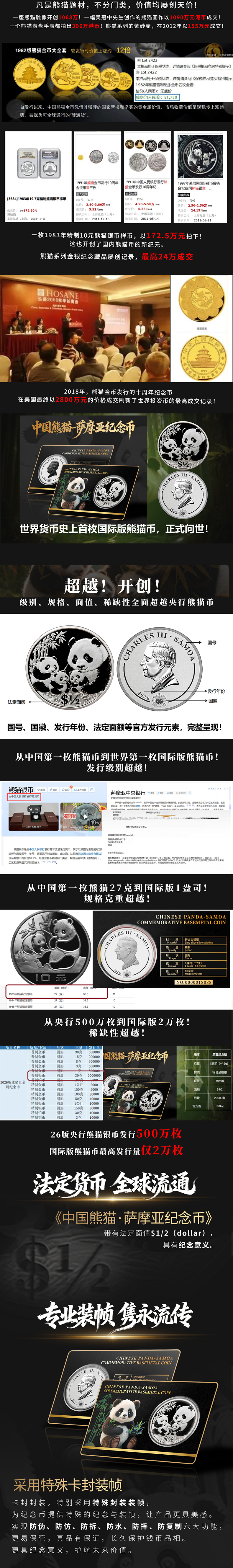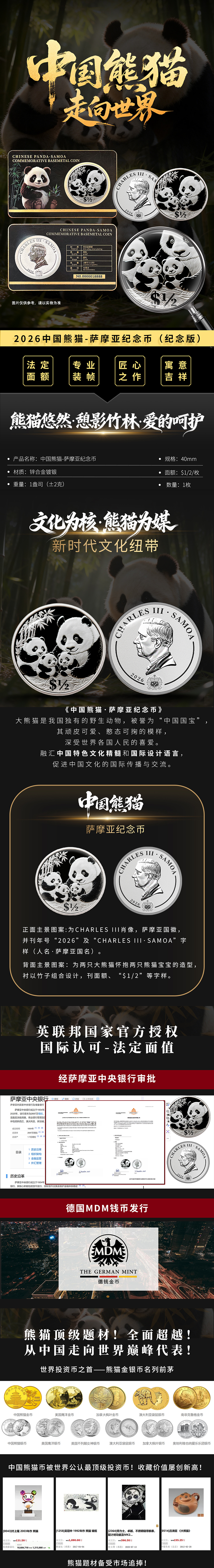 2026国际版熊猫币 英联邦官方授权 德国MDM钱币发行 中国熊猫·萨摩亚纪念币(纪念版)采用特殊卡封装帧