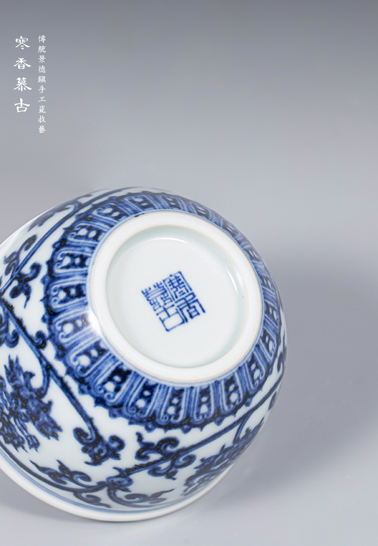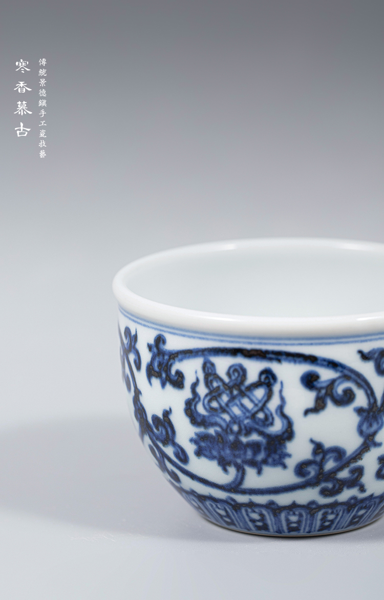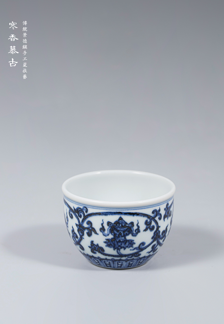 寒香慕古明青花八宝缸杯