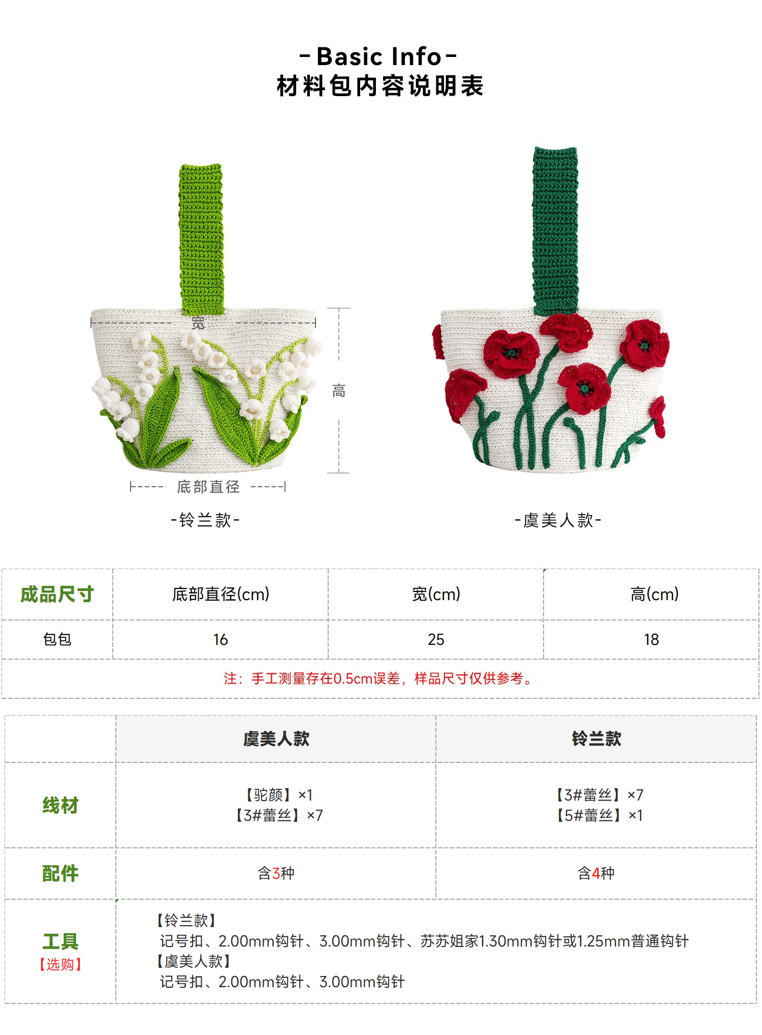 苏苏姐家花卉绮韵立体花水桶包手工diy编织钩针毛线团包包材料包