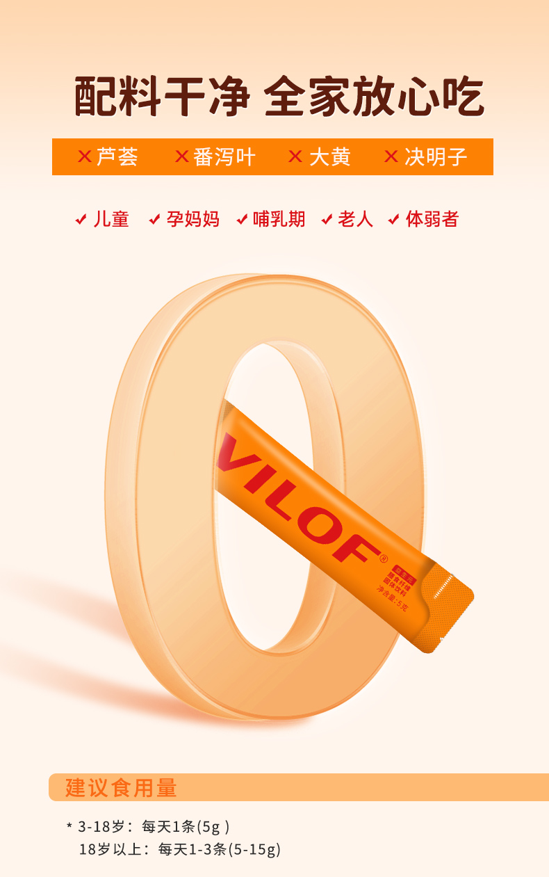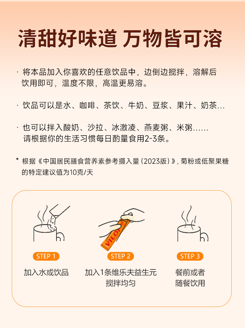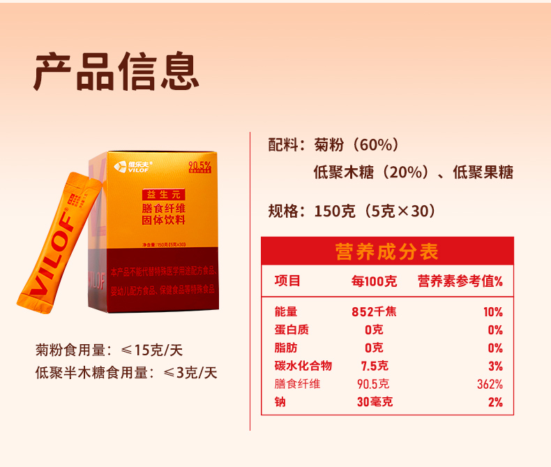 【经典小黄盒】vilof维乐夫益生元型膳食纤维 菊粉 低聚果糖 低聚木糖 5g*30条/盒
