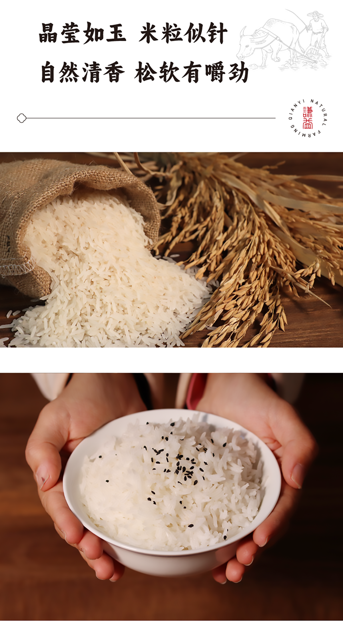 【2025年秋收】谦益香畴玉针香5斤 谦益虚心谷农场 山地冷泉灌溉 自然农耕 米粒似针 晶莹如玉 米香浓厚“超泰米”