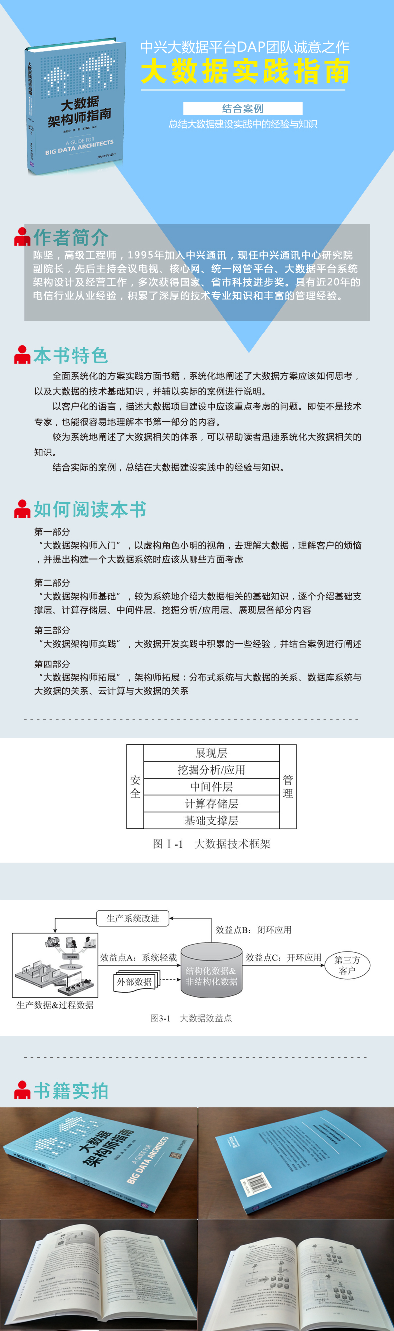 中兴大数据平台DAP团队诚意之作 大数据实践指南 结合案例 总结大数据建设实践中的经验与知识 |
