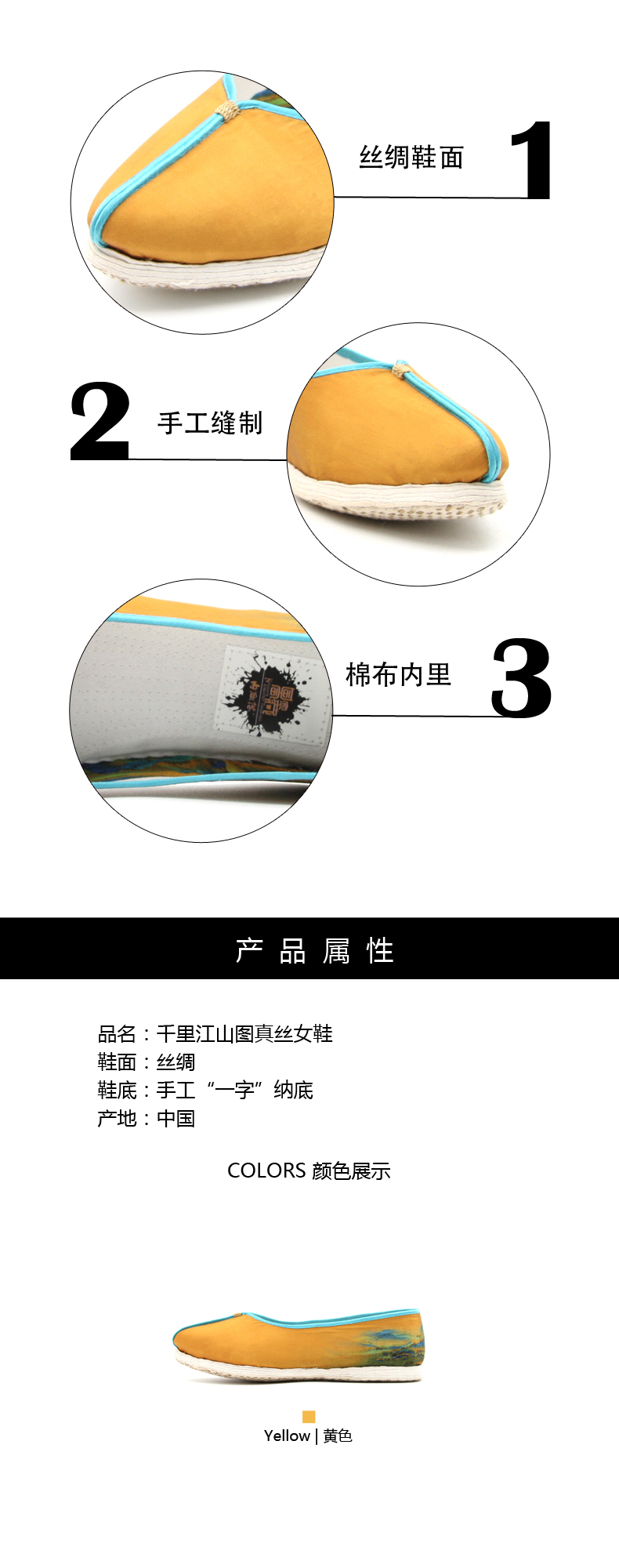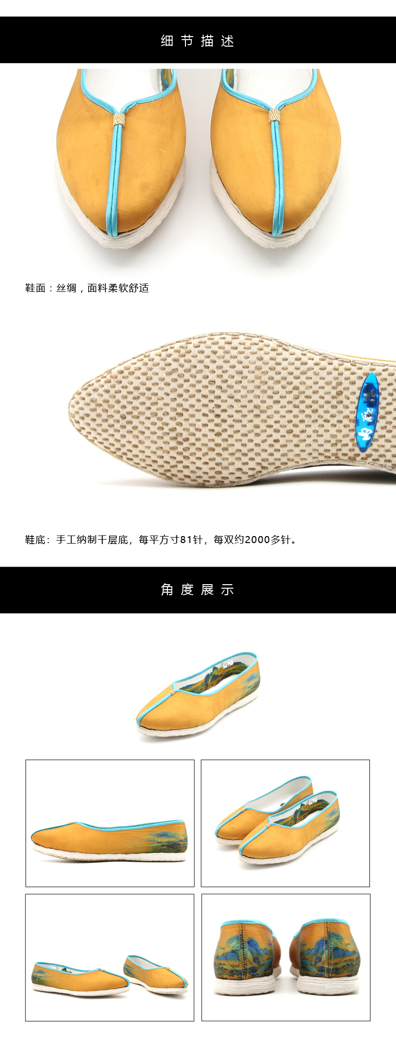 内联升女鞋手工单鞋千层底【国家宝藏】系列千里江山图真丝淑女鞋GB8293
