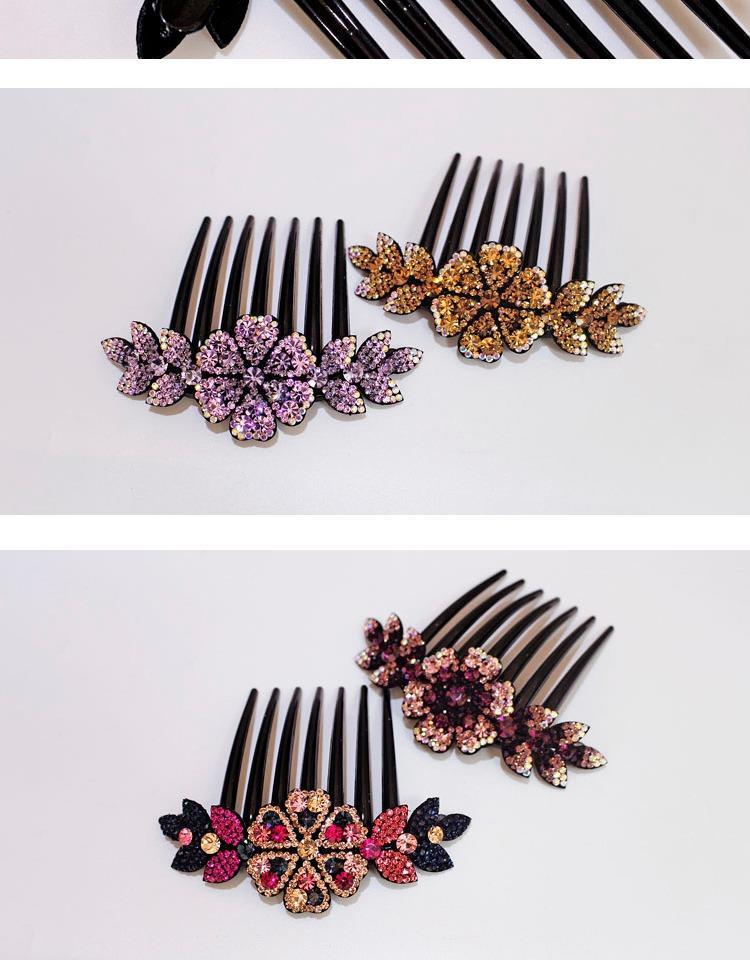 插梳盘发器韩版发饰品水钻花朵发梳防滑发夹