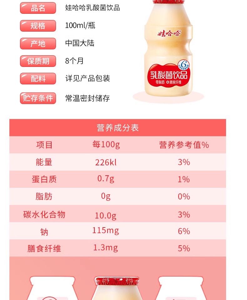 娃哈哈乳酸菌饮品100ml*5瓶