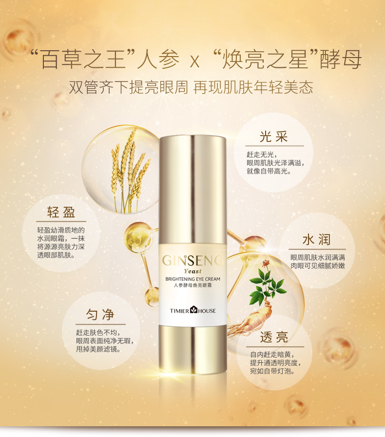 婷美小屋人参酵母焕亮眼霜女去淡化黑眼圈细纹眼袋15g