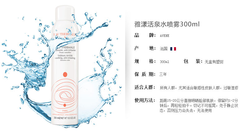 【香港直邮】法国雅漾Avene舒护活泉水喷雾 300ml