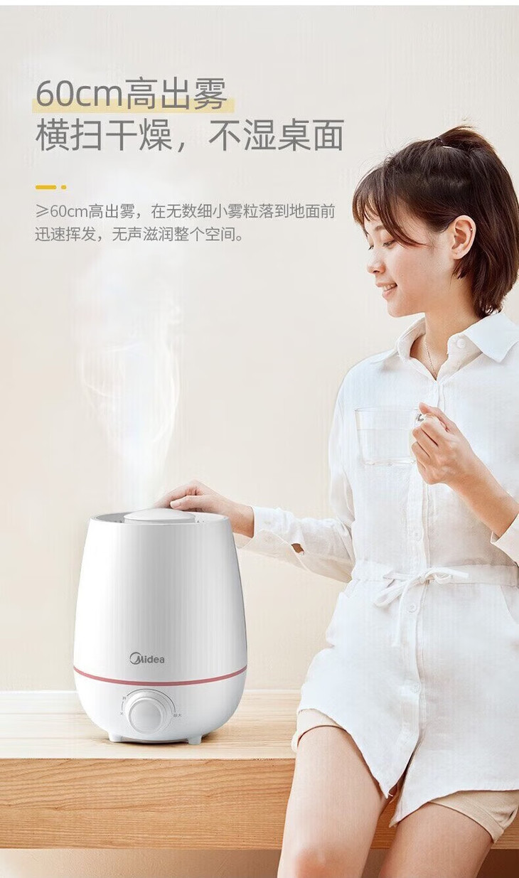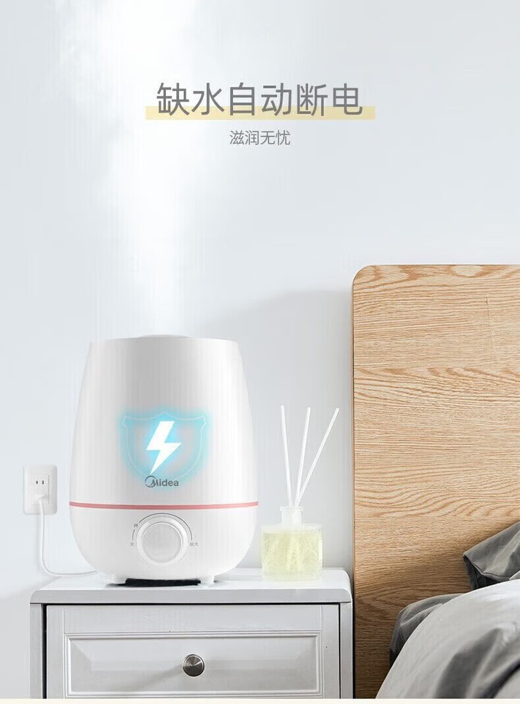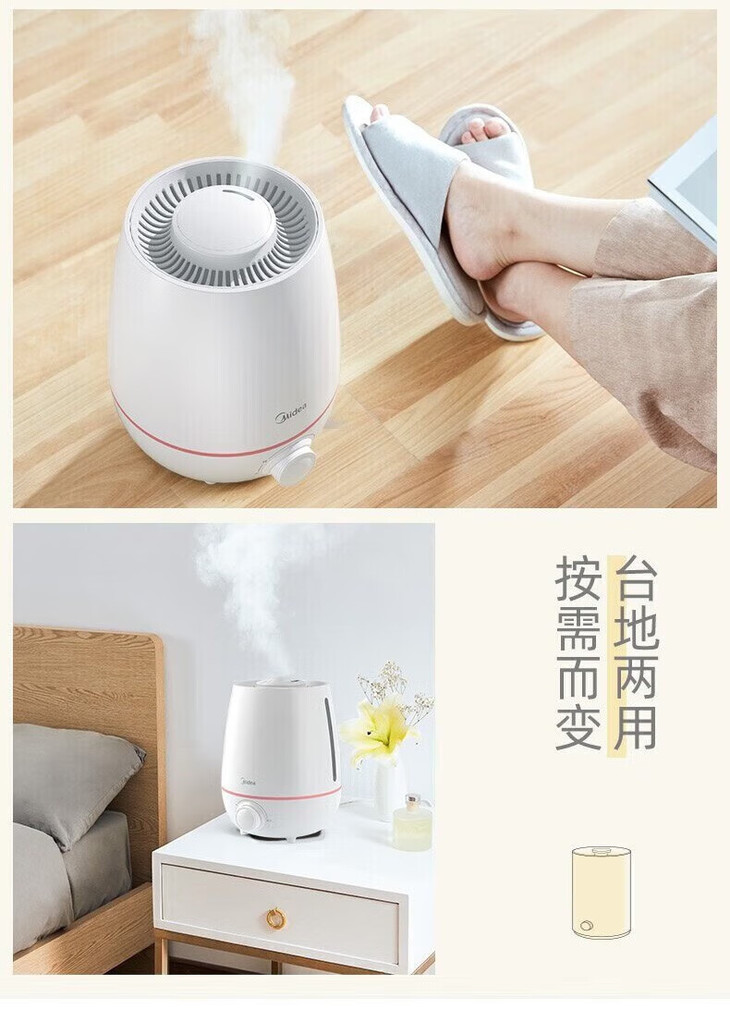 美的加湿器卧室家用4L大容量空气加湿迷你台式办公室桌面母婴儿童 室内加水 空气加湿器SC-3K40