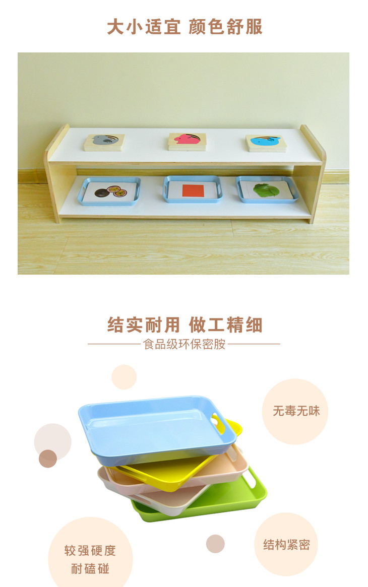 蒙氏生活区蒙台梭利博苑幼儿园教具托盘长方形塑料大中小号多色