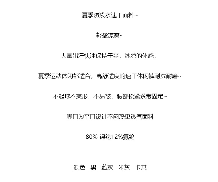 【zm1】男子防泼水弹性速干休闲直筒梭织轻薄长裤!!