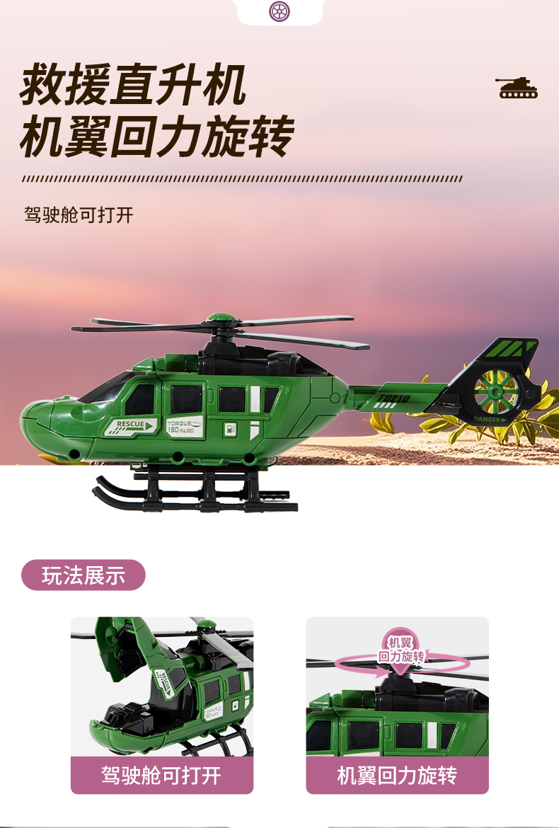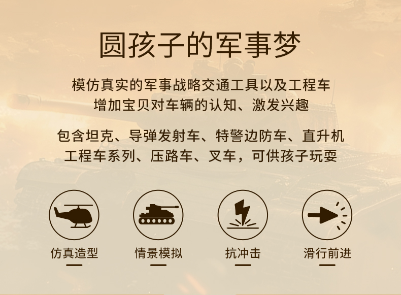 KIDSROYAL 军事系列玩具(坦克/导弹发射车/特警边防车/直升飞机/叉车压路车)